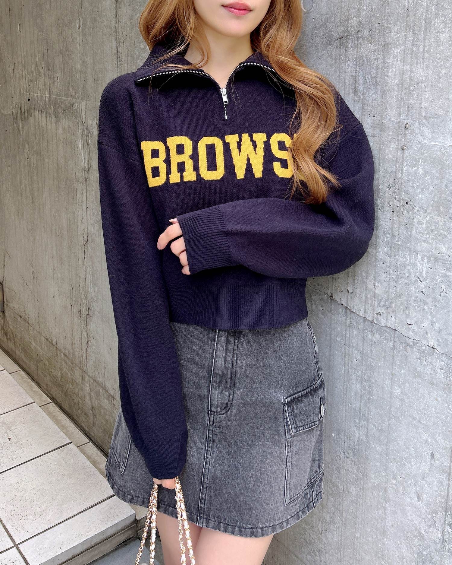 • INGNI(イング) ハーフジップショート丈ロゴニット コン/マスタード