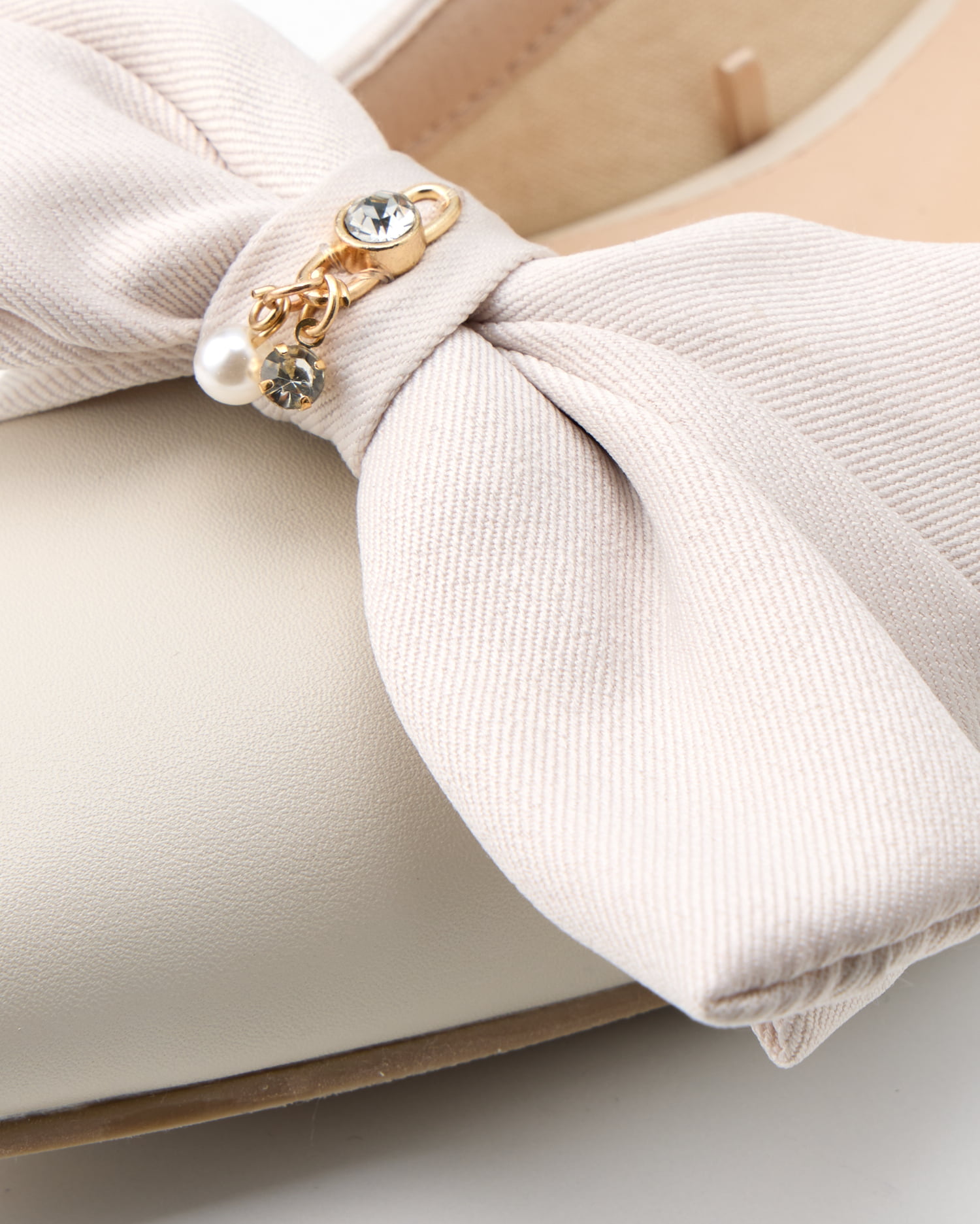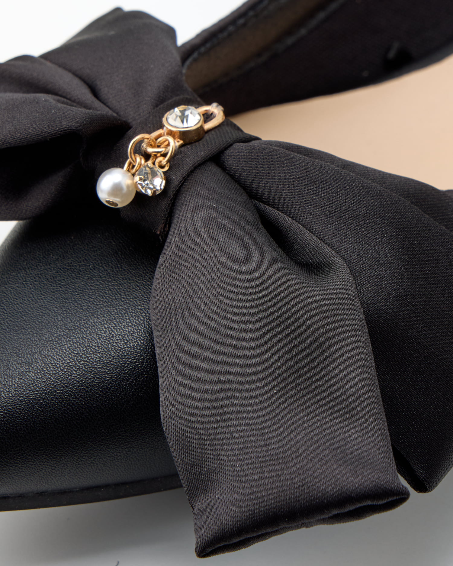 リボンの中心部で揺れるラインストーン&パールビジューが
