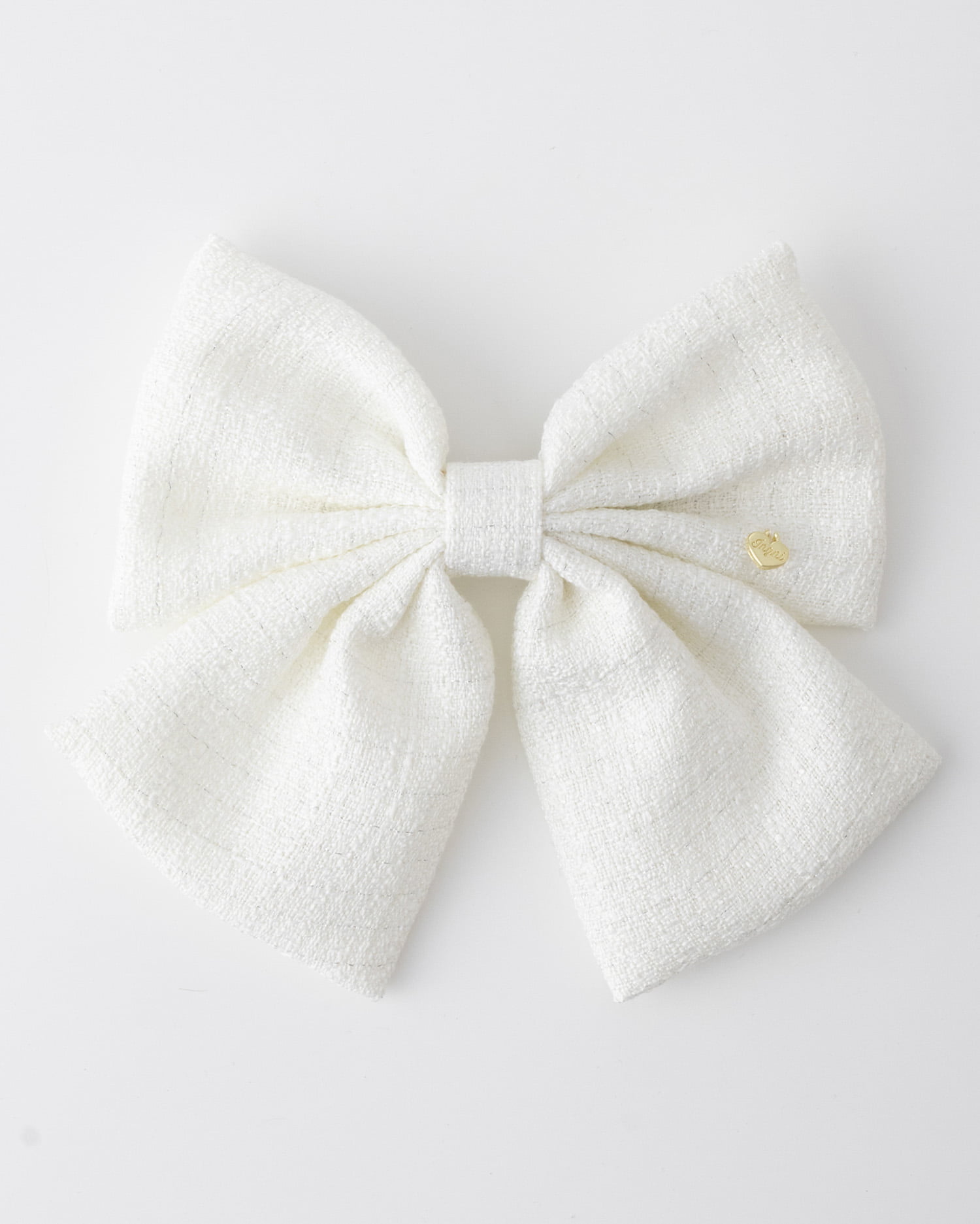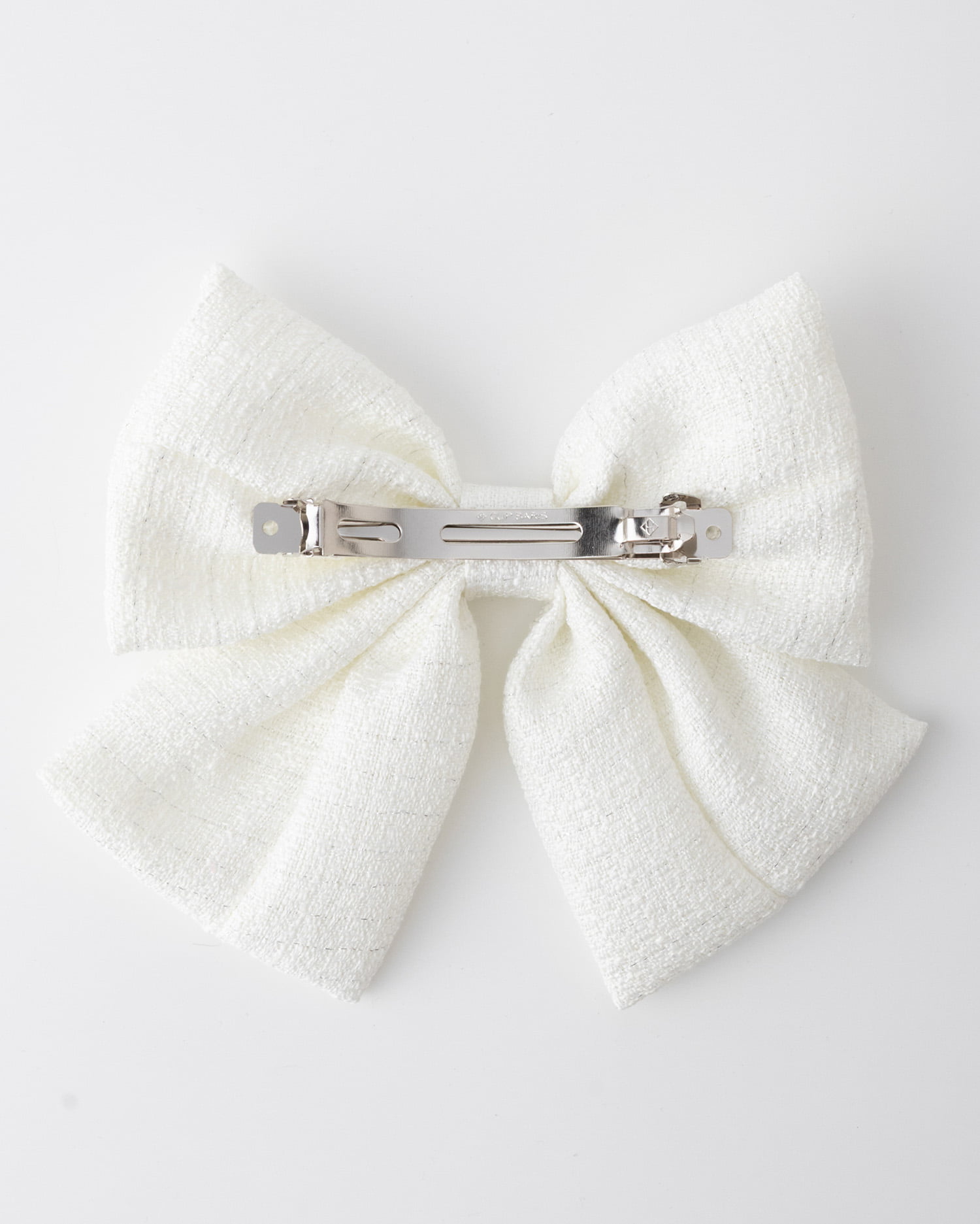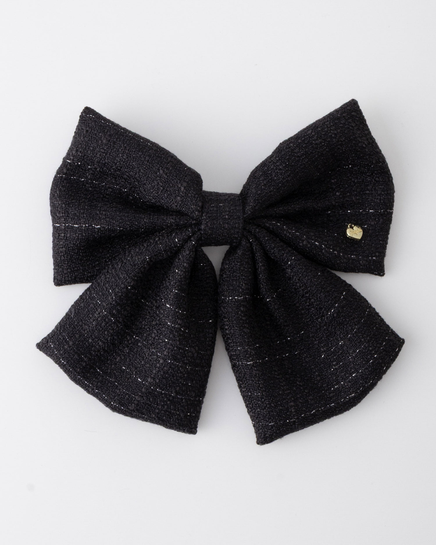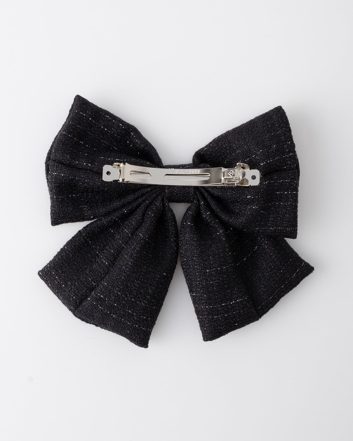 キラキラのラメを織り込んだツイード素材のリボンバレッタ。