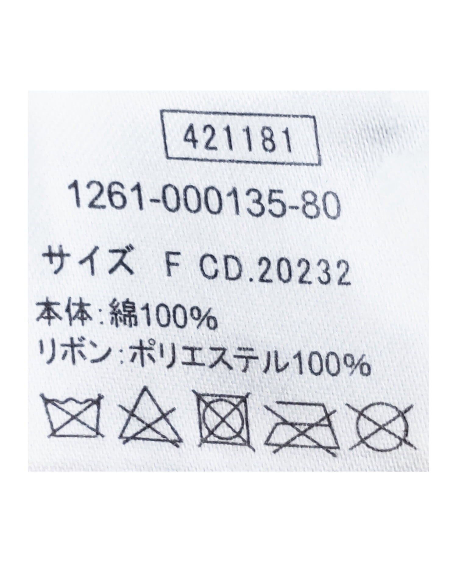 原産国 中国 本体 綿100% リボン ポリエステル100%