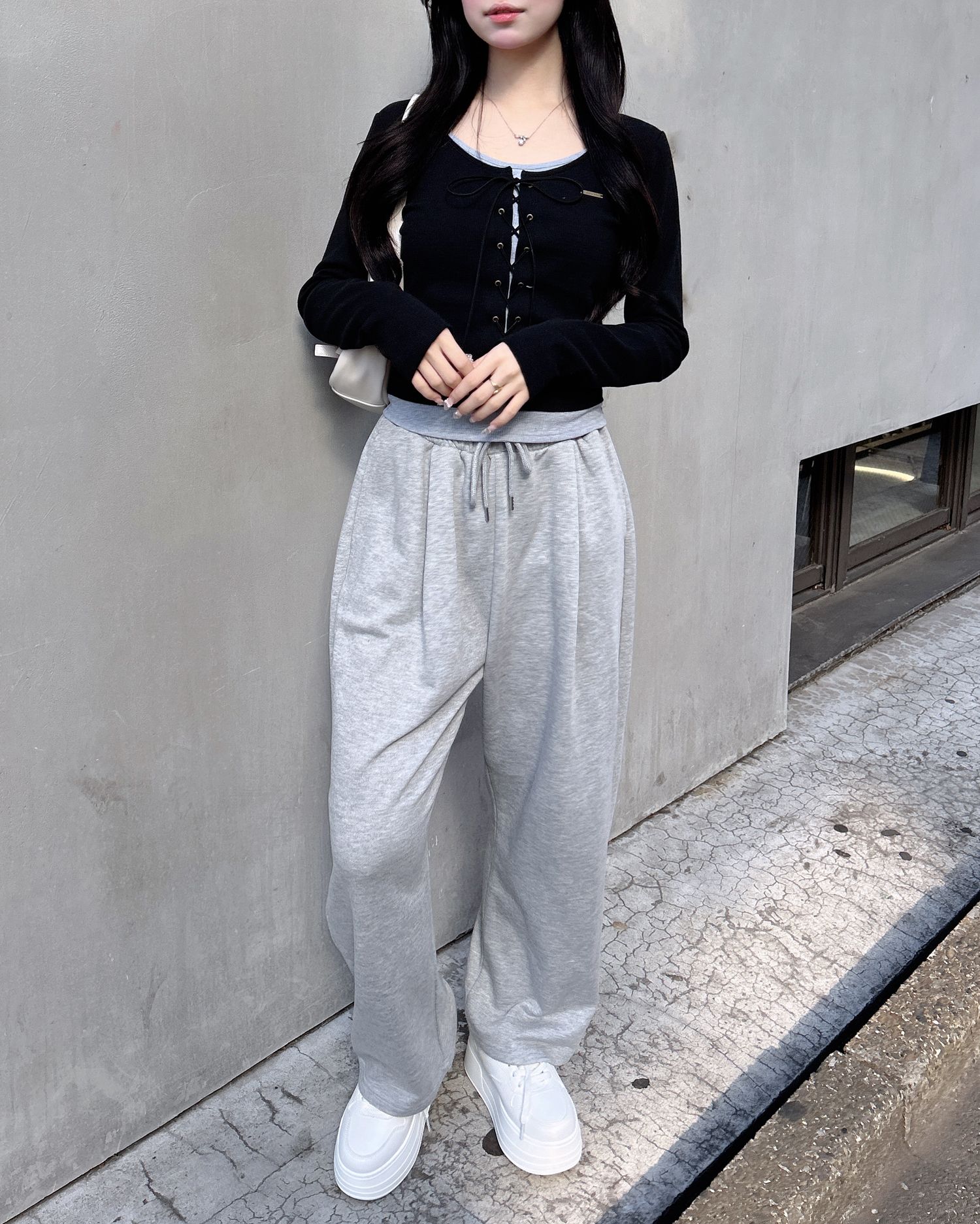 スウェットパンツやフレアデニムを合わせると