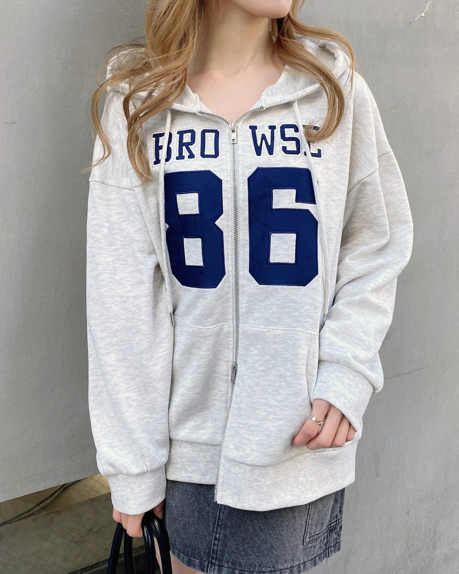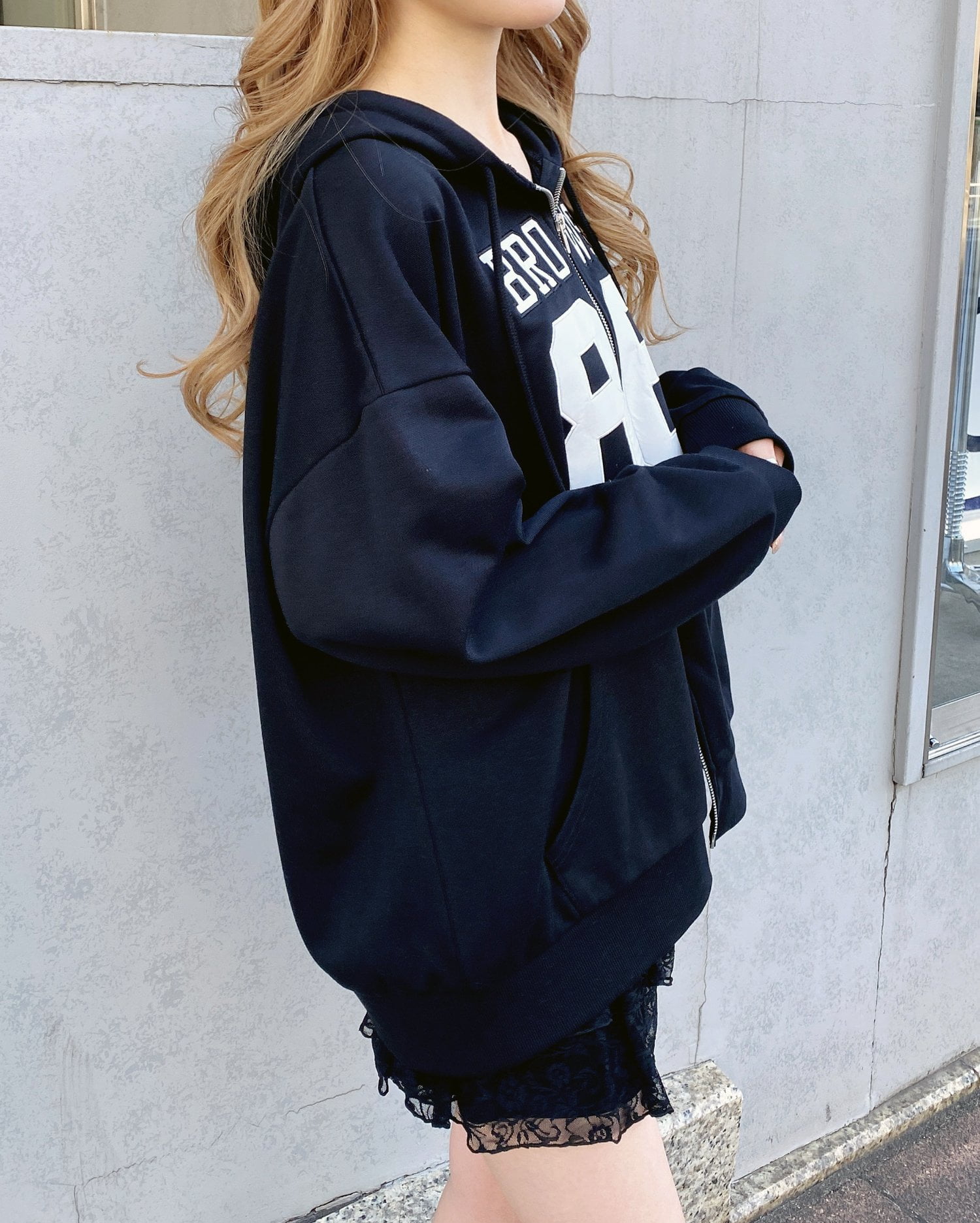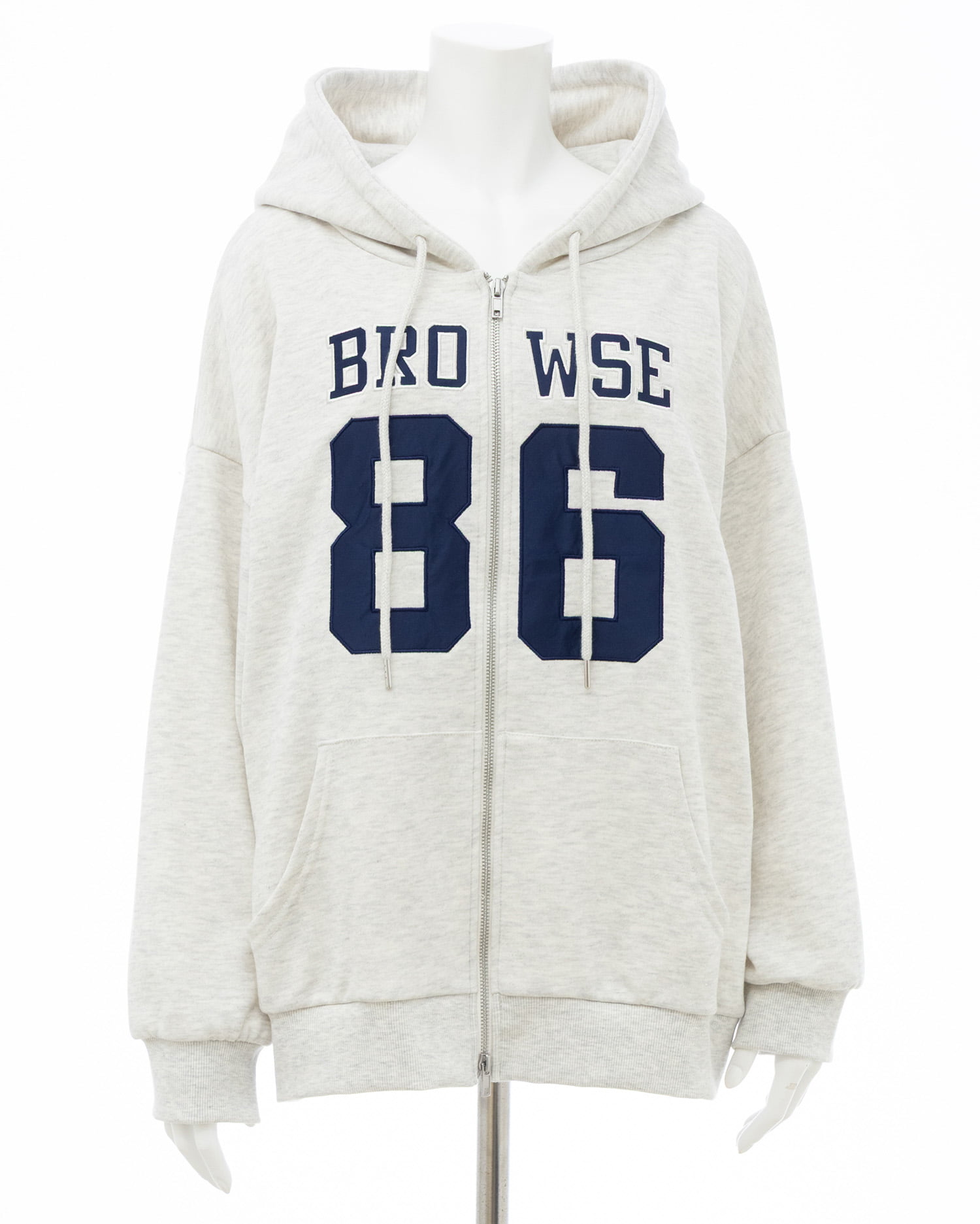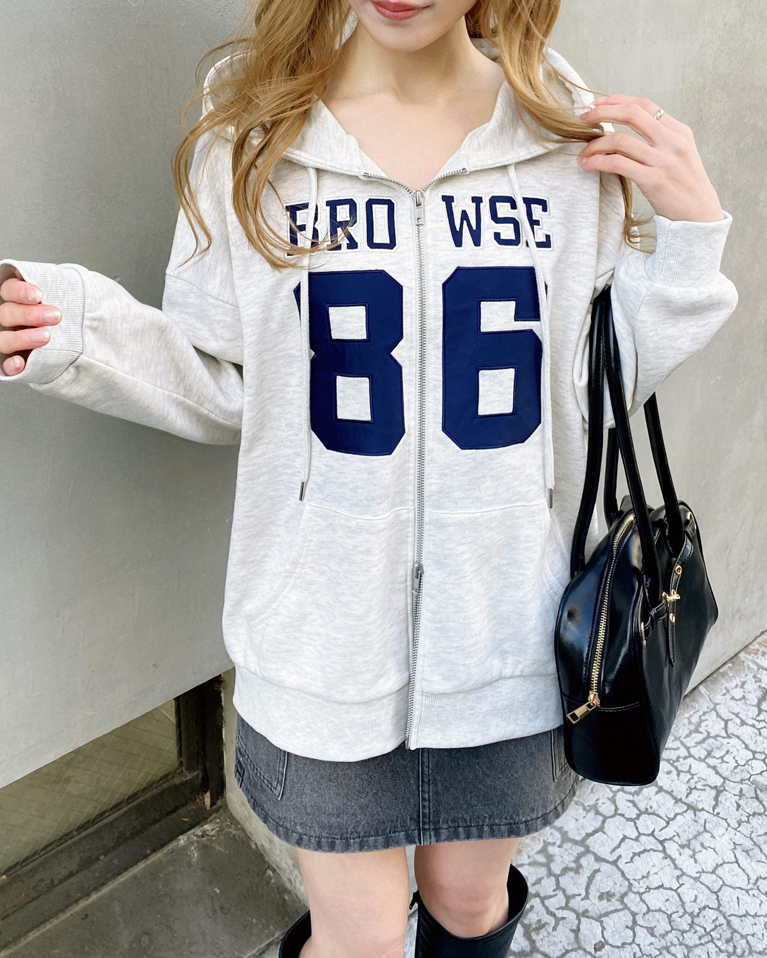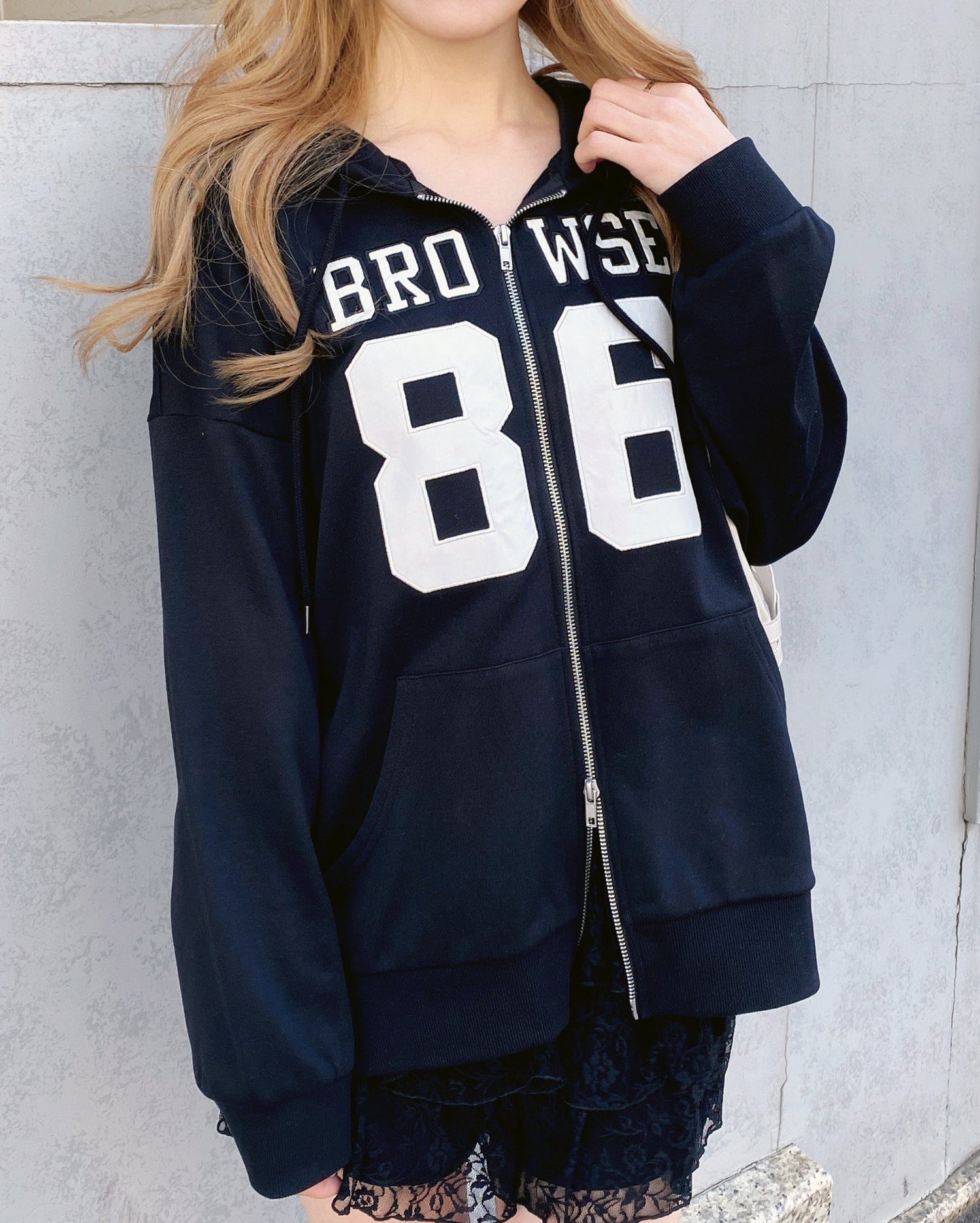 かっちりとしたフォントのナンバリングロゴがスポーティなパーカー。