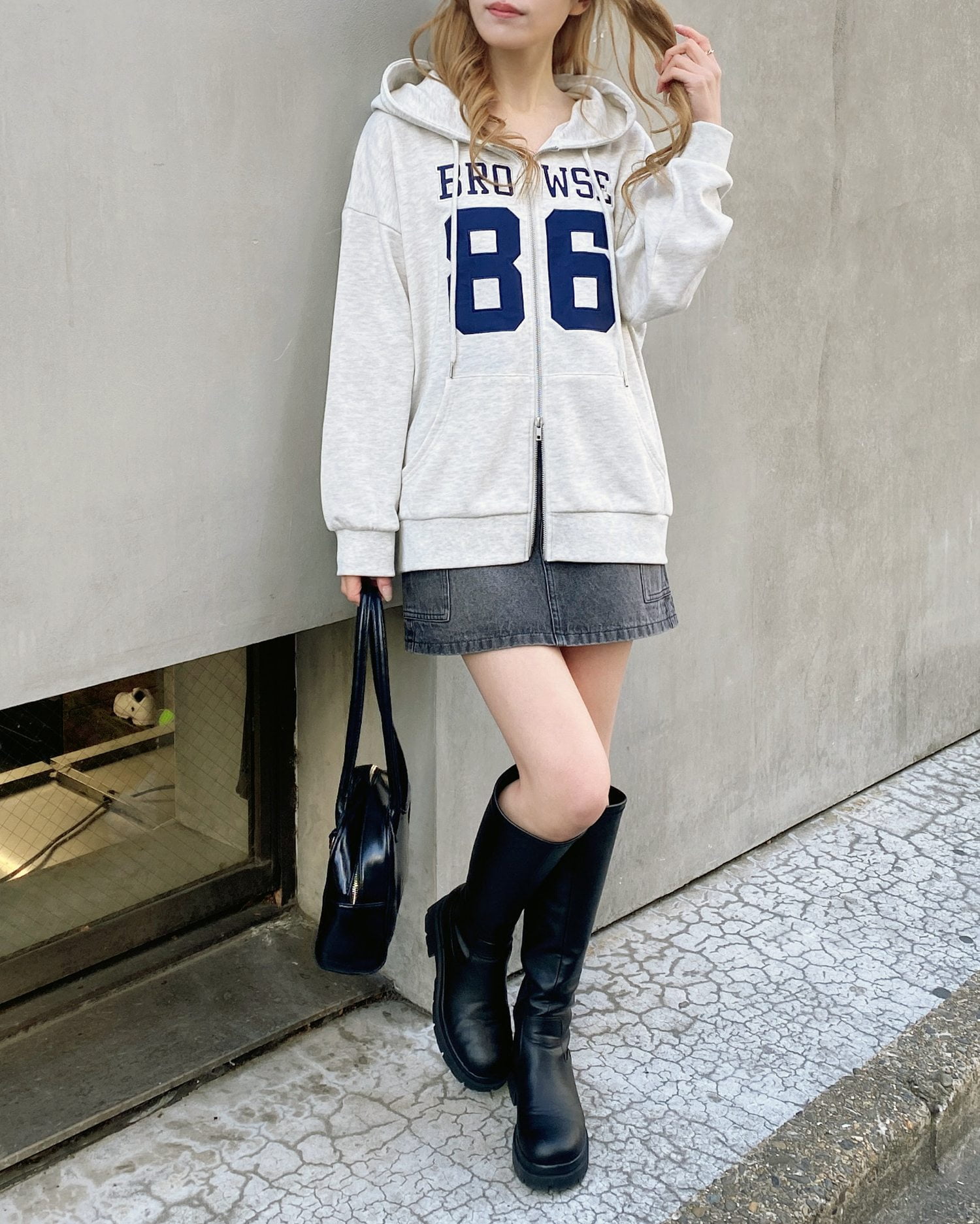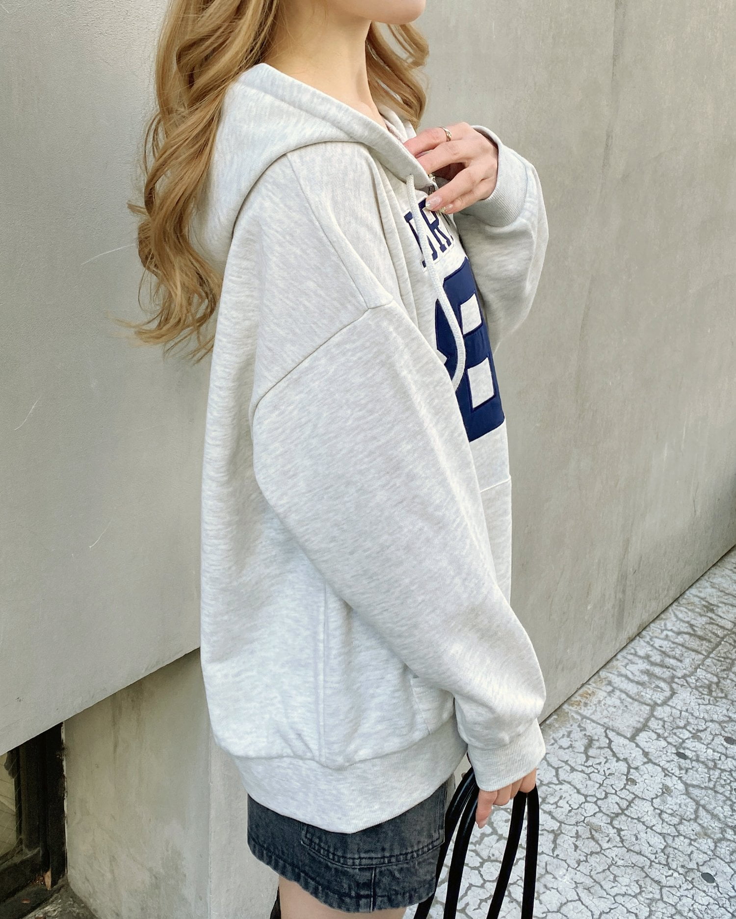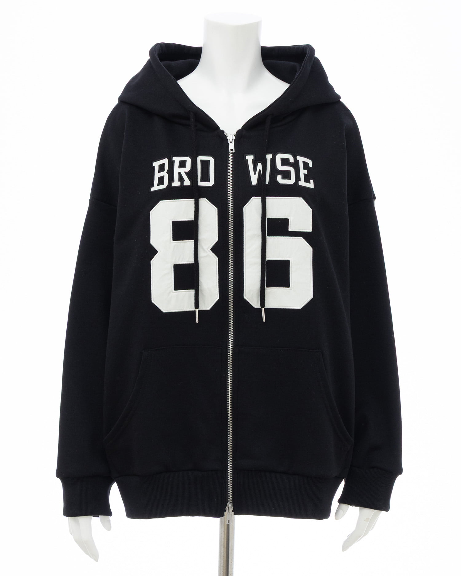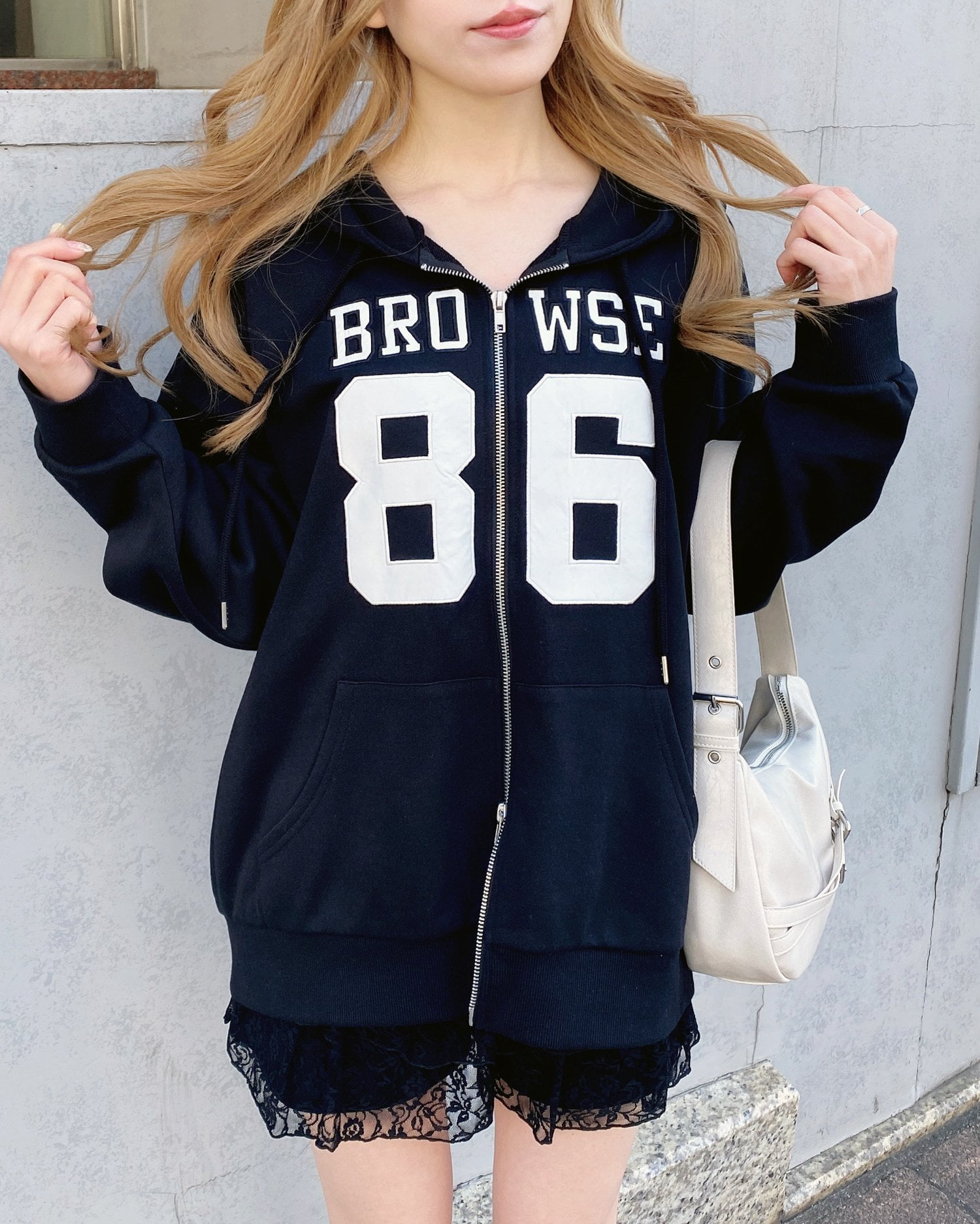 かっちりとしたフォントのナンバリングロゴがスポーティなパーカー。