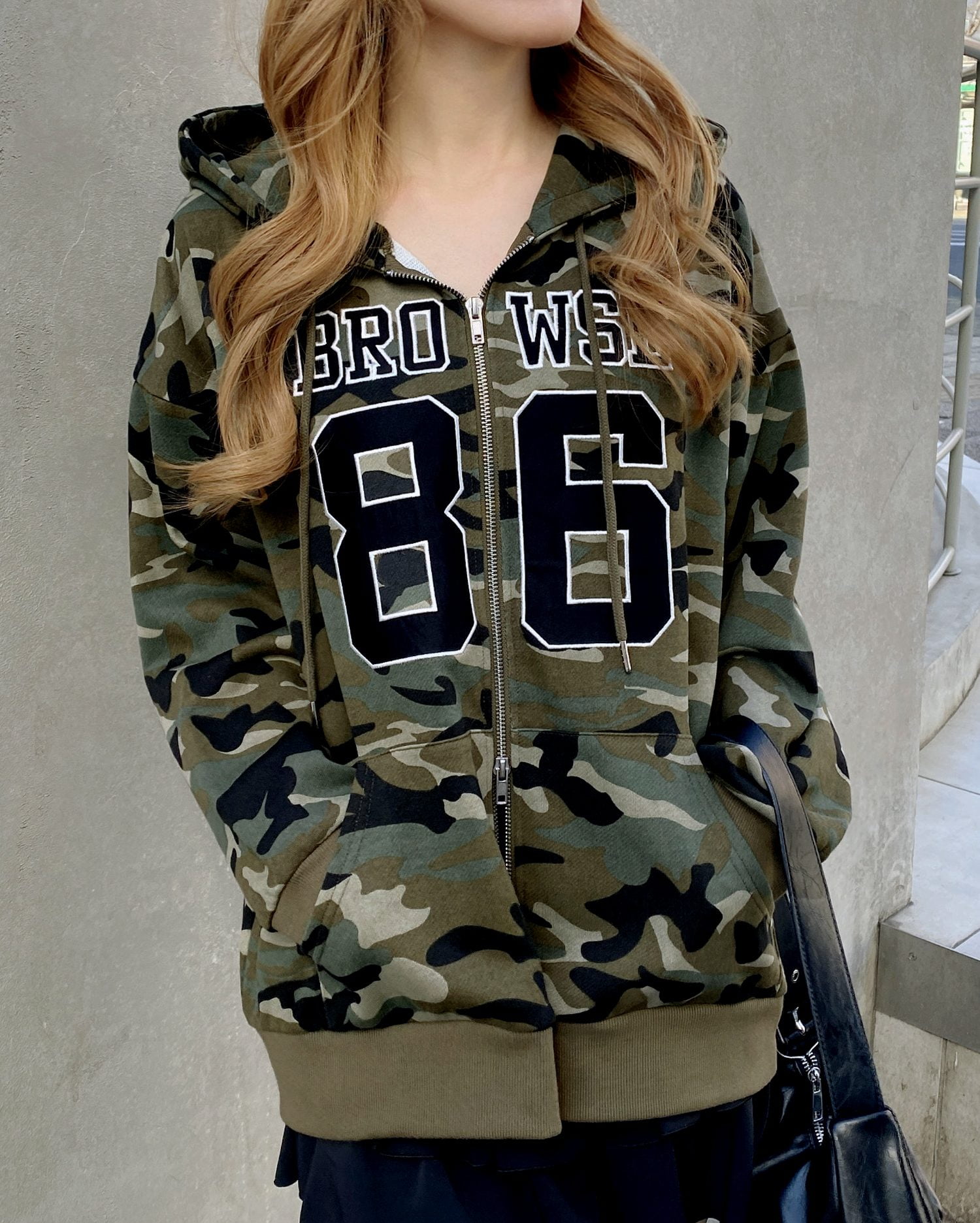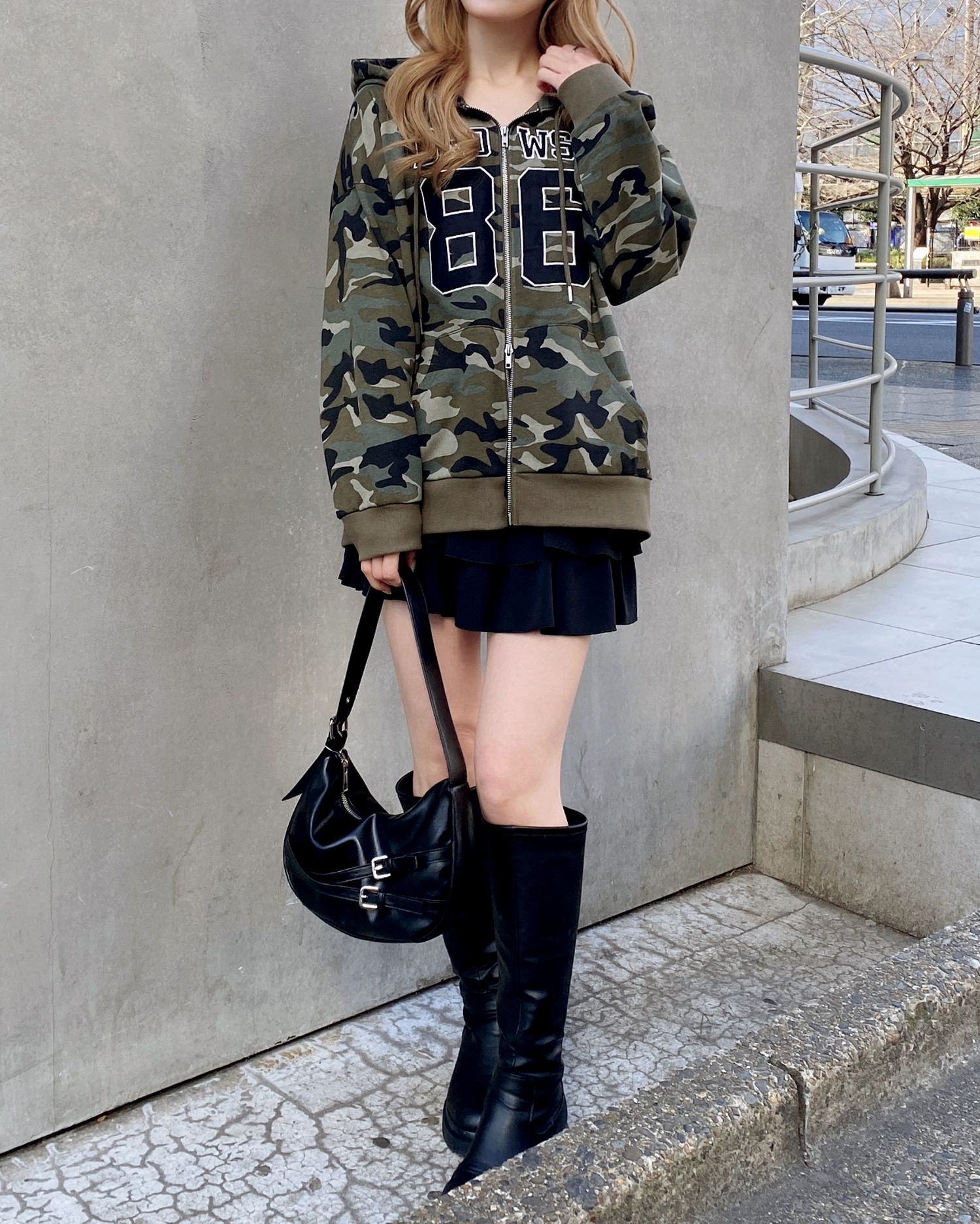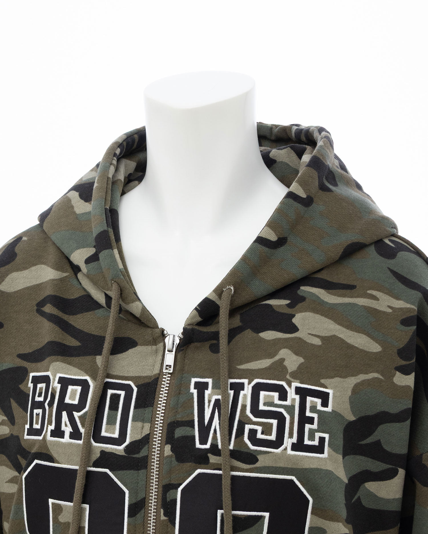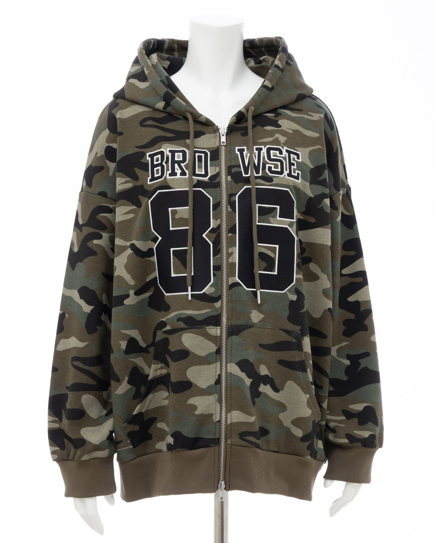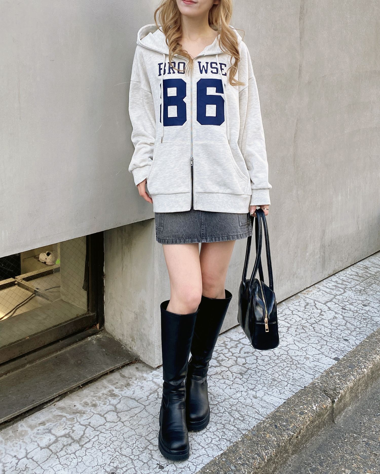 かっちりとしたフォントのナンバリングロゴがスポーティなパーカー。