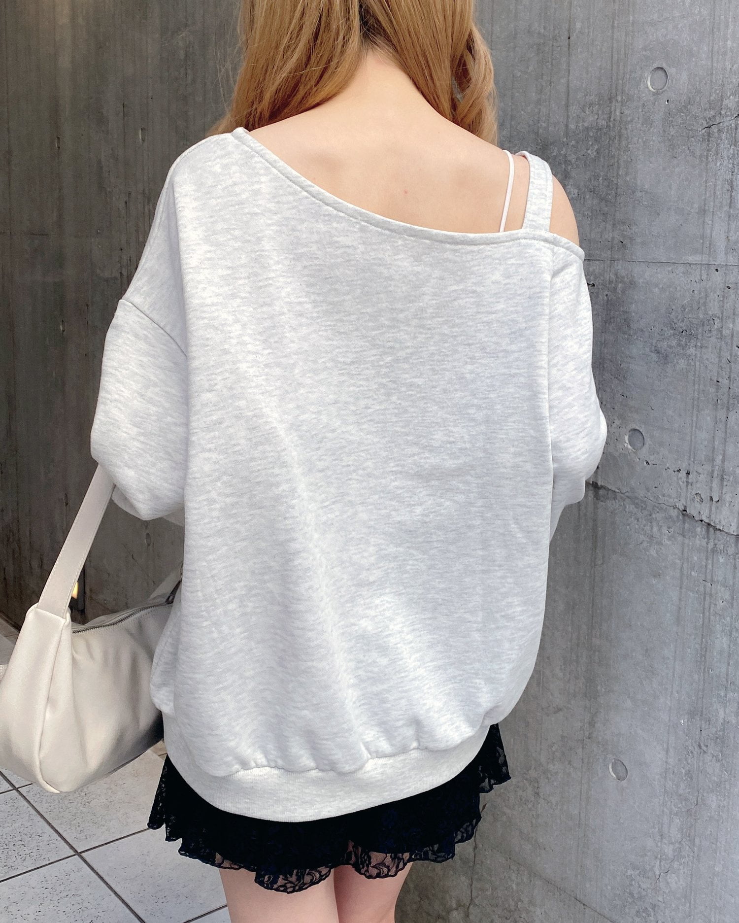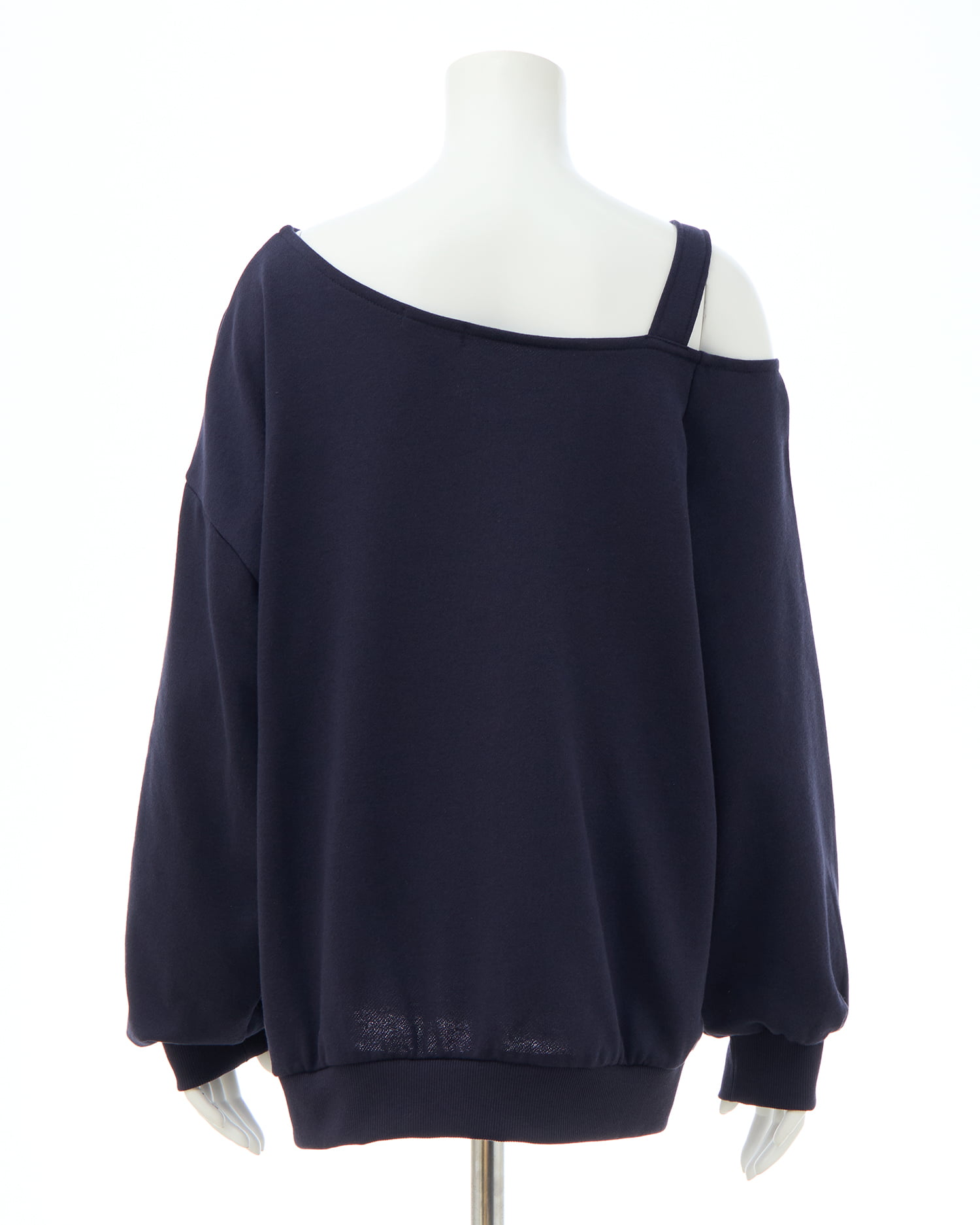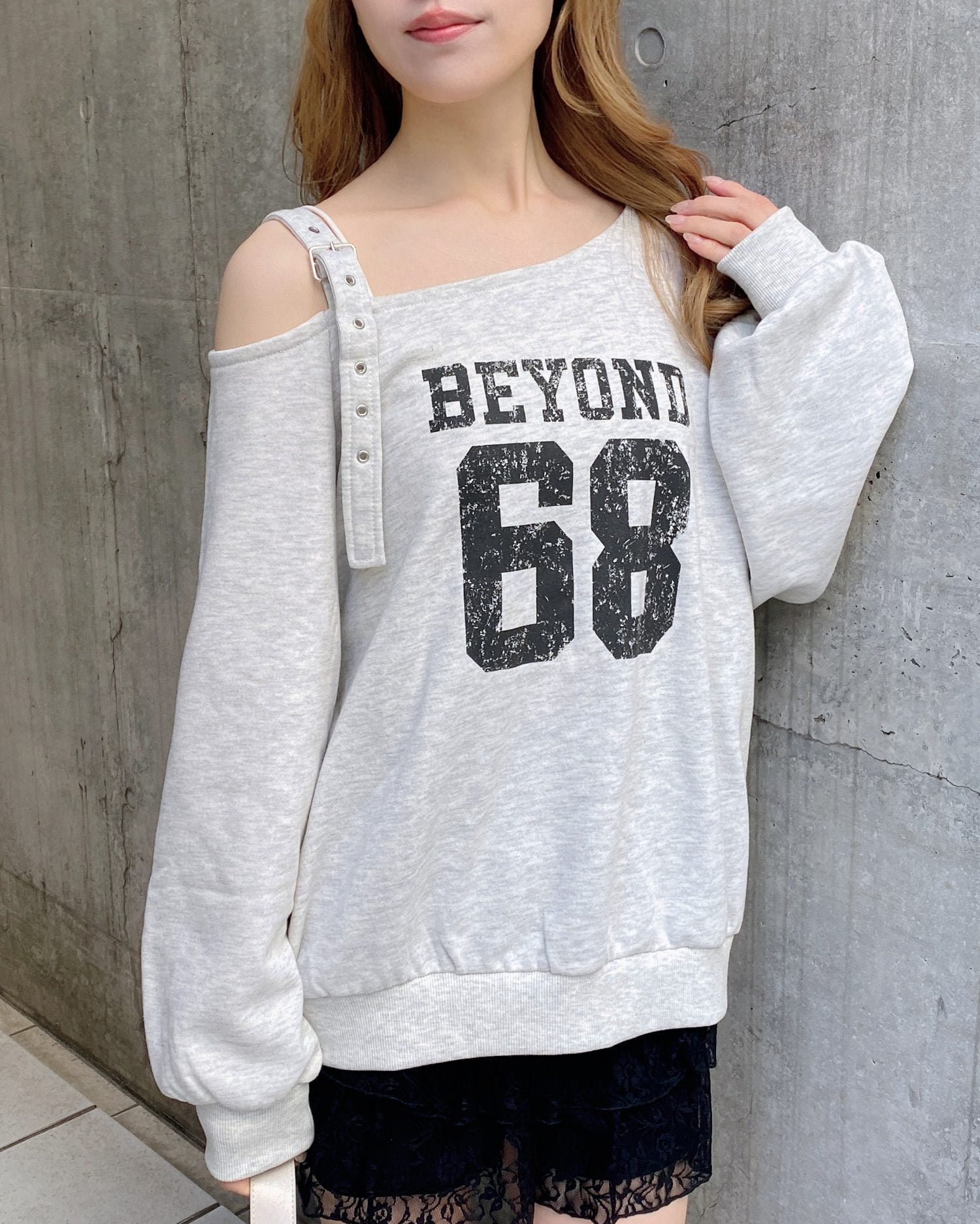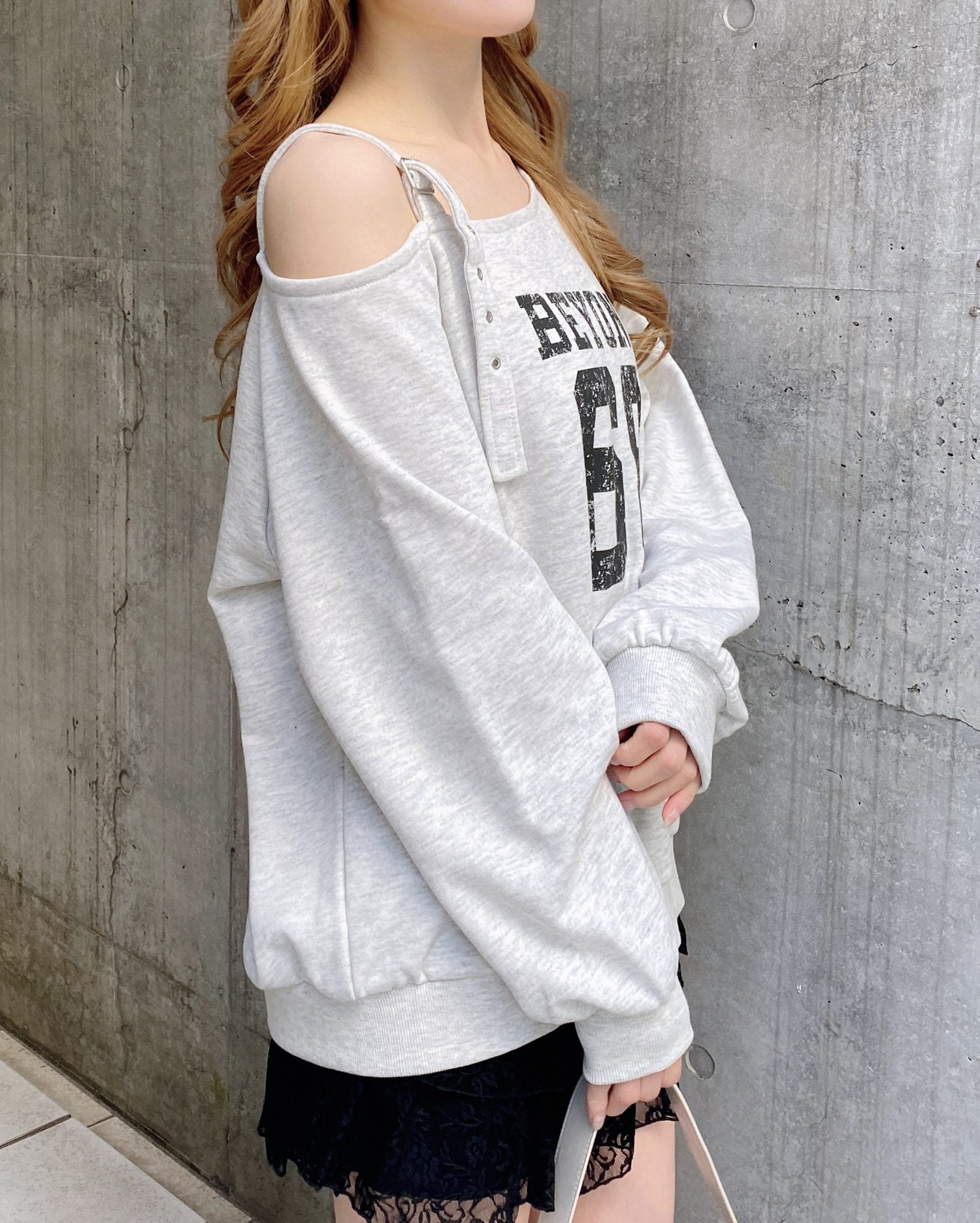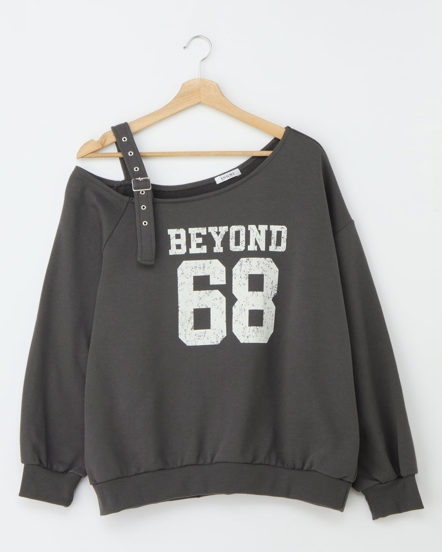 ショルダー部分にスタイリッシュなハトメベルトをあしらったスウェットトップスです。