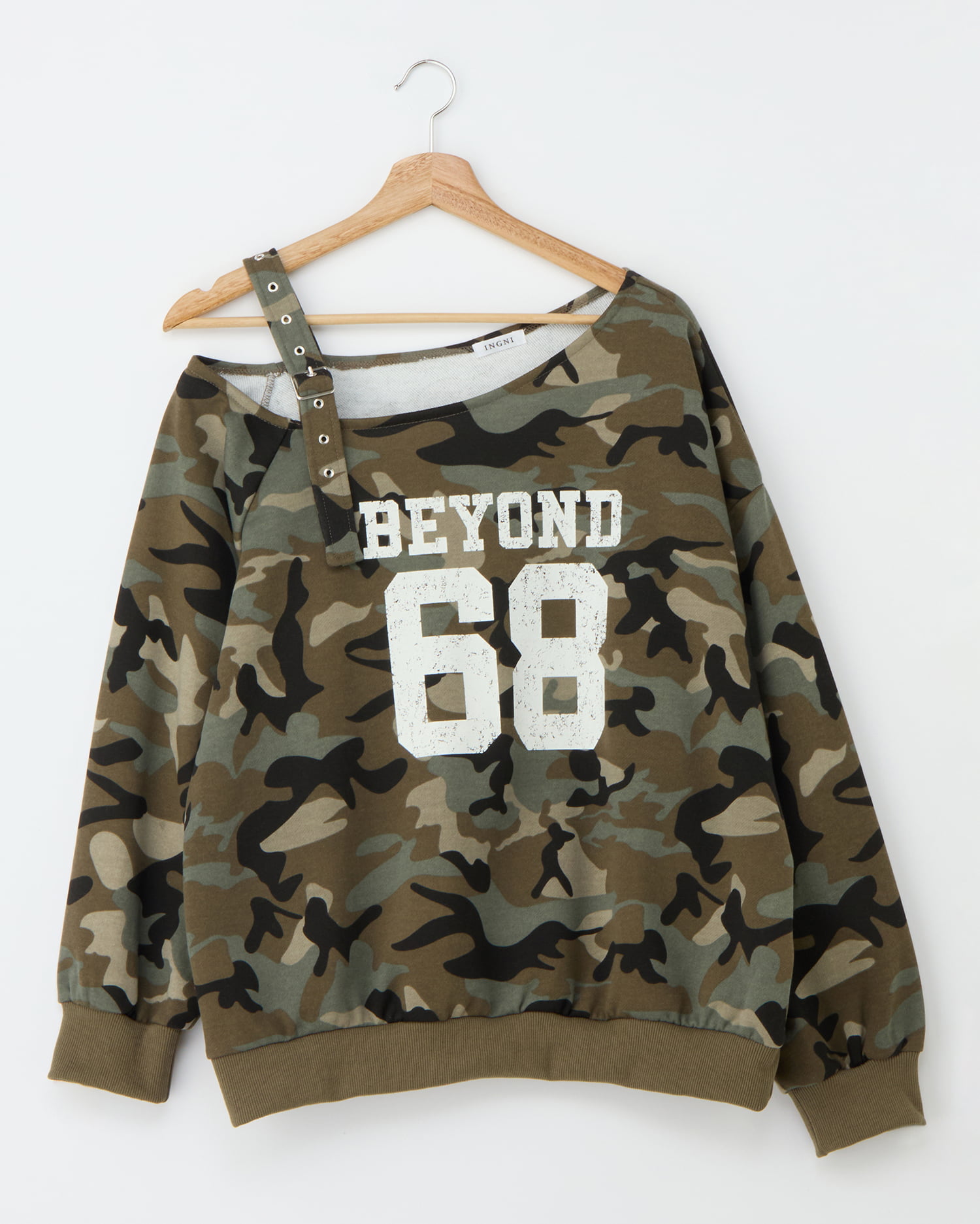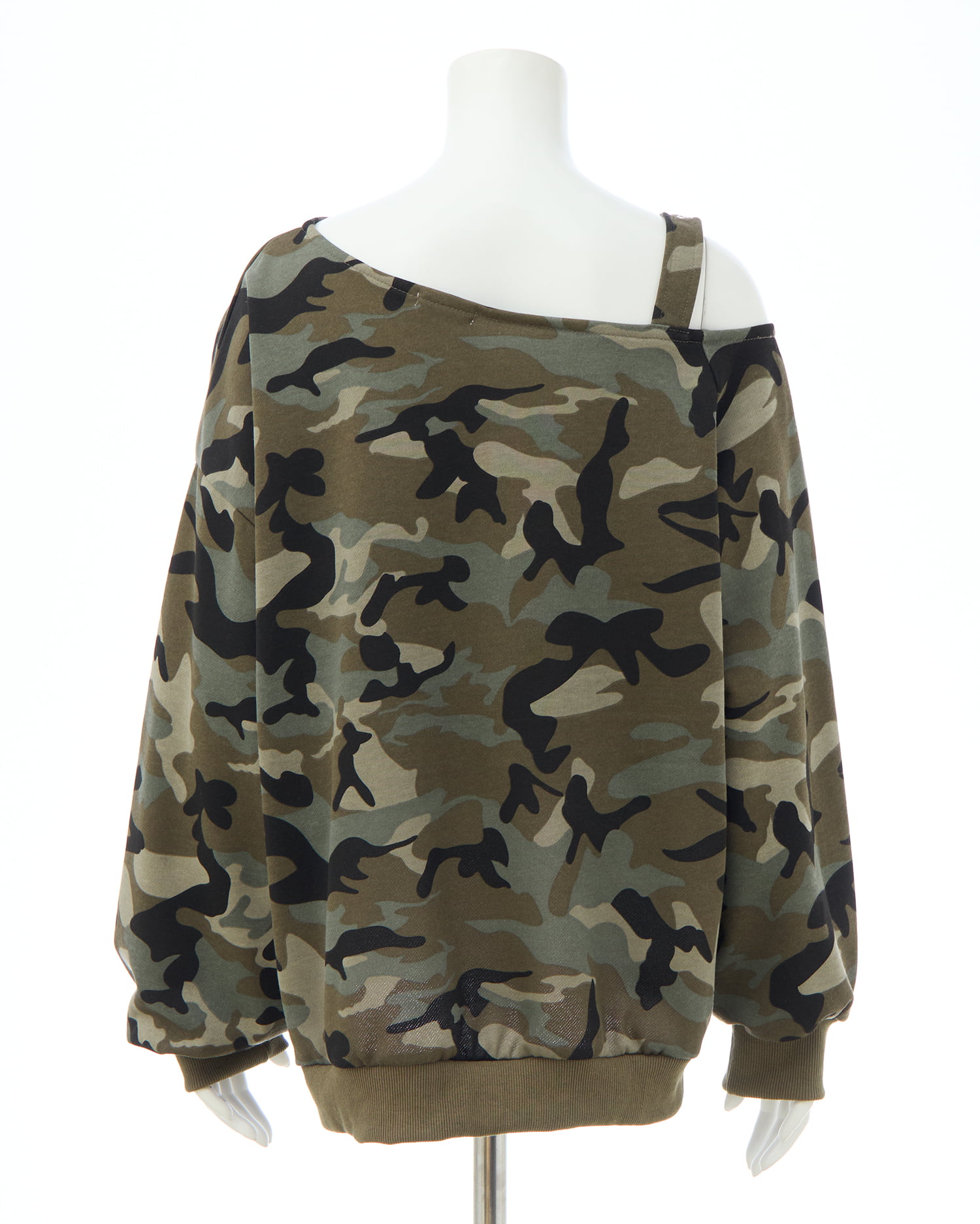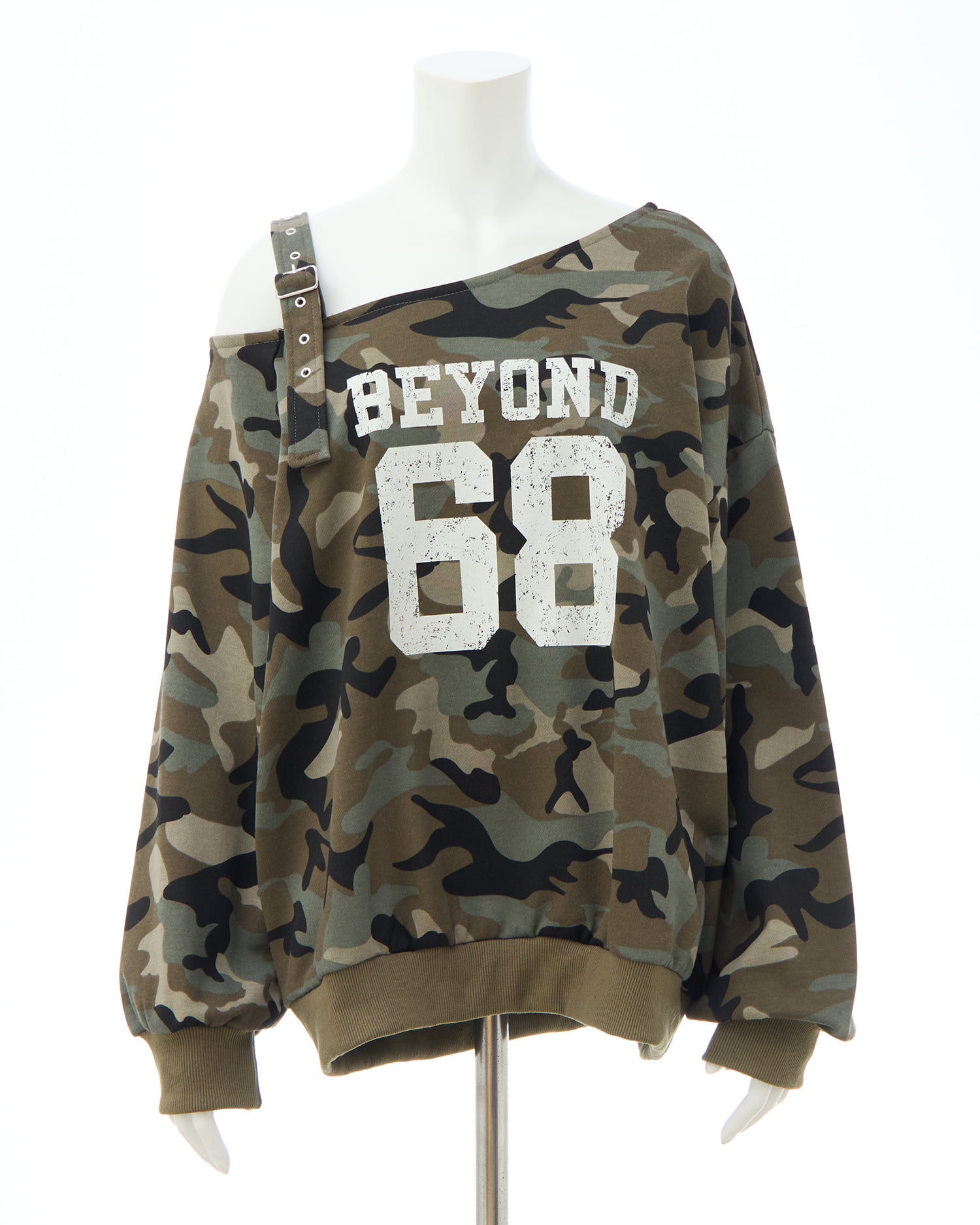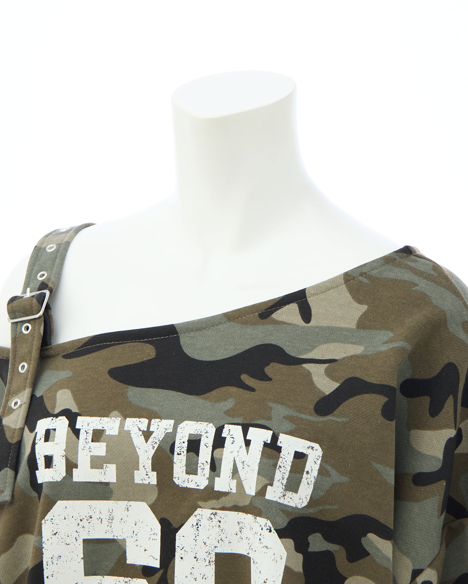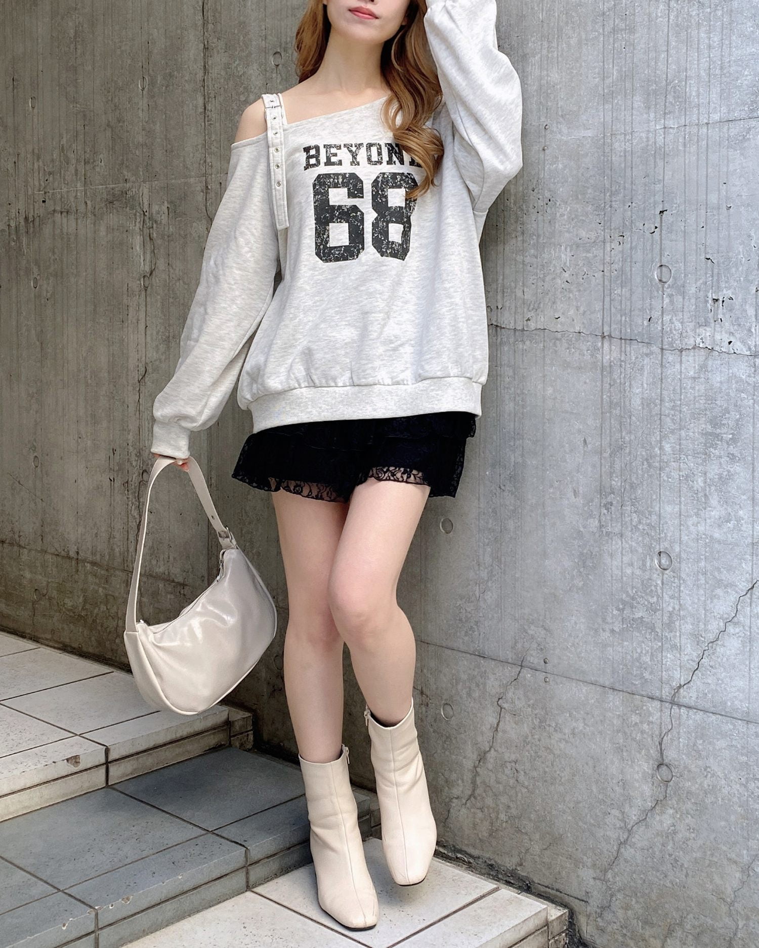 ショルダー部分にスタイリッシュなハトメベルトをあしらったスウェットトップスです。