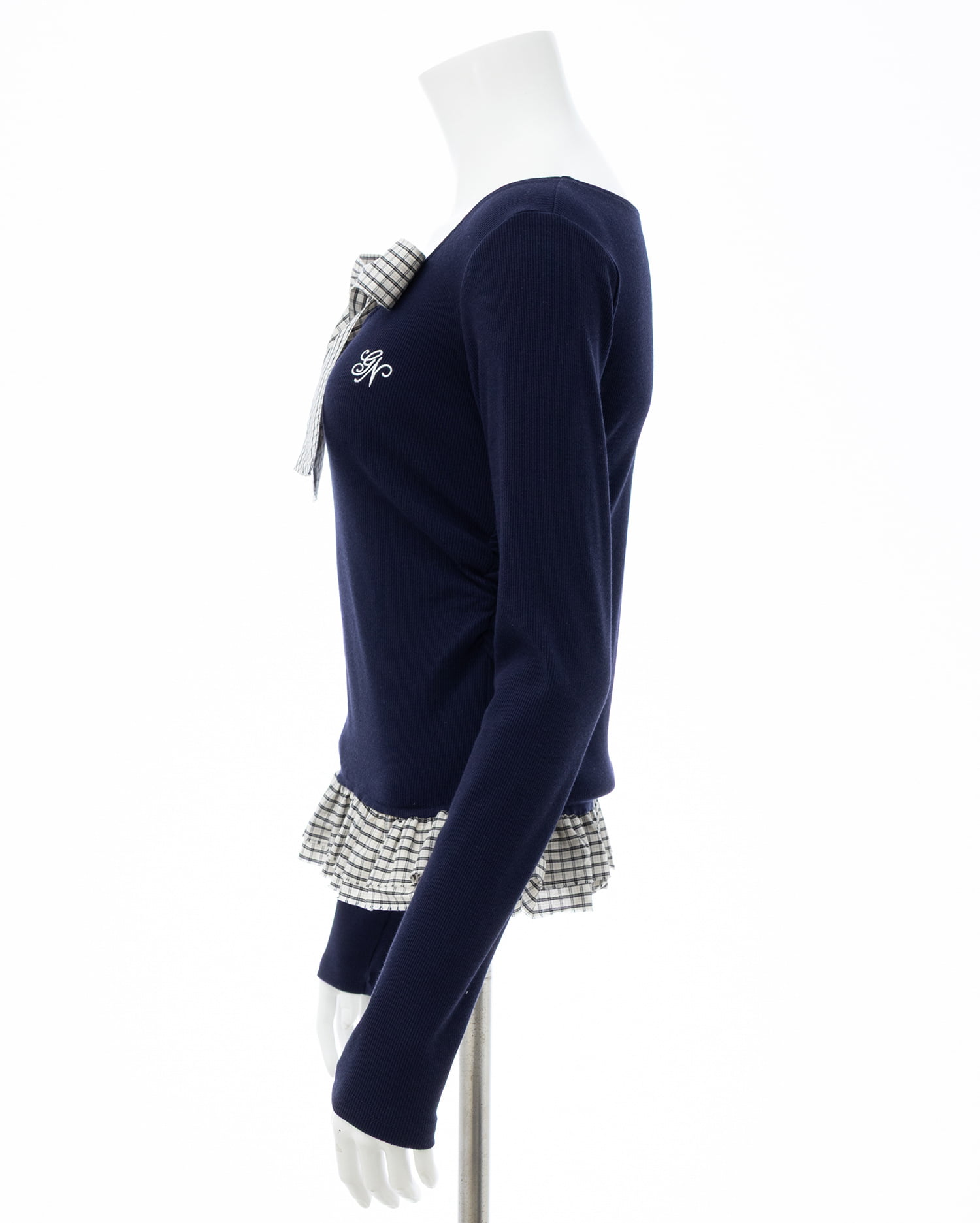 リボンが存在感たっぷり♡レイヤードデザイントップス。