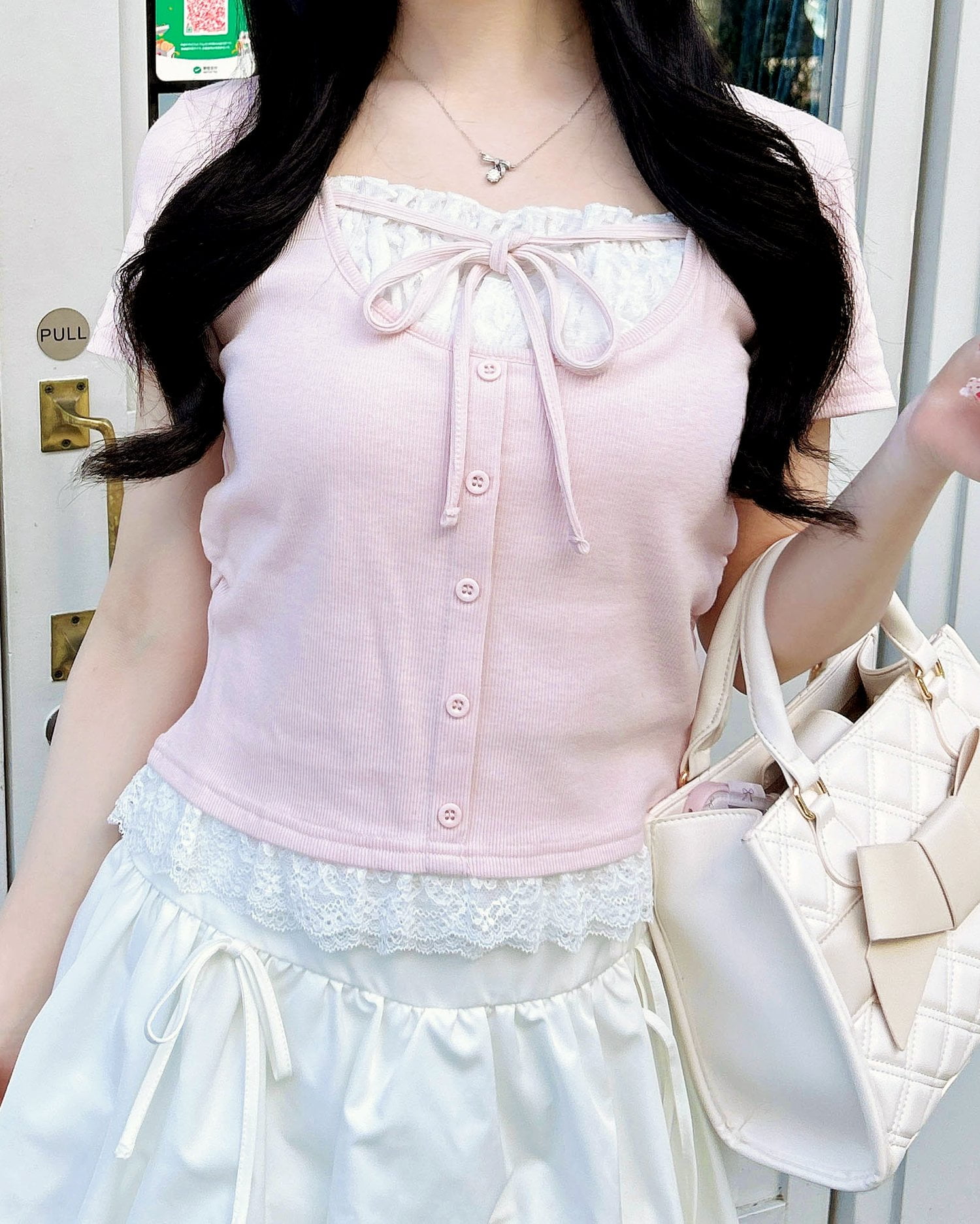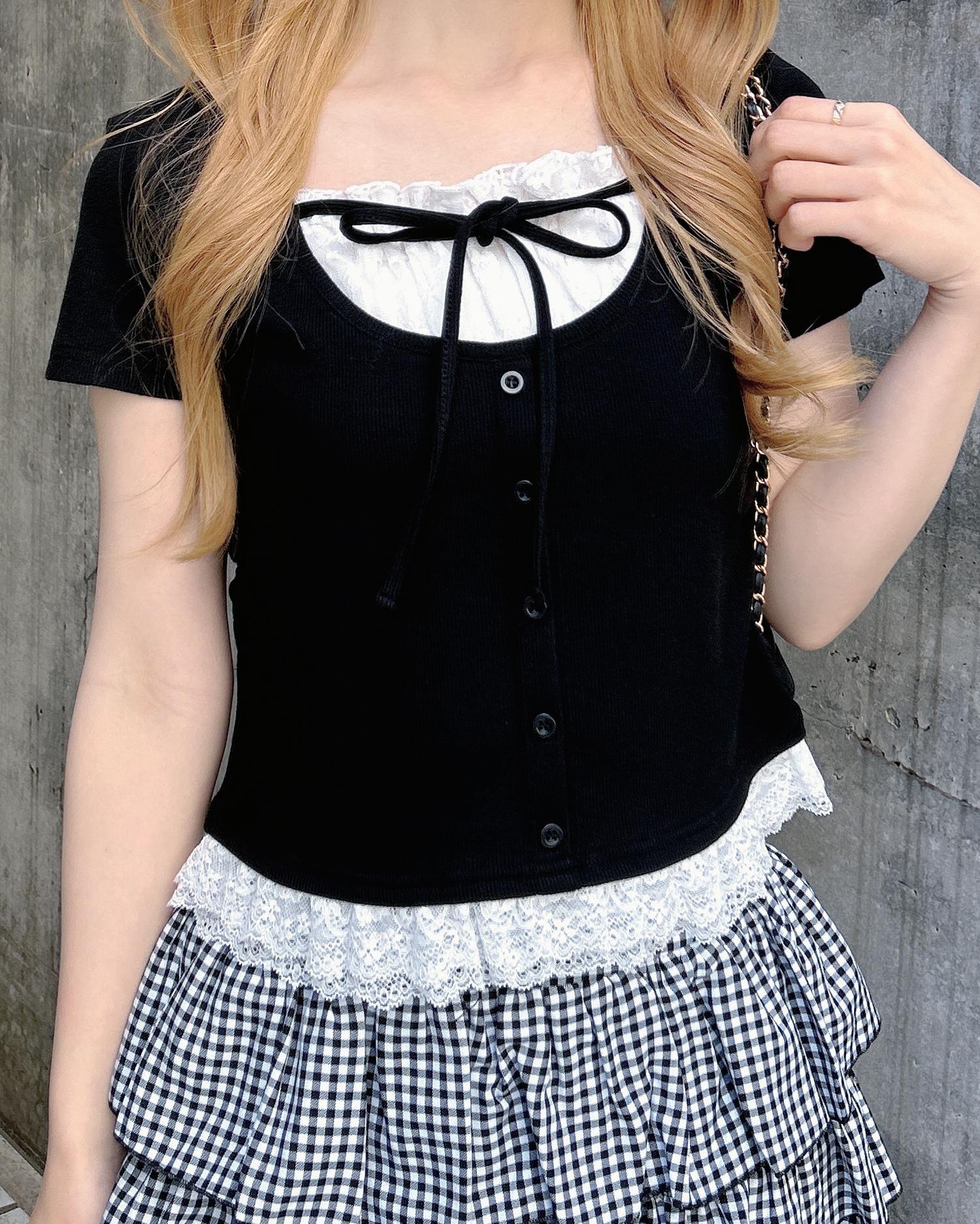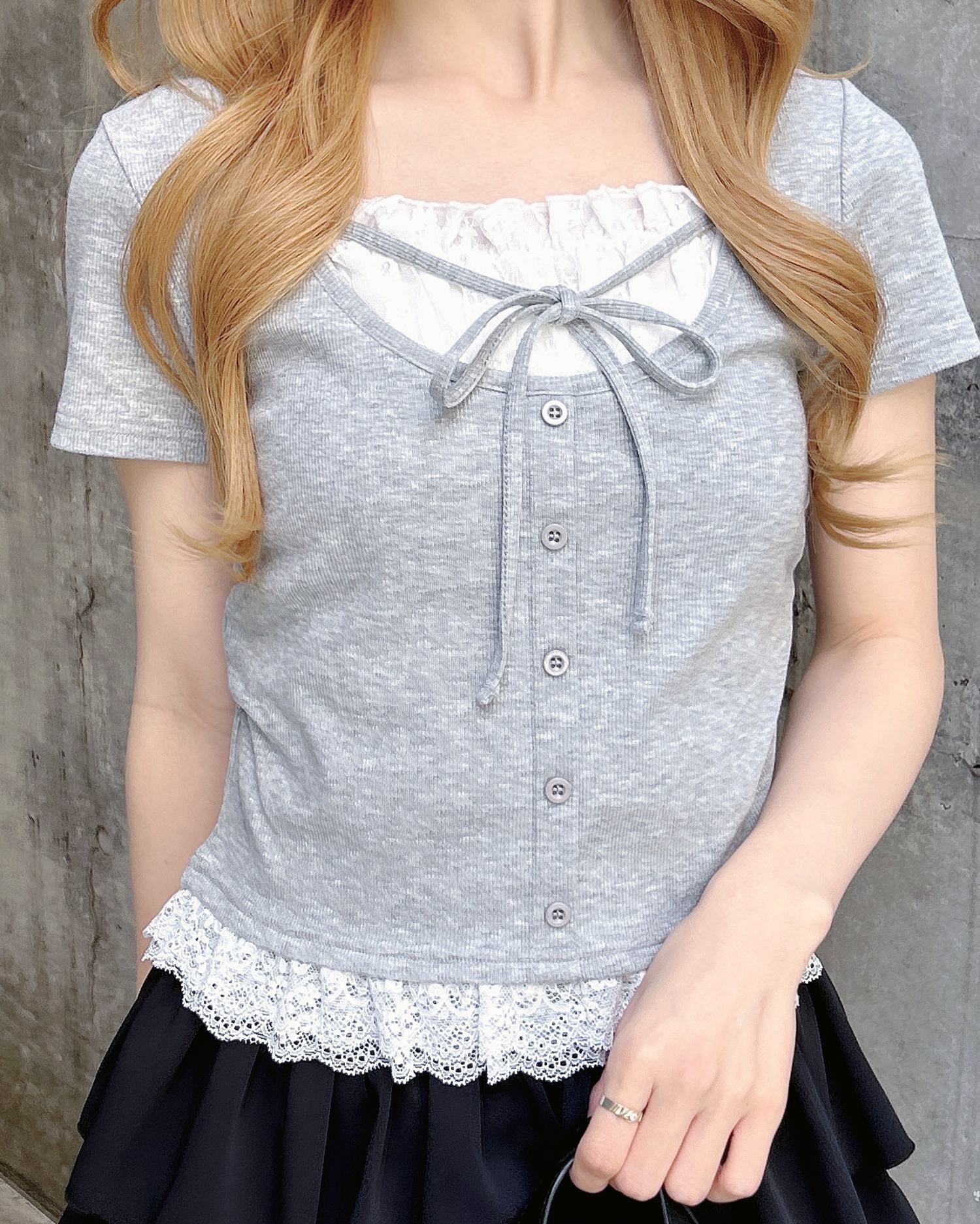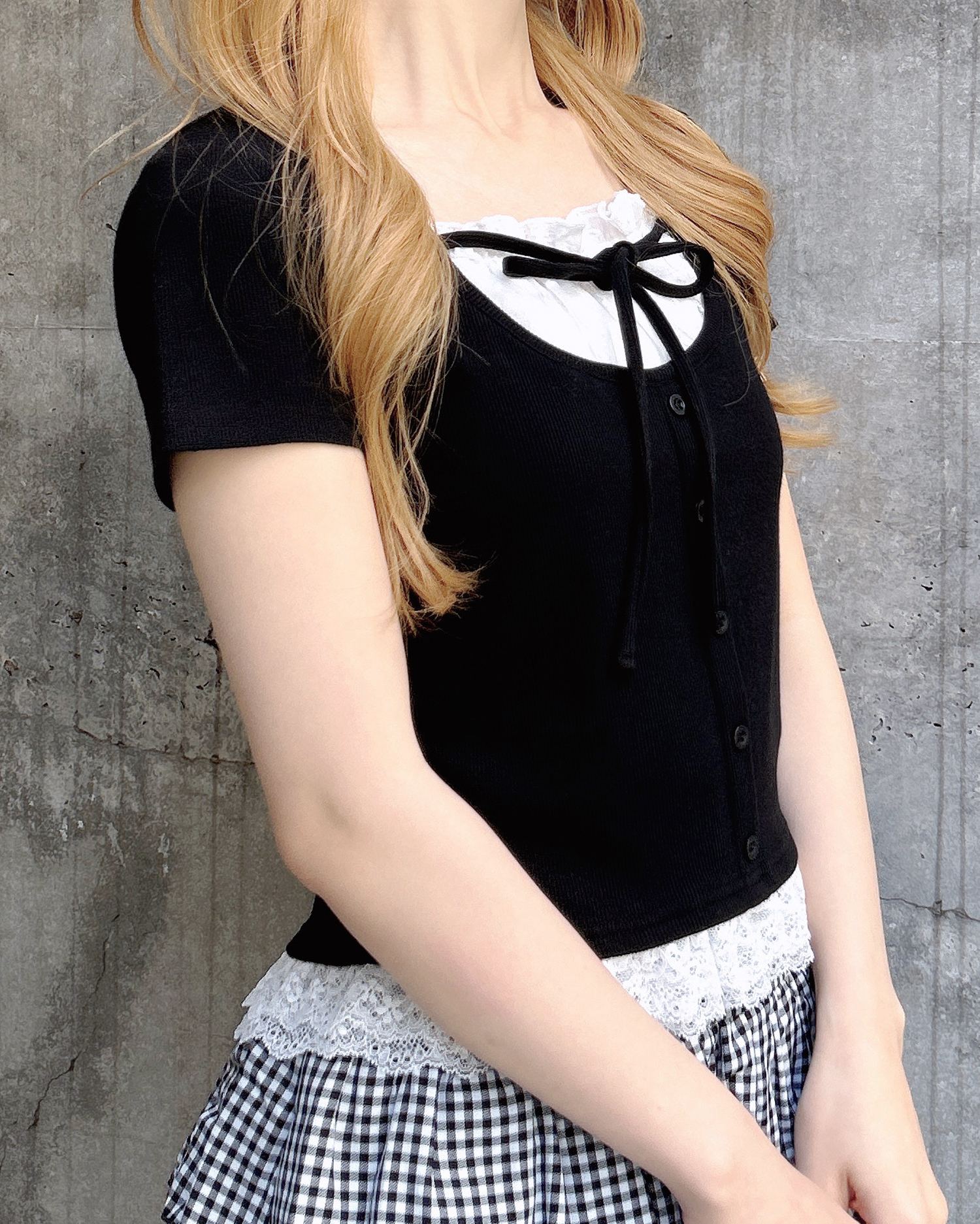 【大人気の定番レイヤード風トップスが半袖になって登場!】