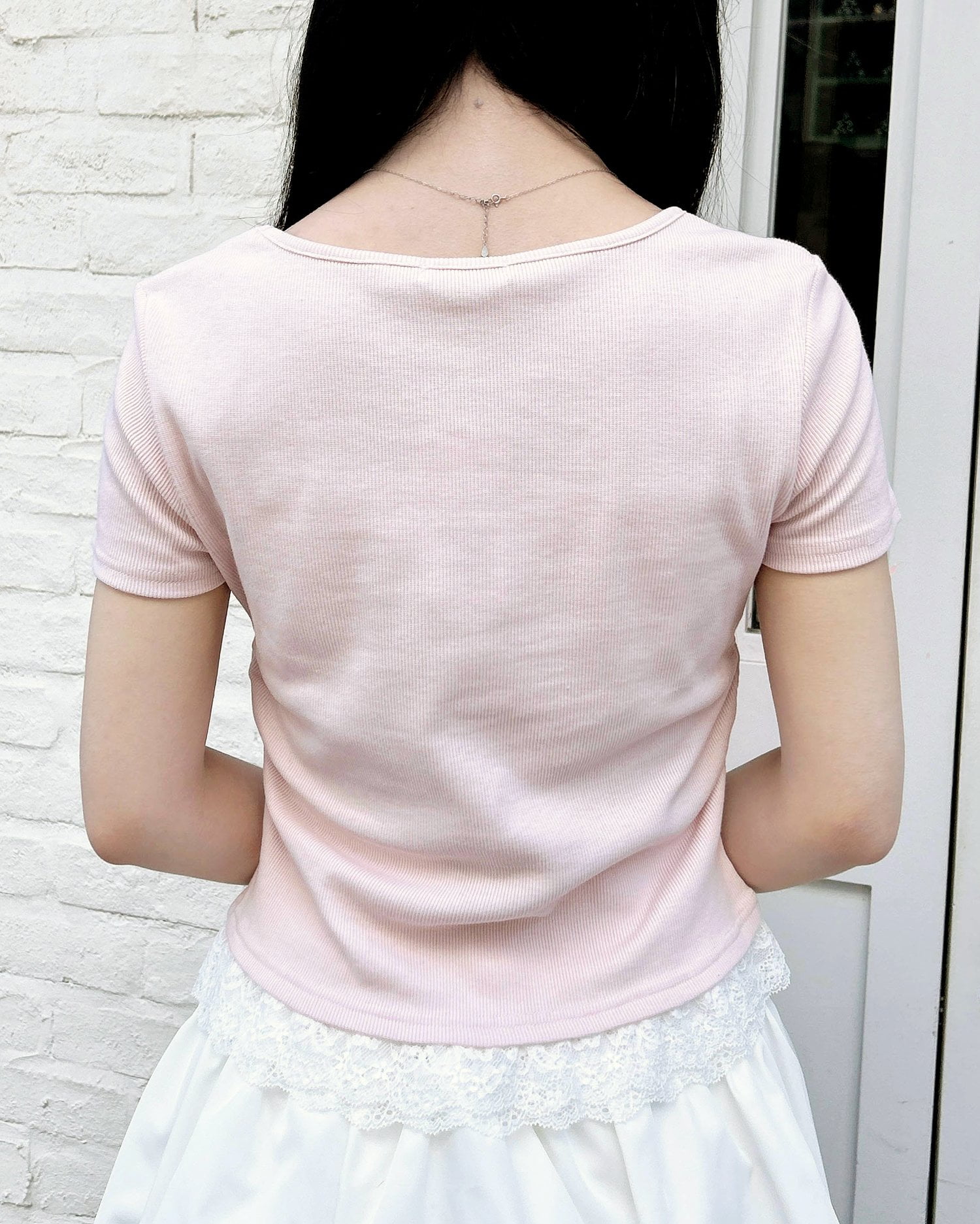胸元のレース上にはゴムを入れているのでフィット感があります。