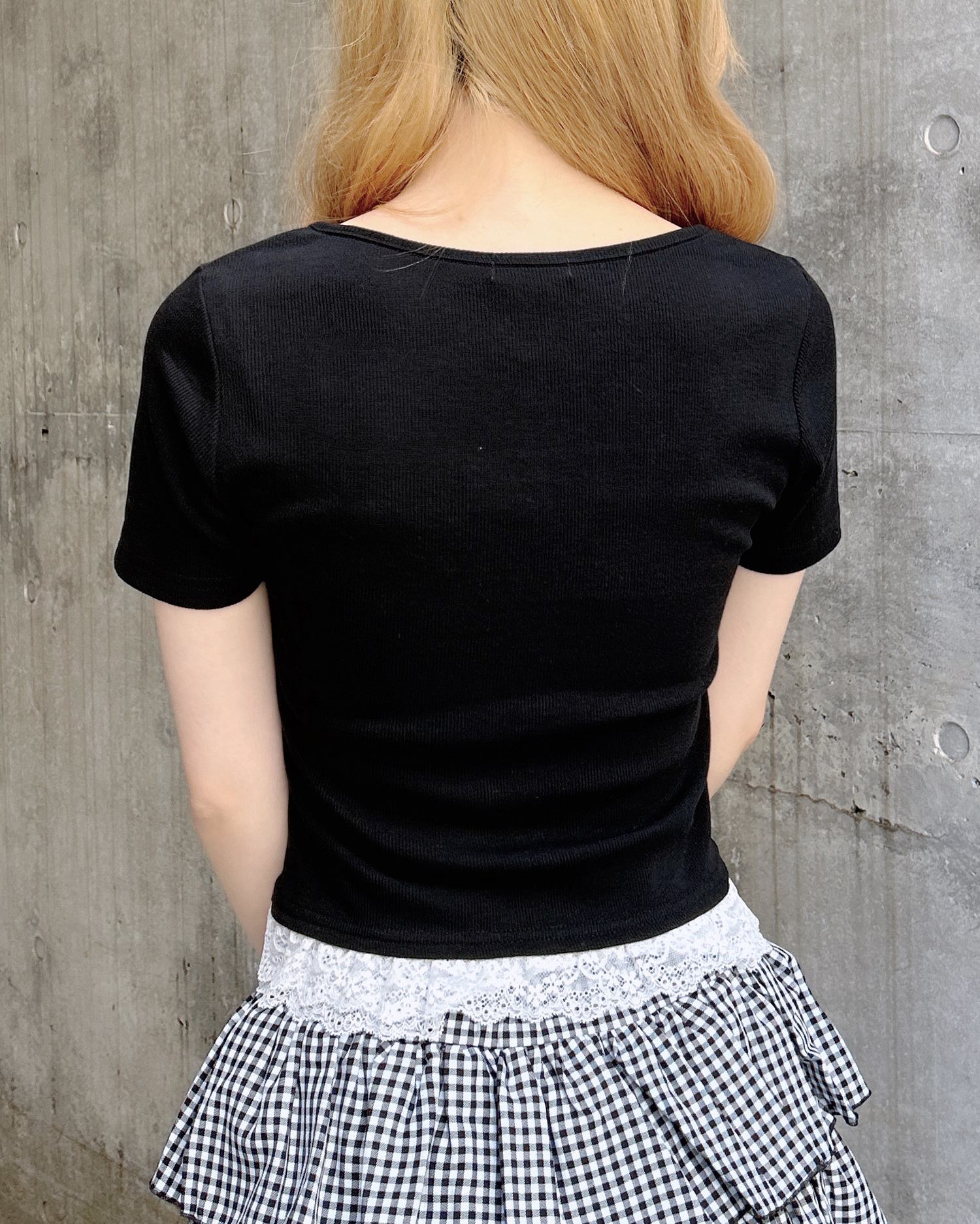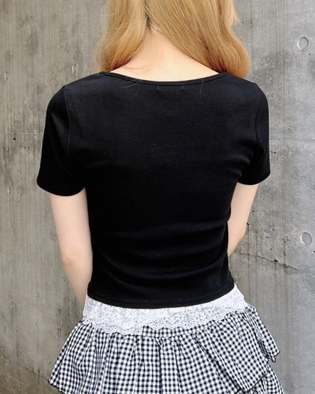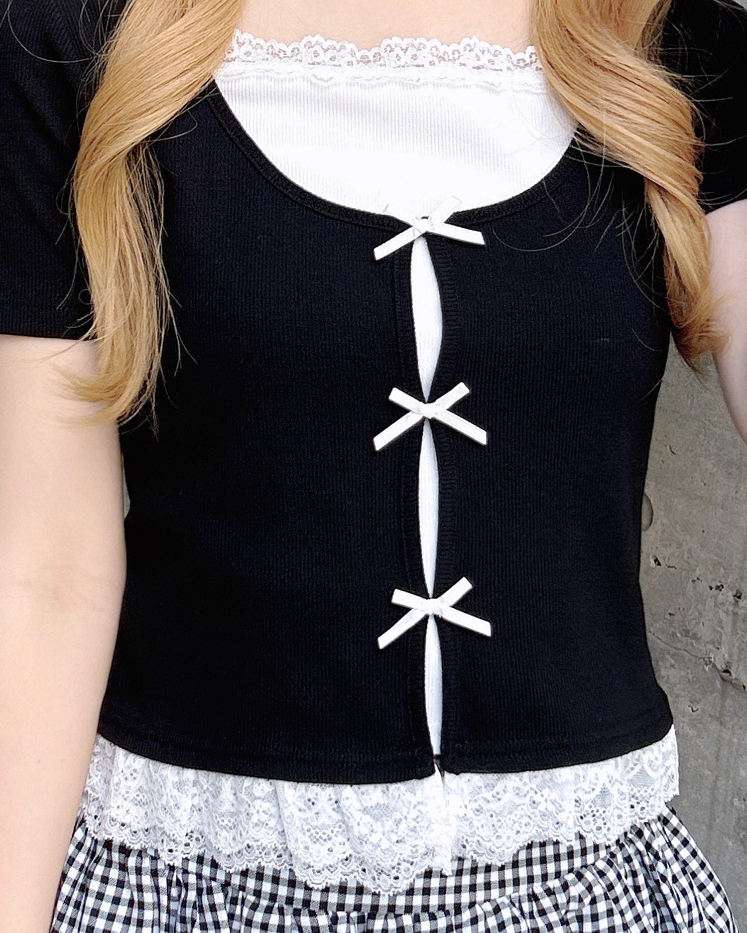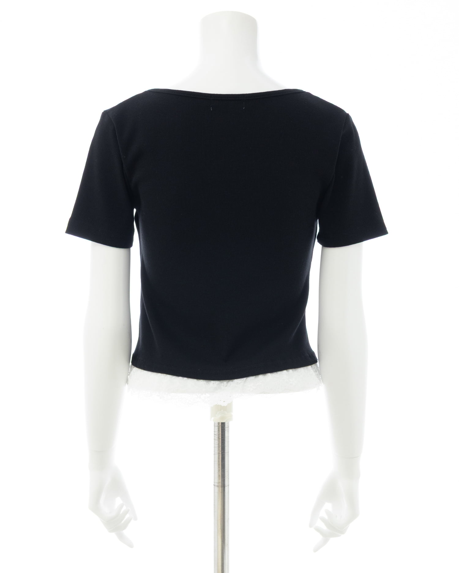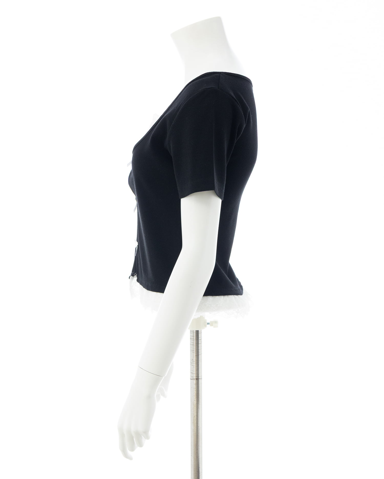 • INGNI(イング) レイヤード前リボンリブトップス クロ