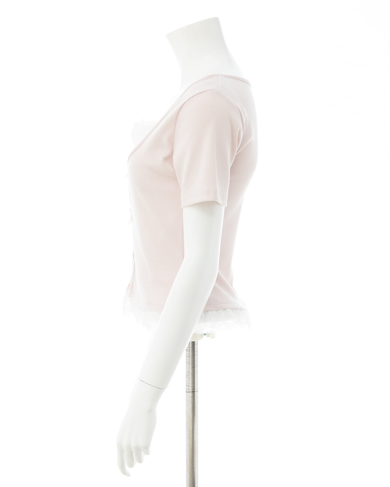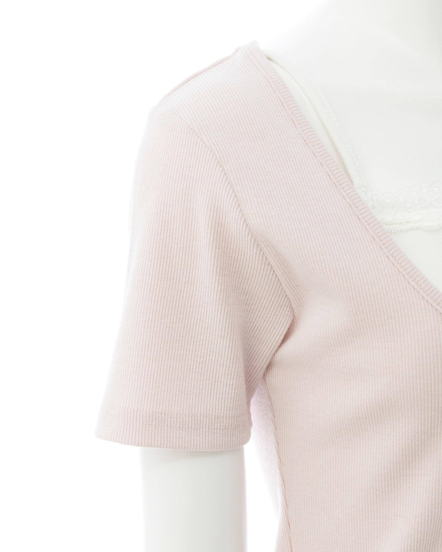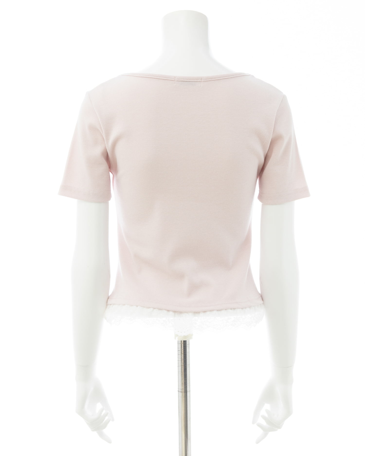 • INGNI(イング) レイヤード前リボンリブトップス ピンク