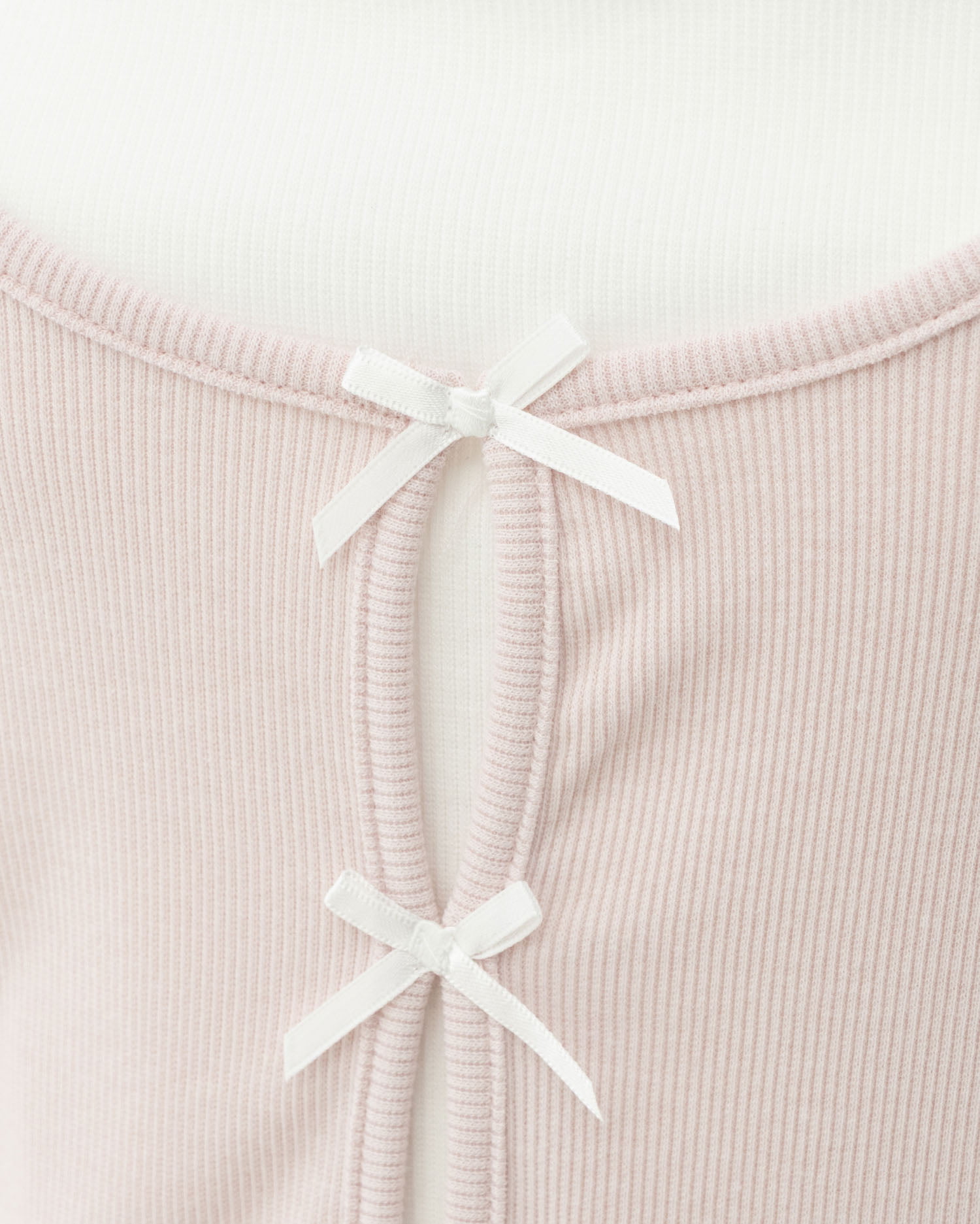 フロントに縫い留めた小さなリボンがキュートなアクセントになっています。