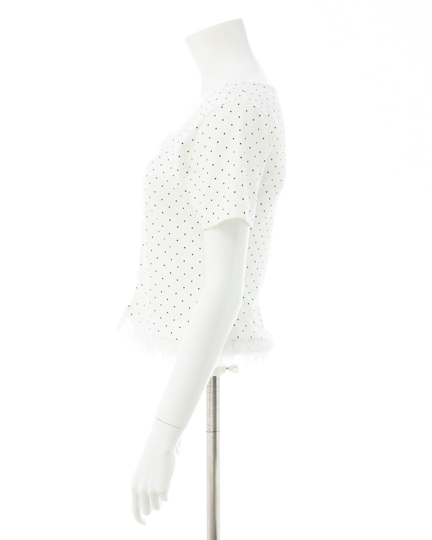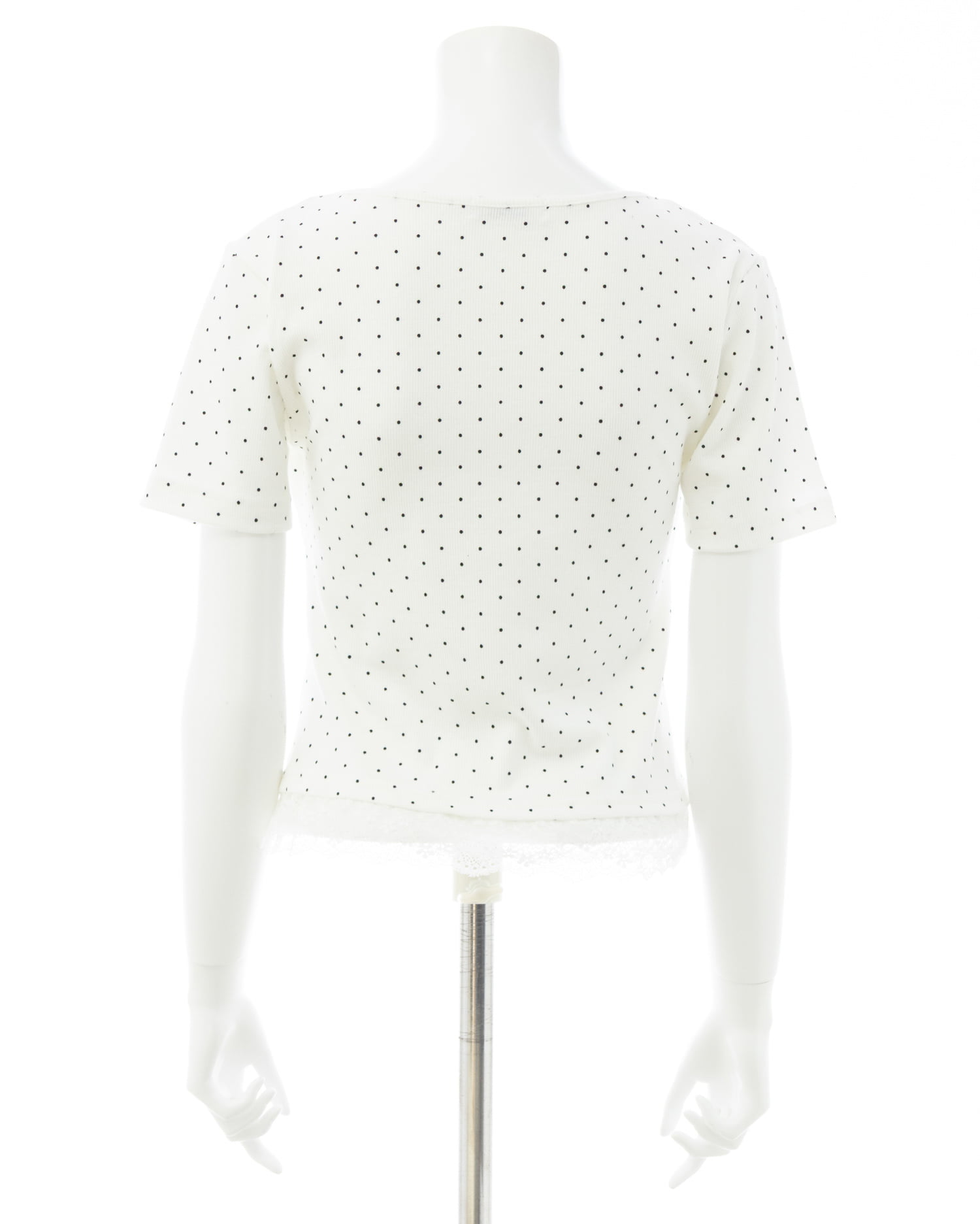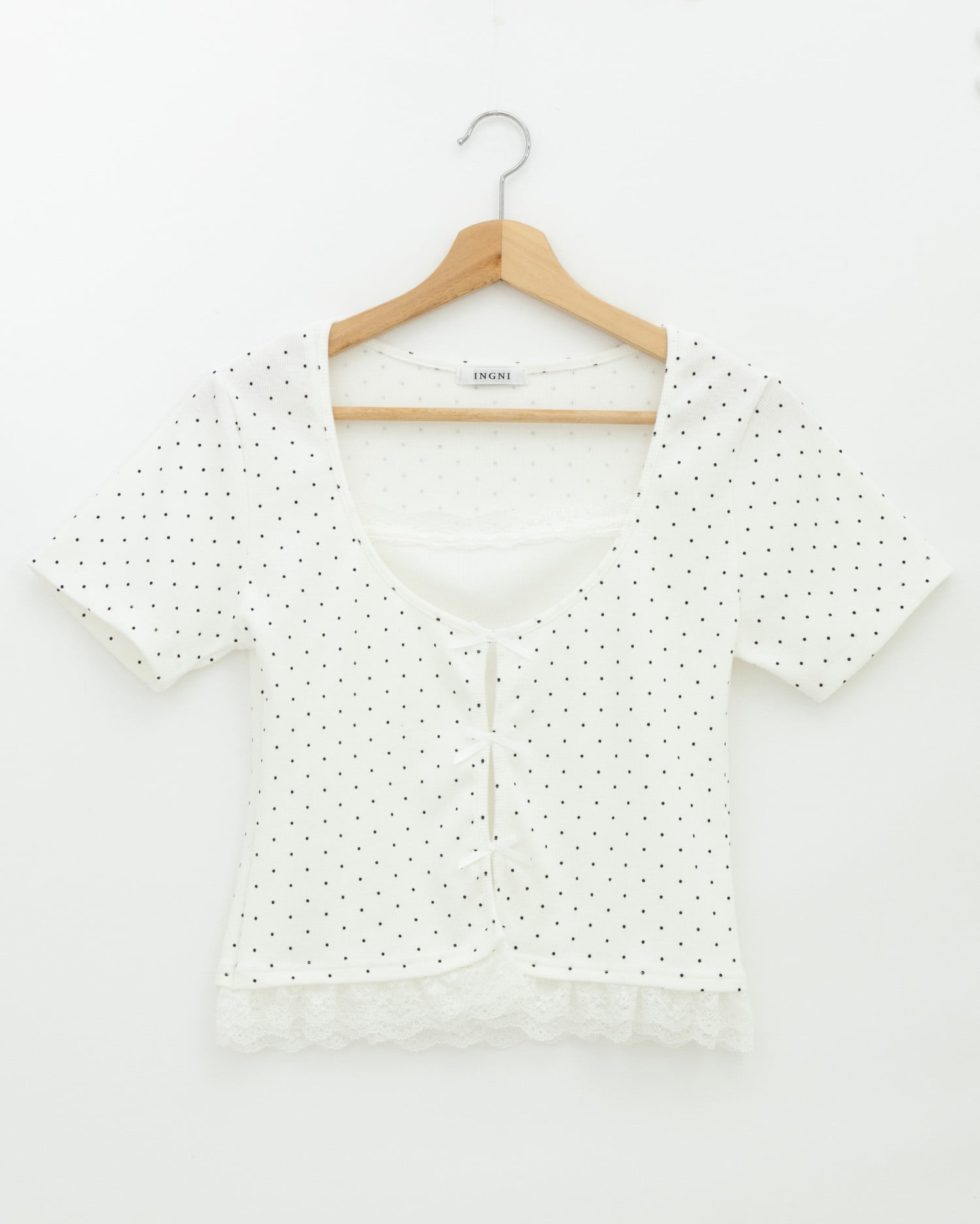 • INGNI(イング) レイヤード前リボンリブトップス オフクロ/ドット
