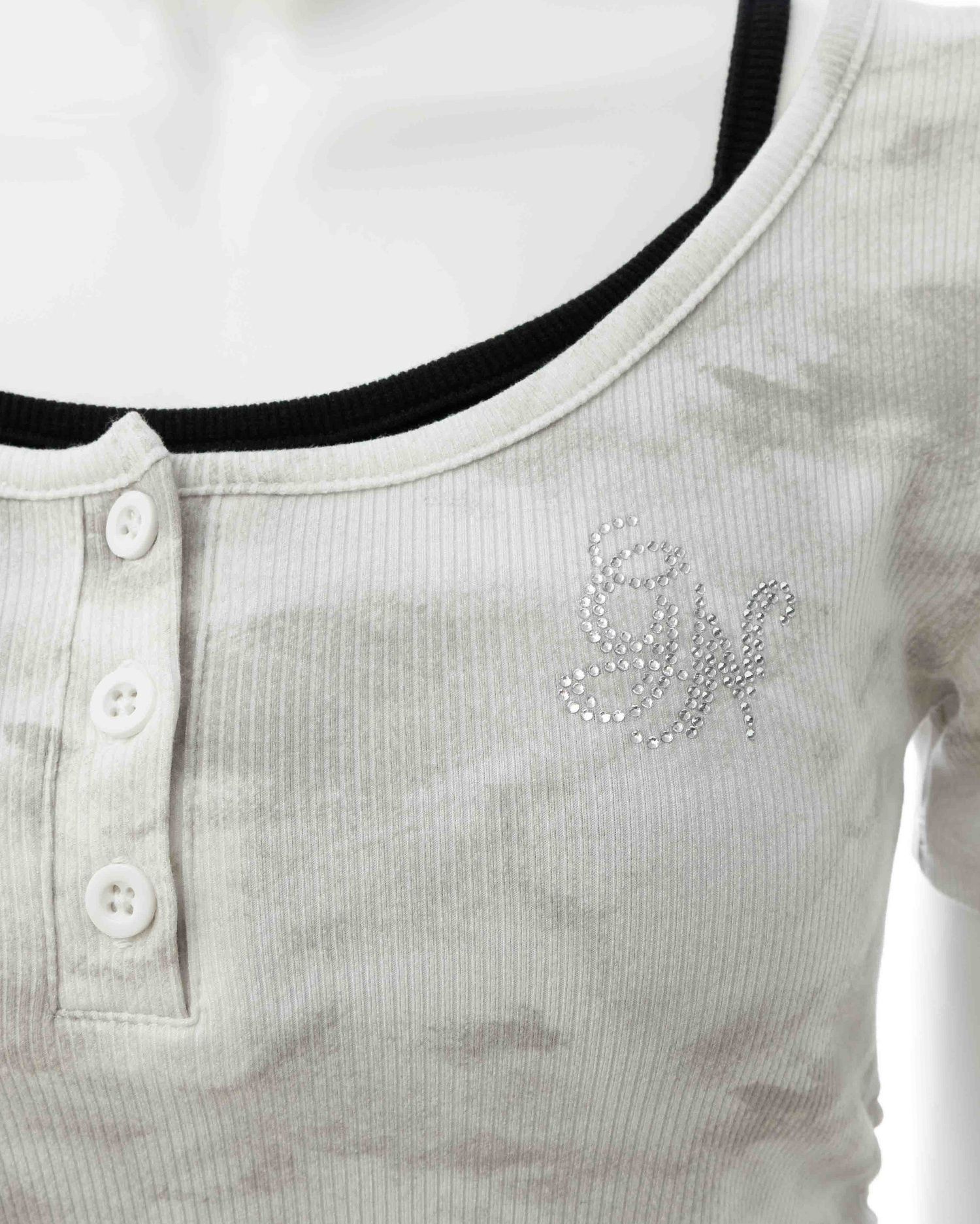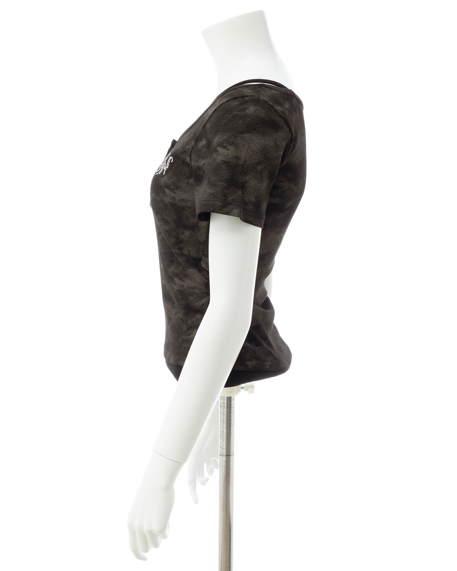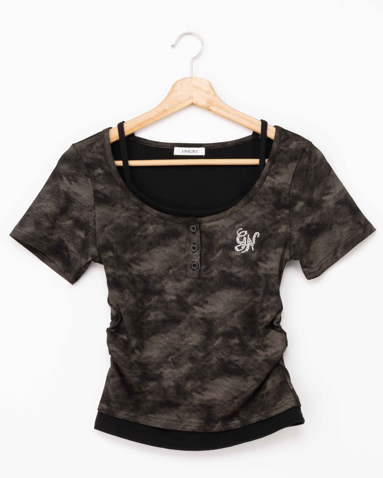 胸元にはラインストーンロゴをあしらってキラキラのアクセントに。