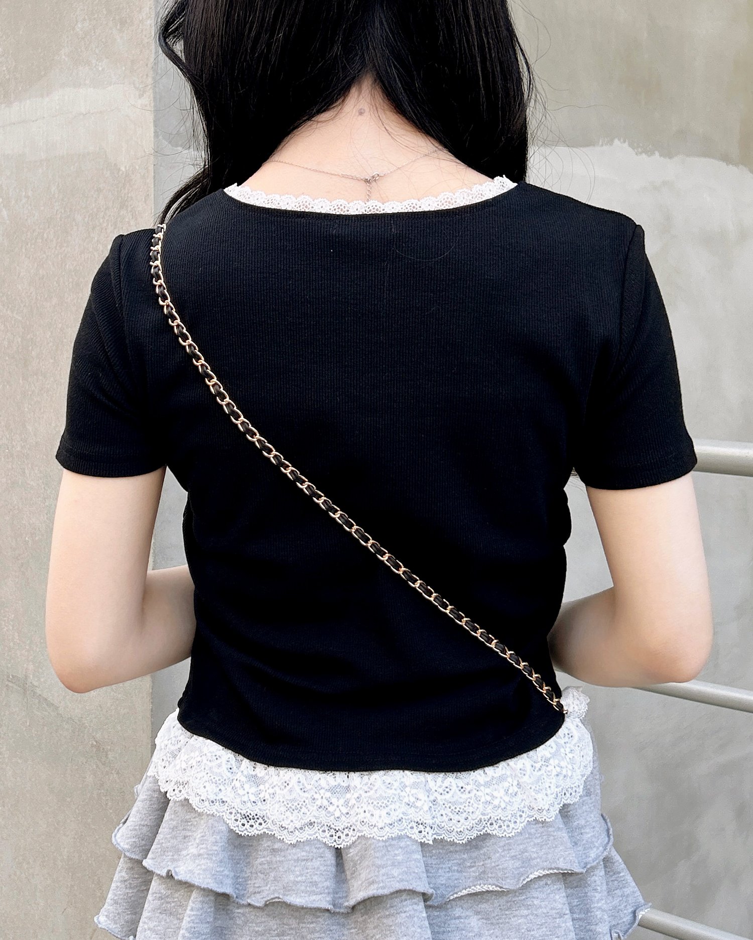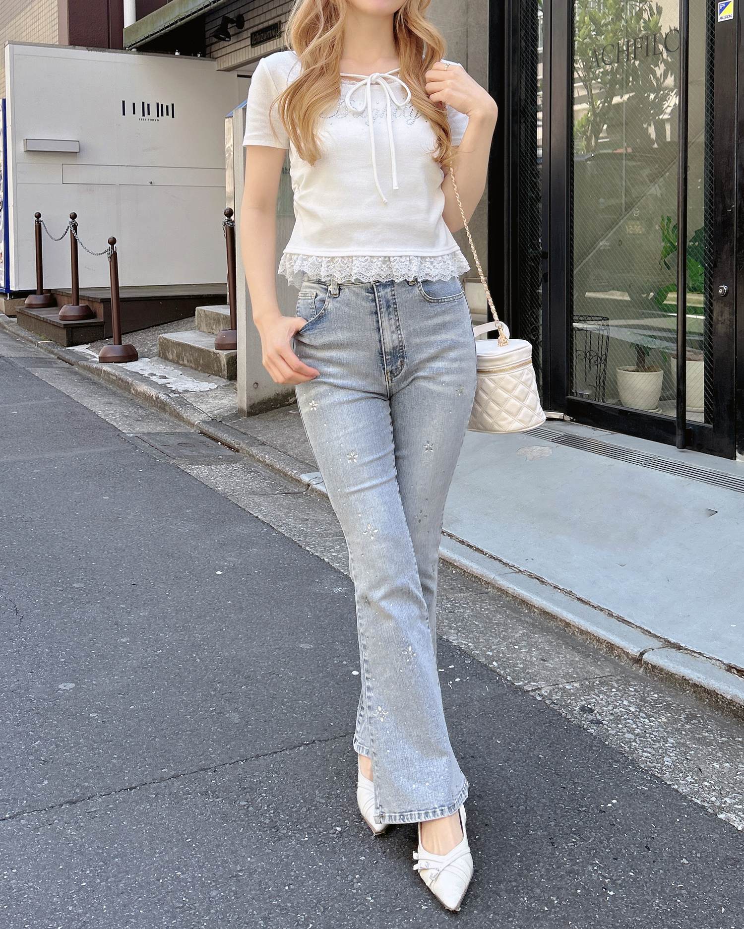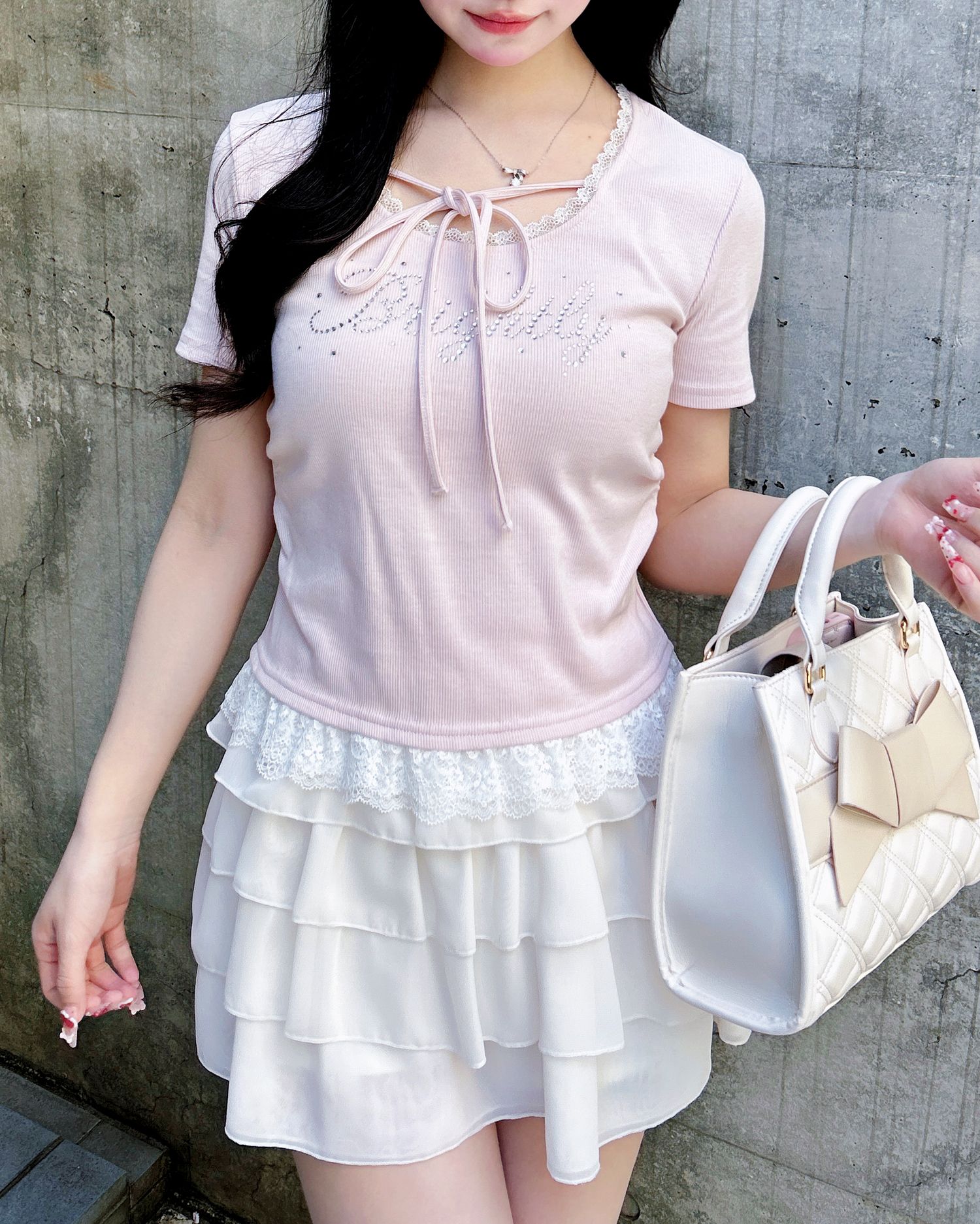 【ラインストーンのロゴがかわいすぎる♡レース出しTシャツ】