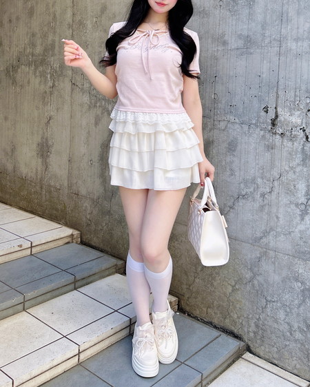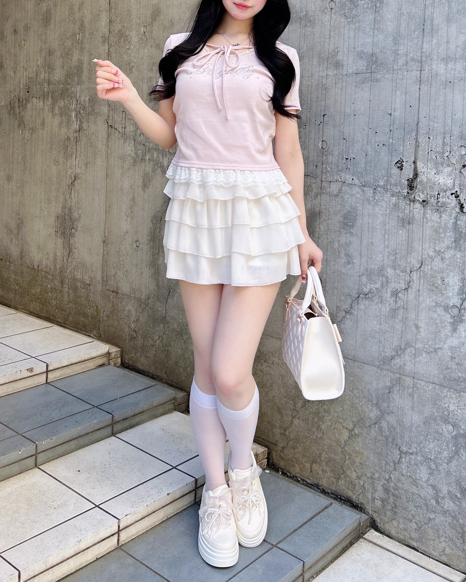 ミニスカートを合わせたガーリーなコーデもかわいい♡