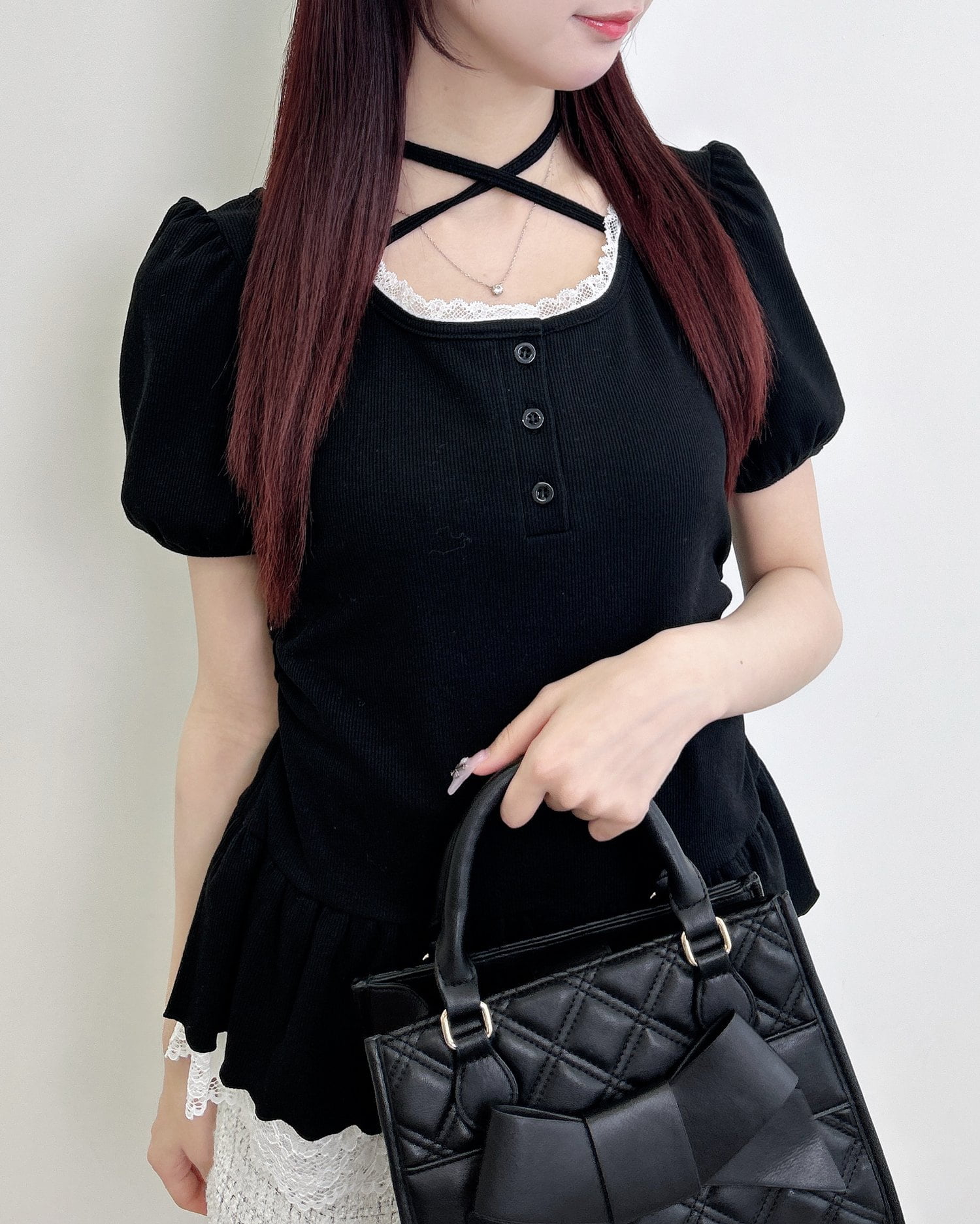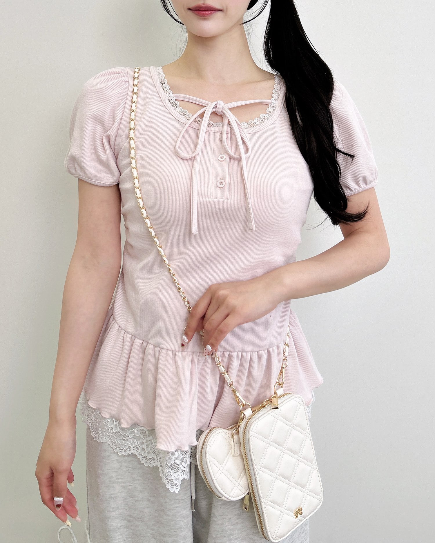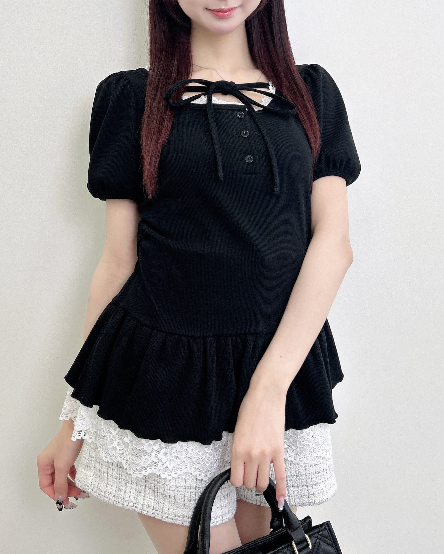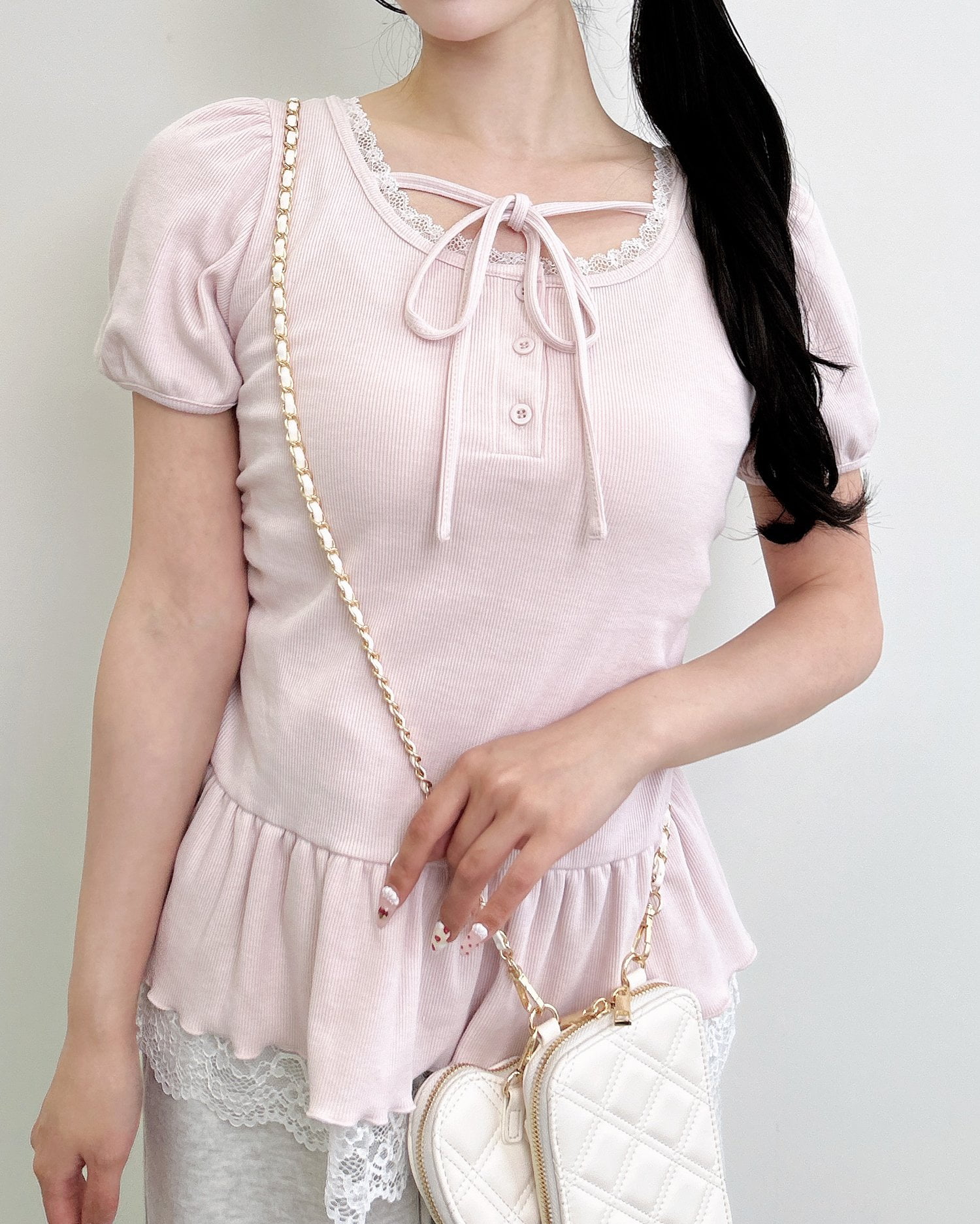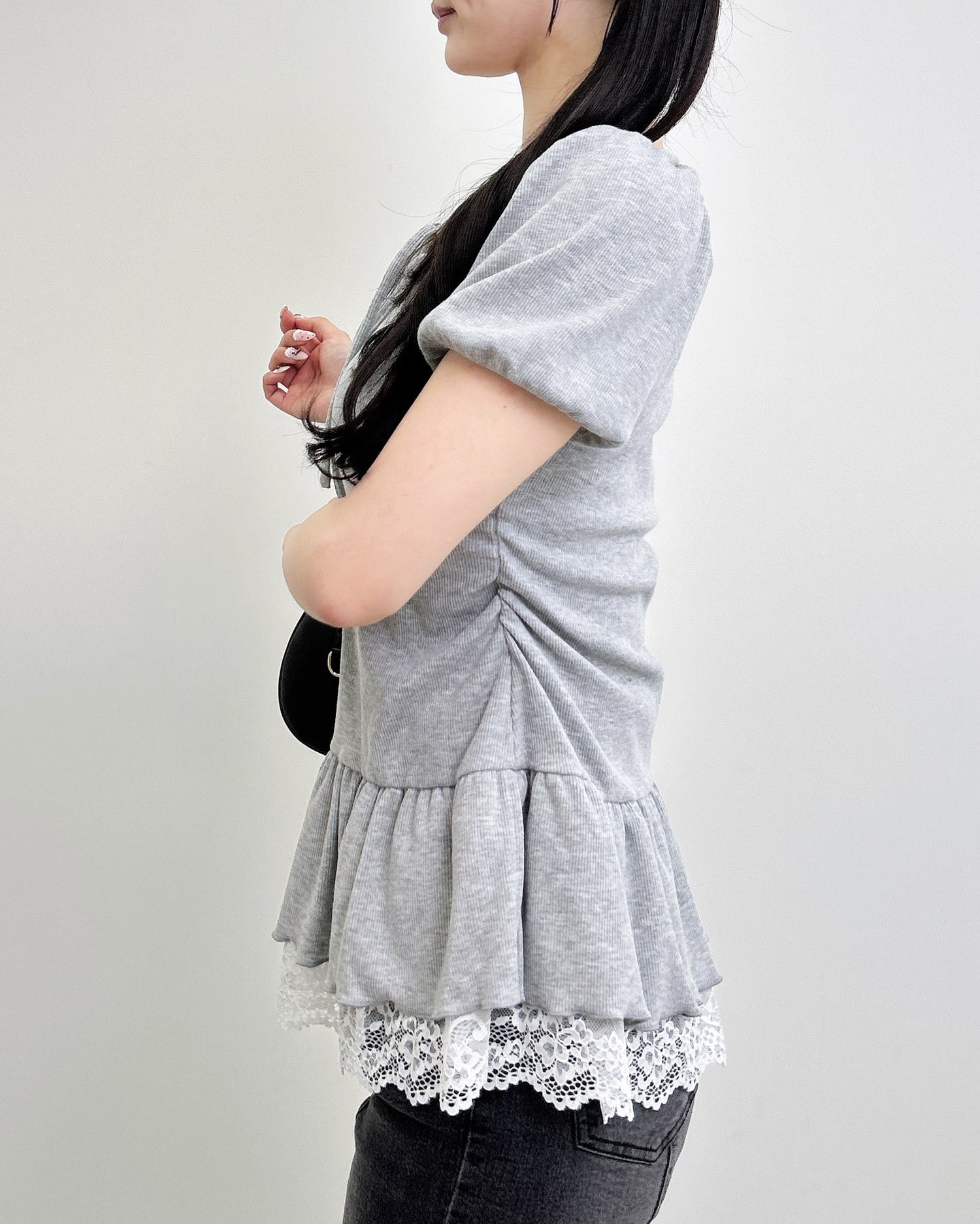 【一部カラー予約受付中】ヘンリーネックペプラムリブトップス