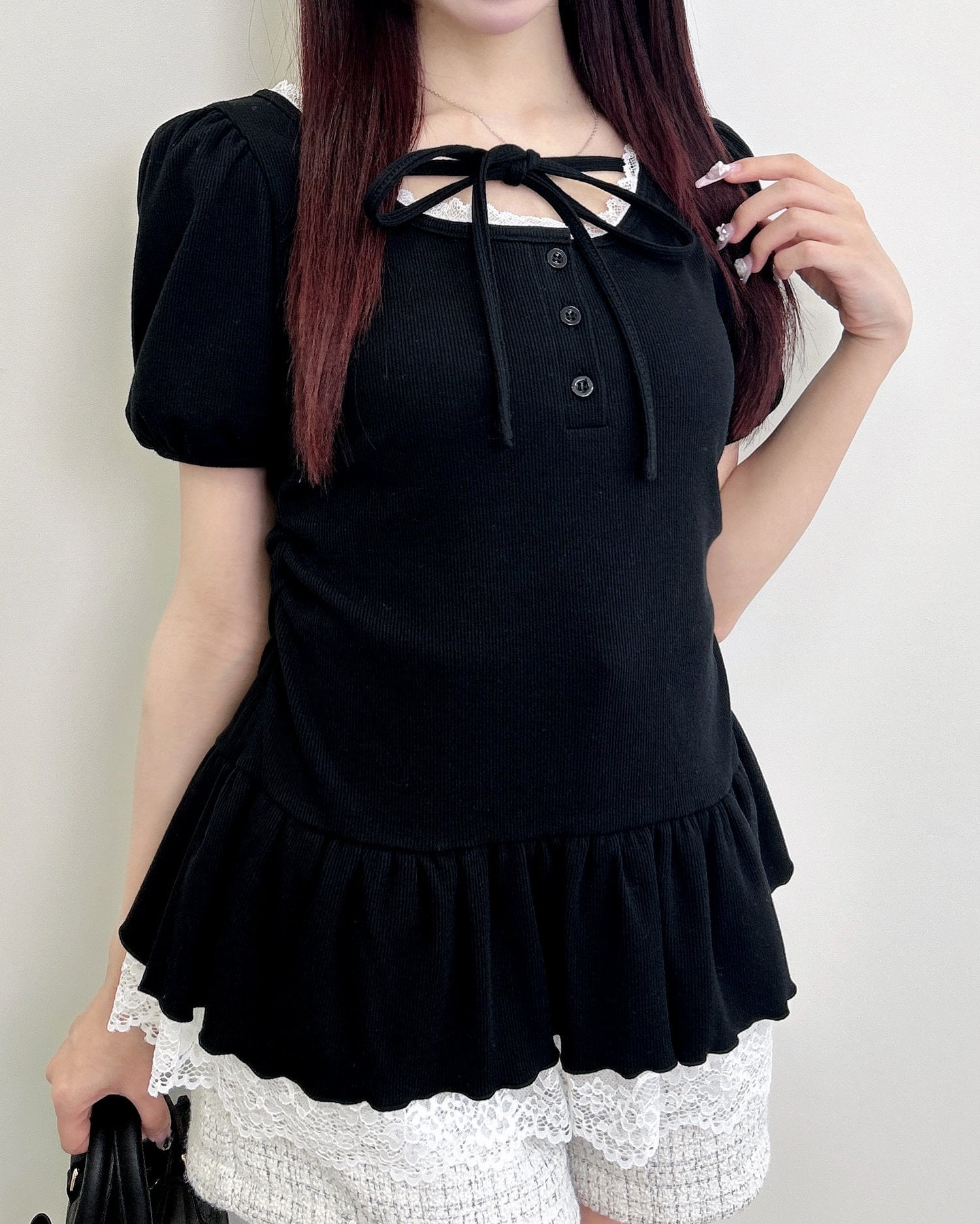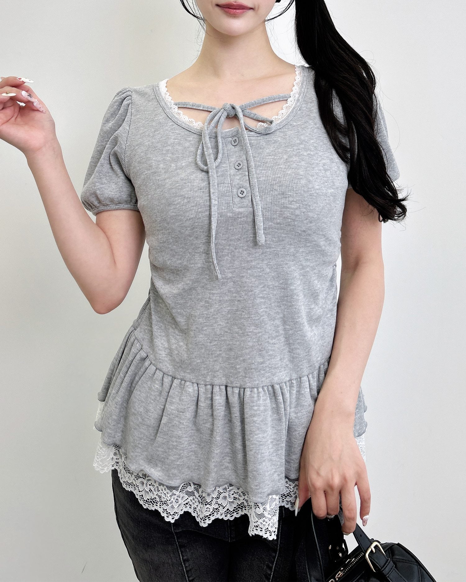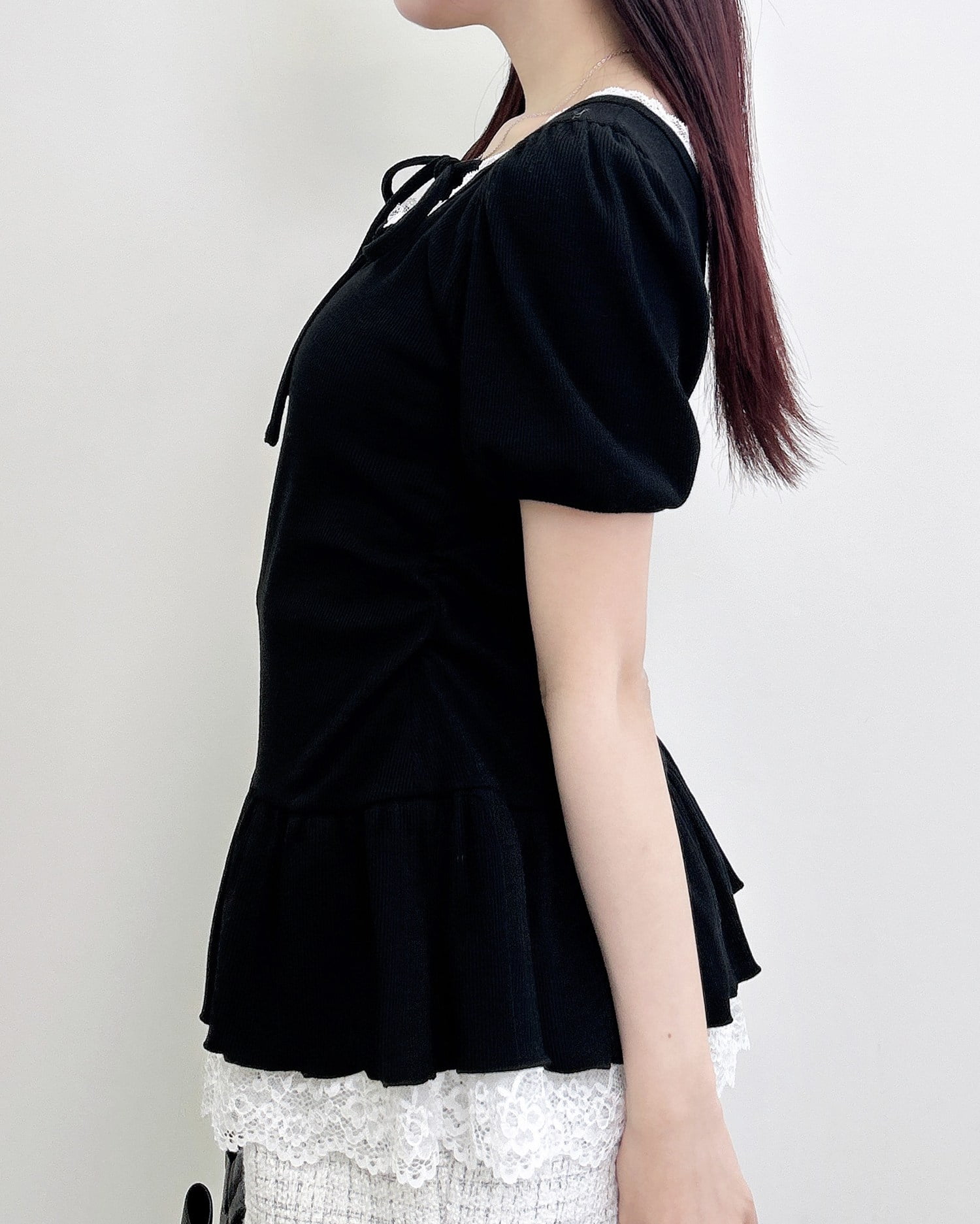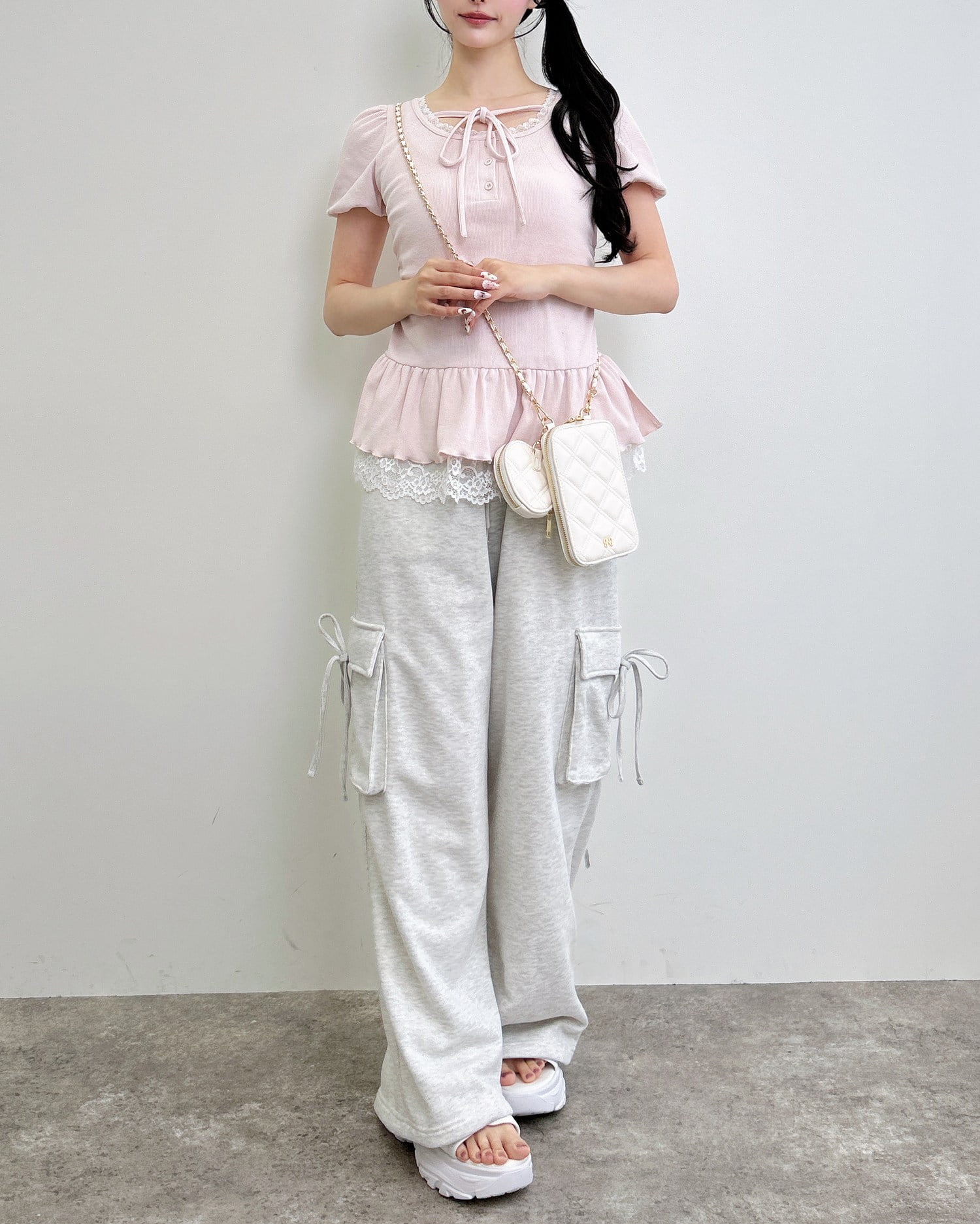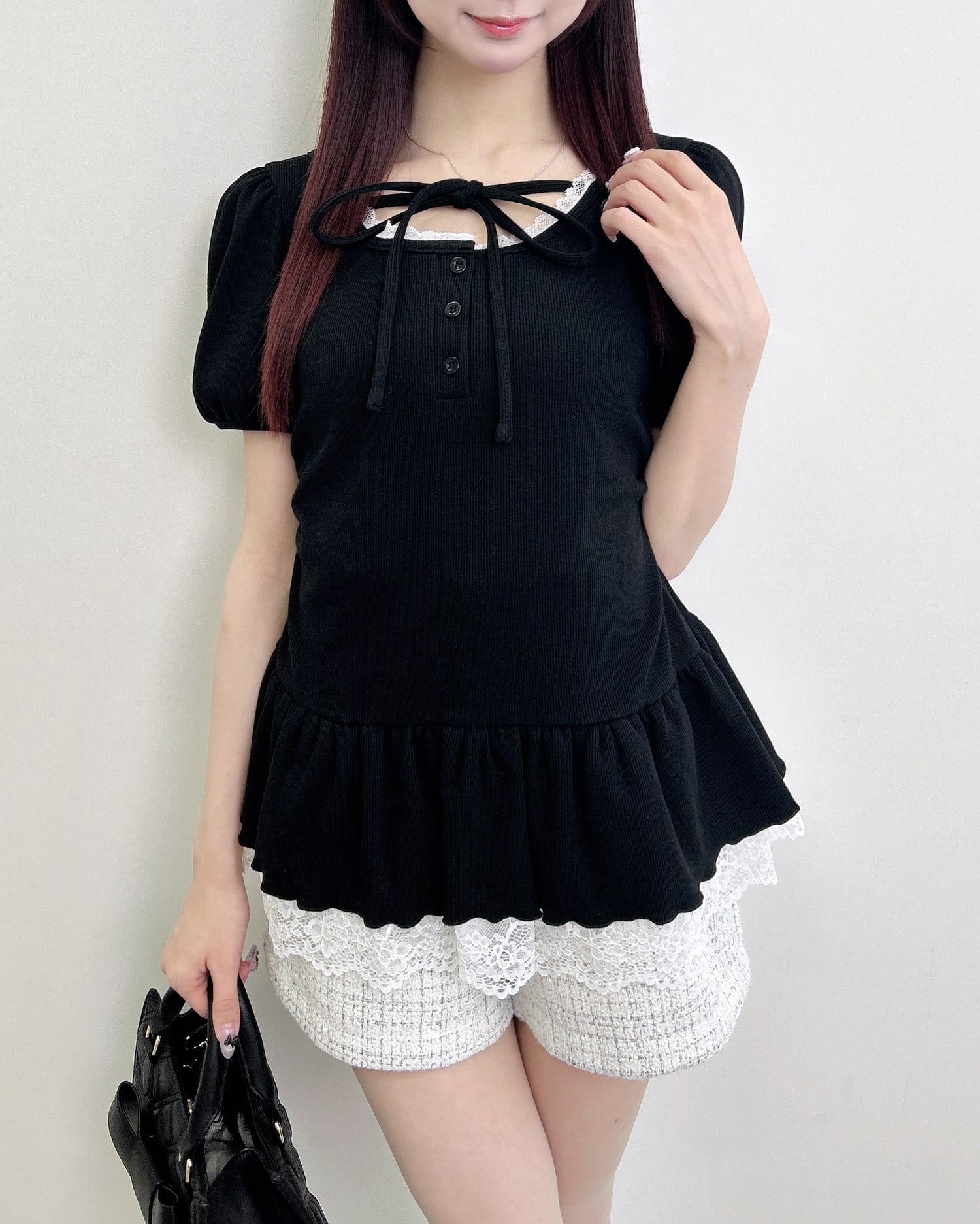 【一部カラー予約受付中】ヘンリーネックペプラムリブトップス