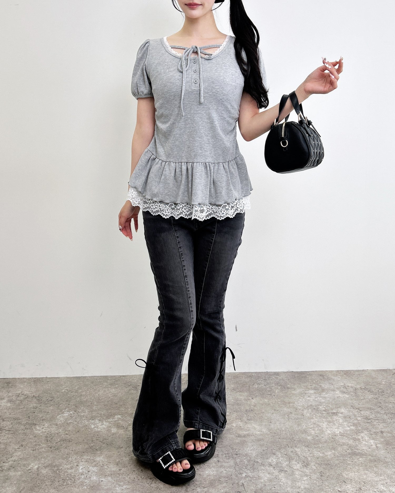 • INGNI(イング) 【一部カラー予約受付中】ヘンリーネックペプラムリブトップス グレー