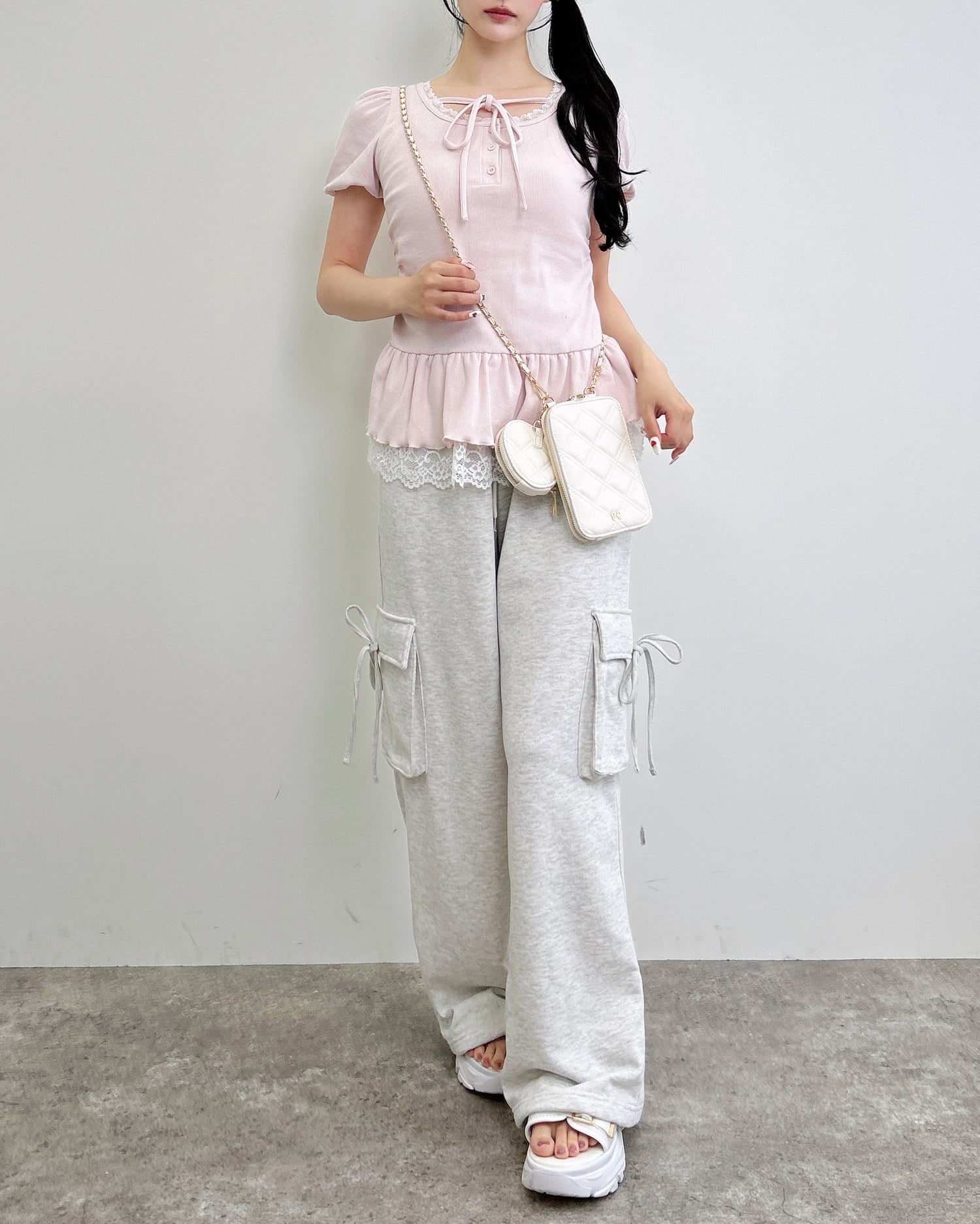 • INGNI(イング) 【一部カラー予約受付中】ヘンリーネックペプラムリブトップス ライトピンク