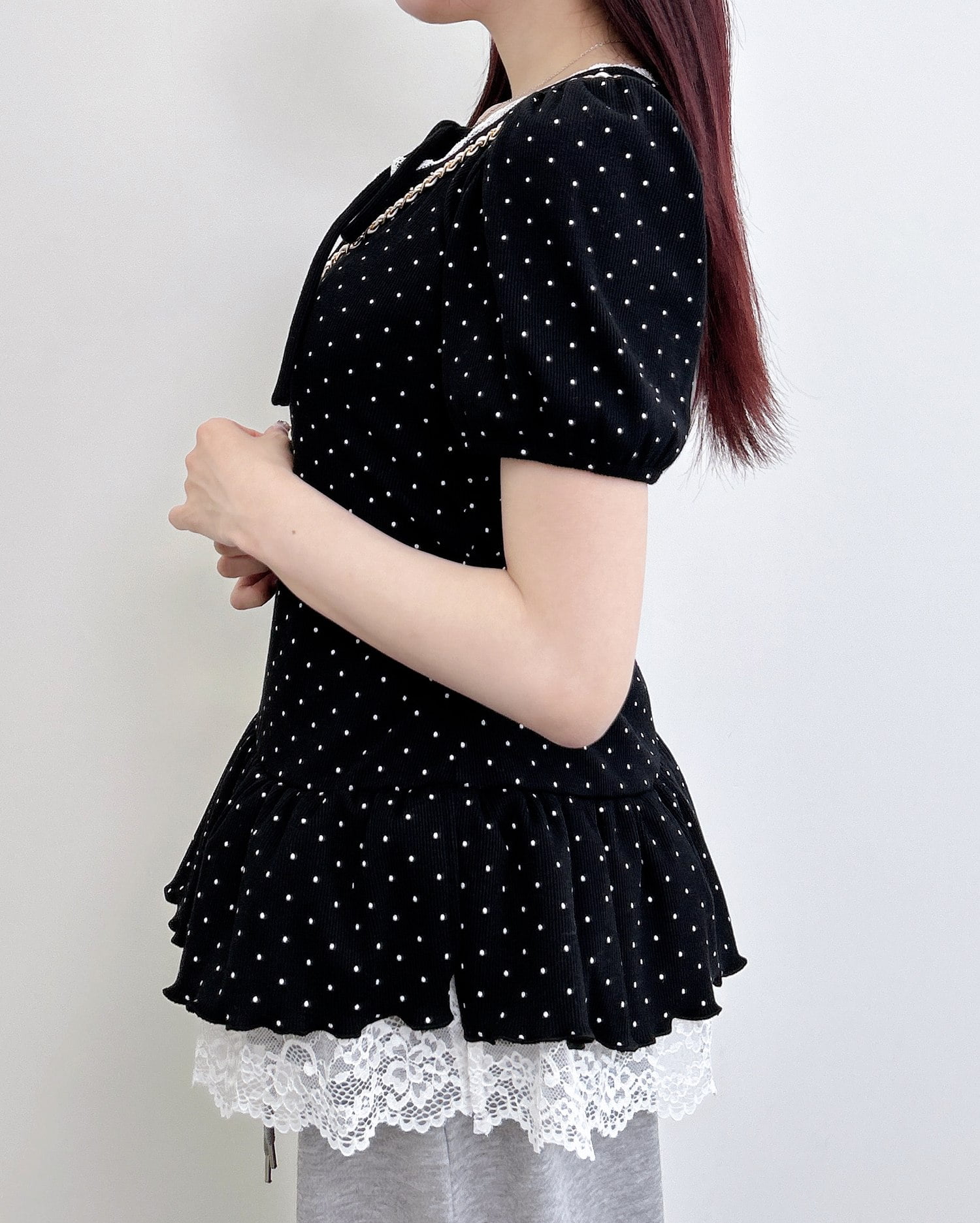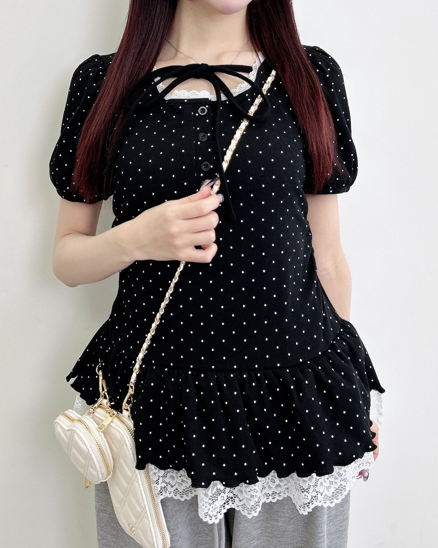 • INGNI(イング) 【一部カラー予約受付中】ヘンリーネックペプラムリブトップス クロオフ/ドット