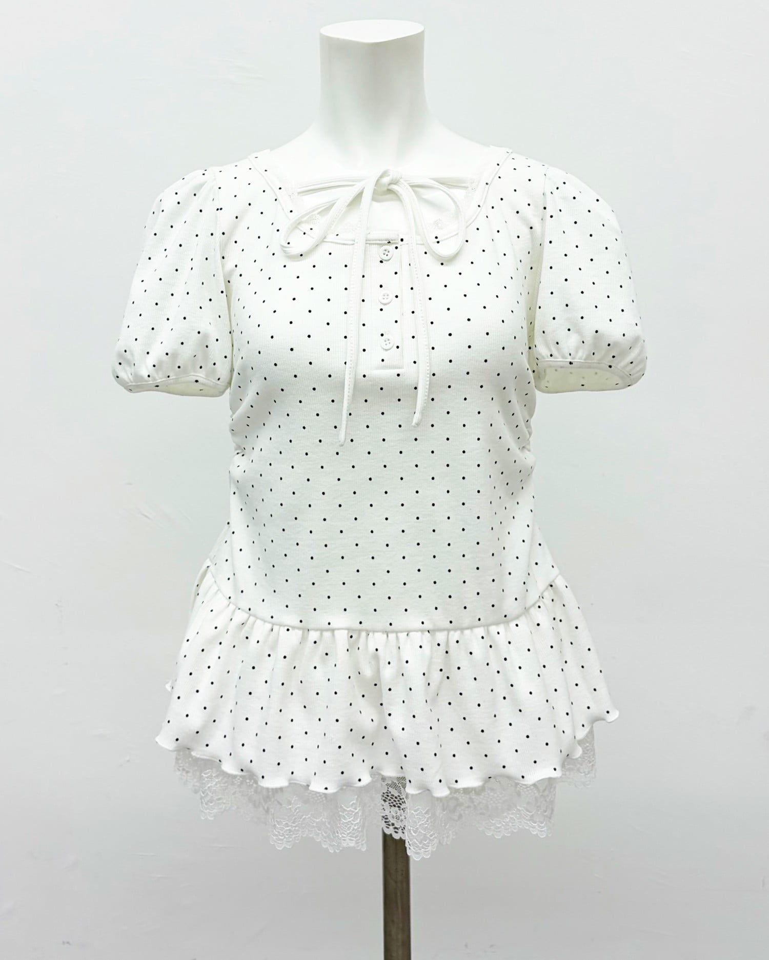 • INGNI(イング) 【一部カラー予約受付中】ヘンリーネックペプラムリブトップス オフクロ/ドット