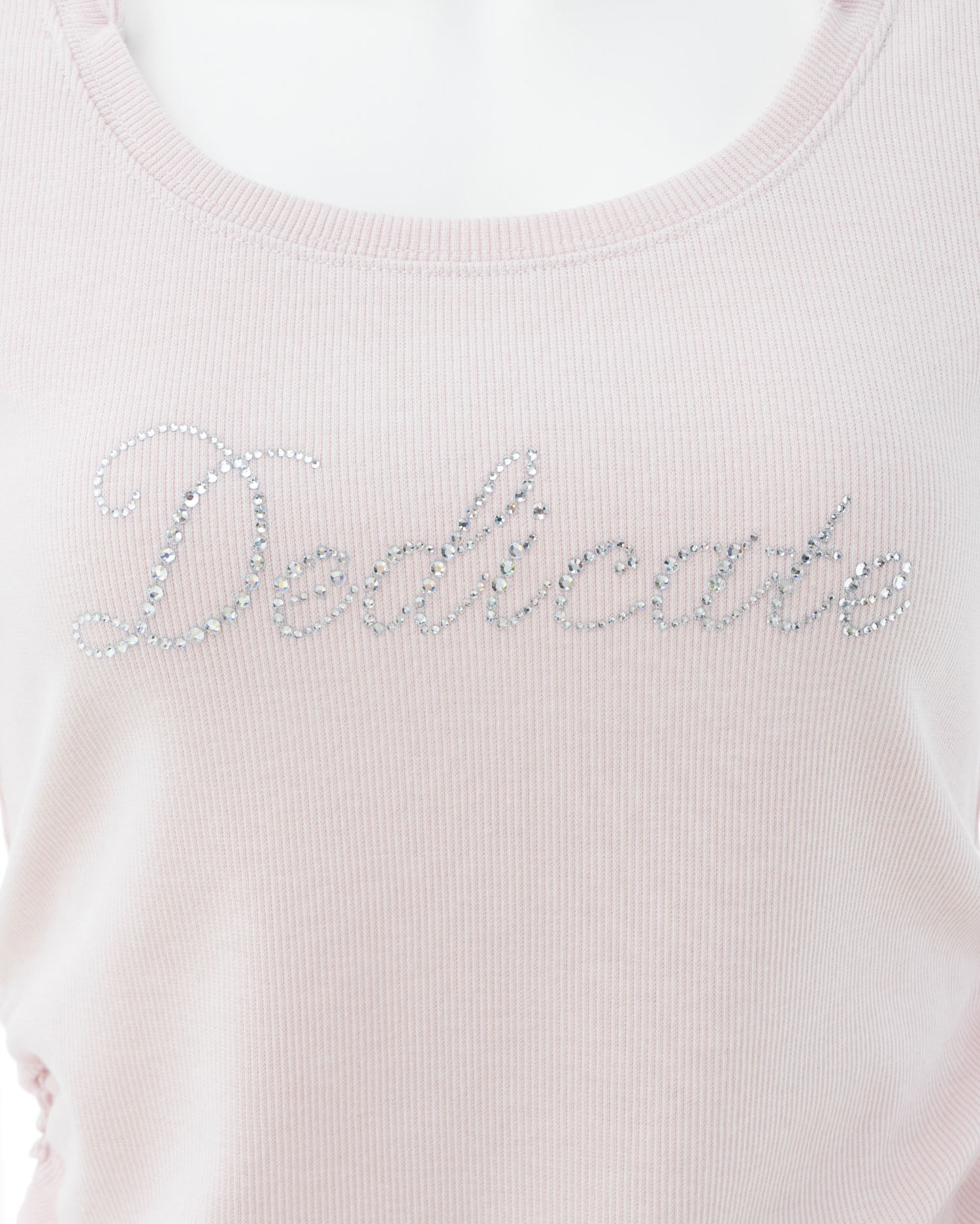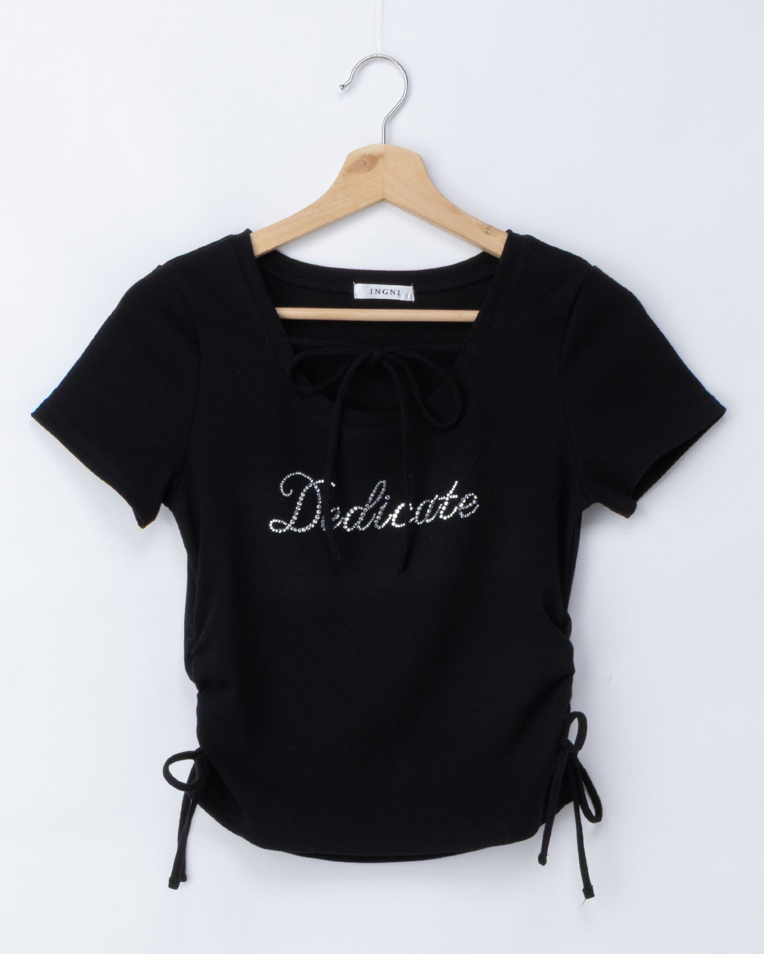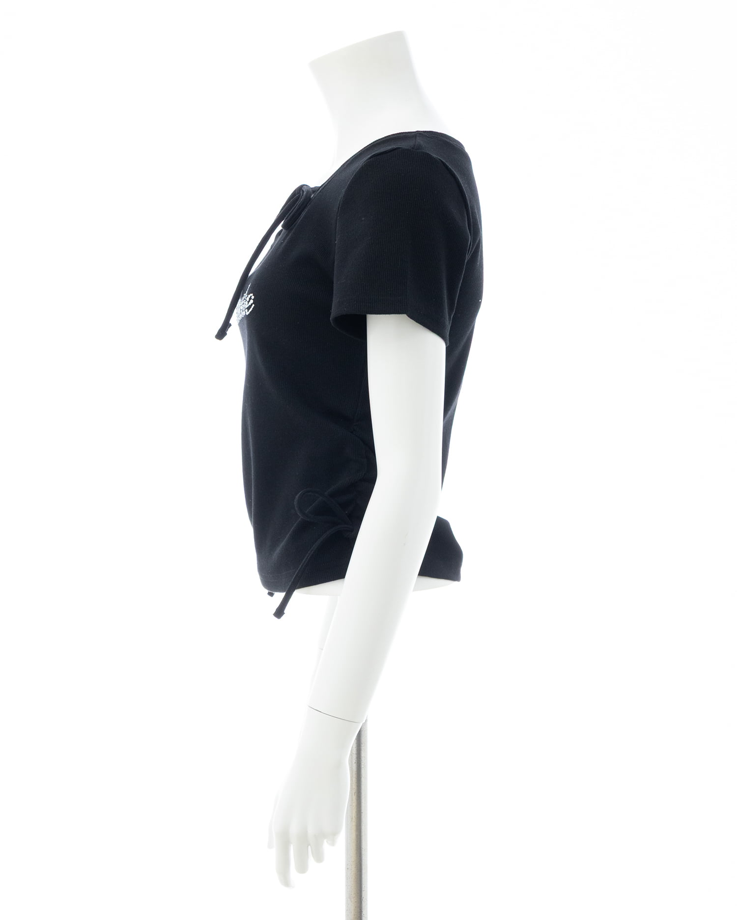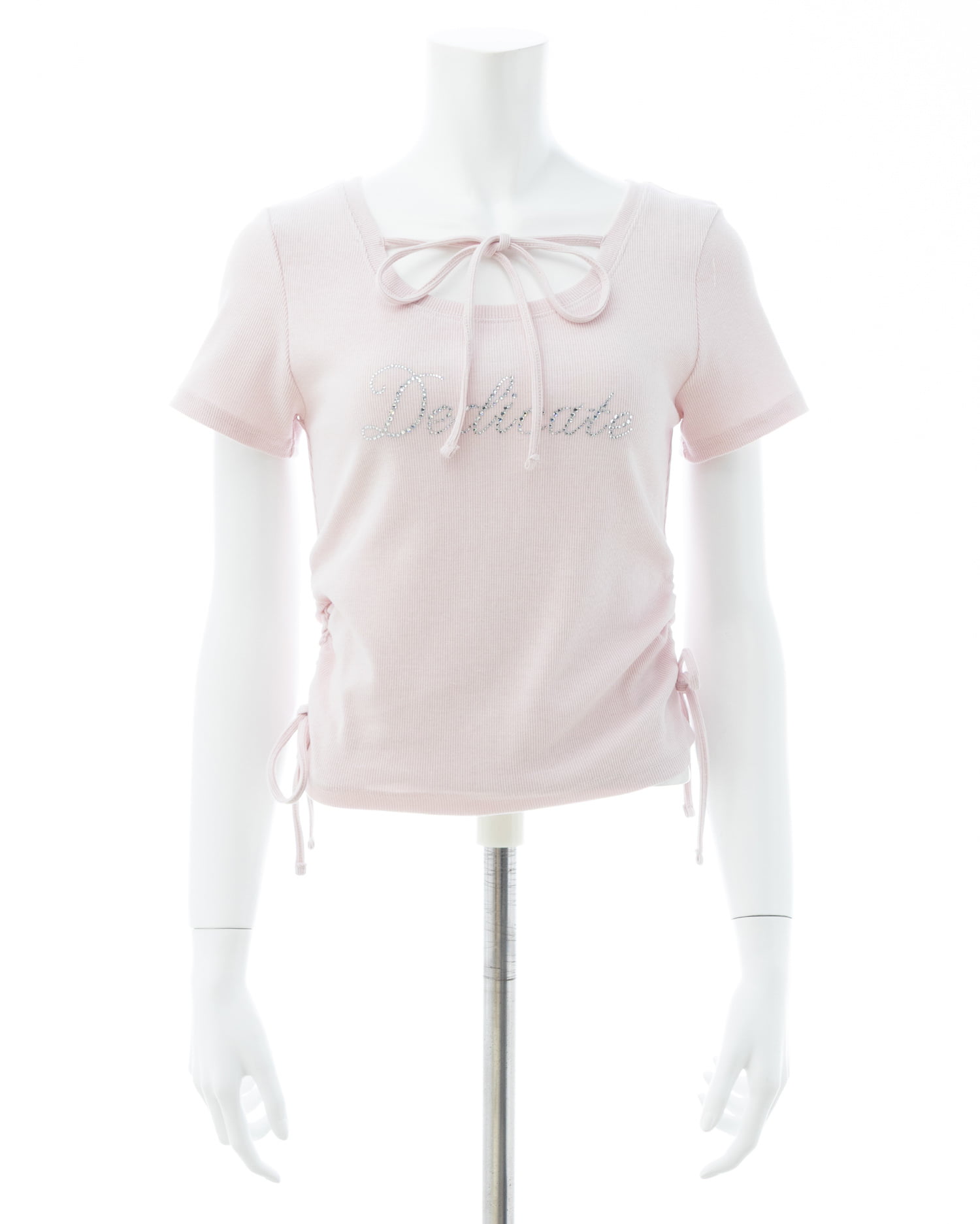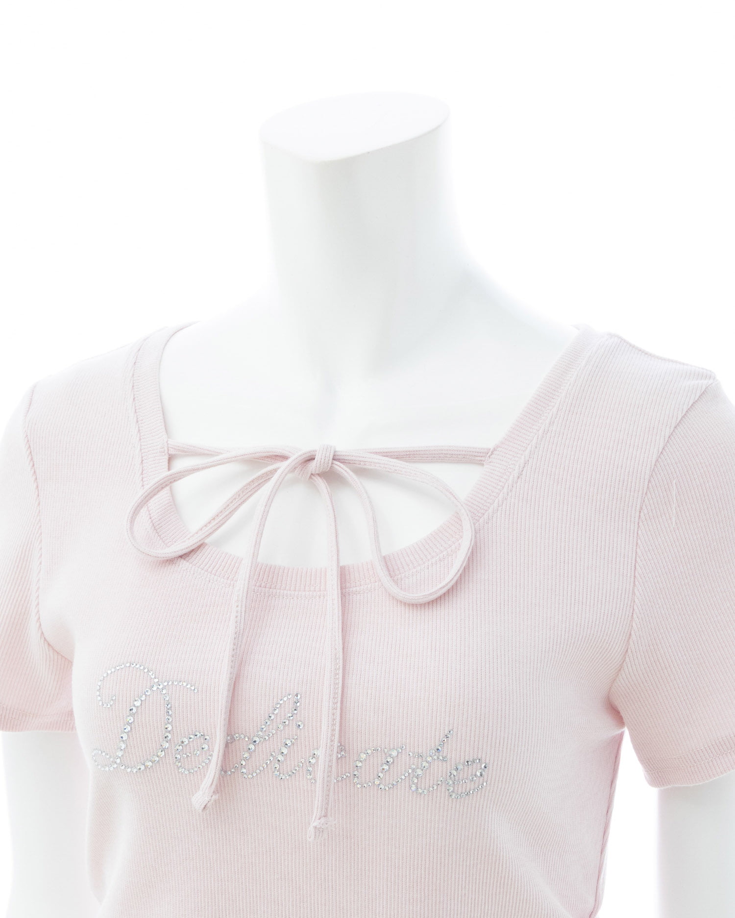キラキラビジューの流れるような筆記体ロゴがアクセントになったトップス。