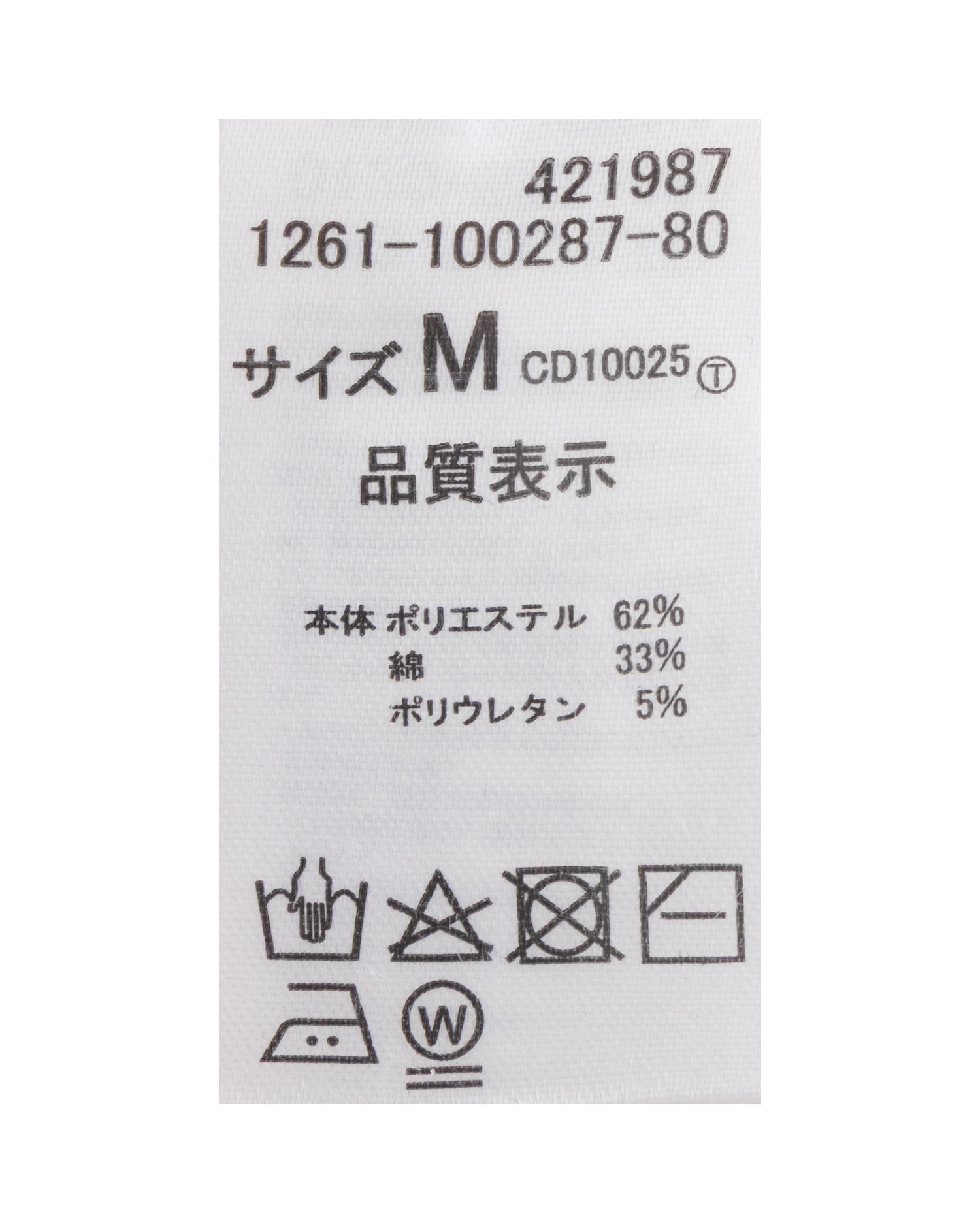 原産国 中国 ポリエステル62% 綿33% ポリウレタン5%