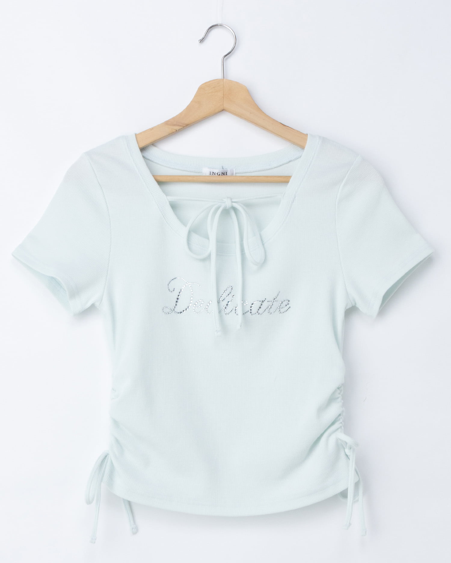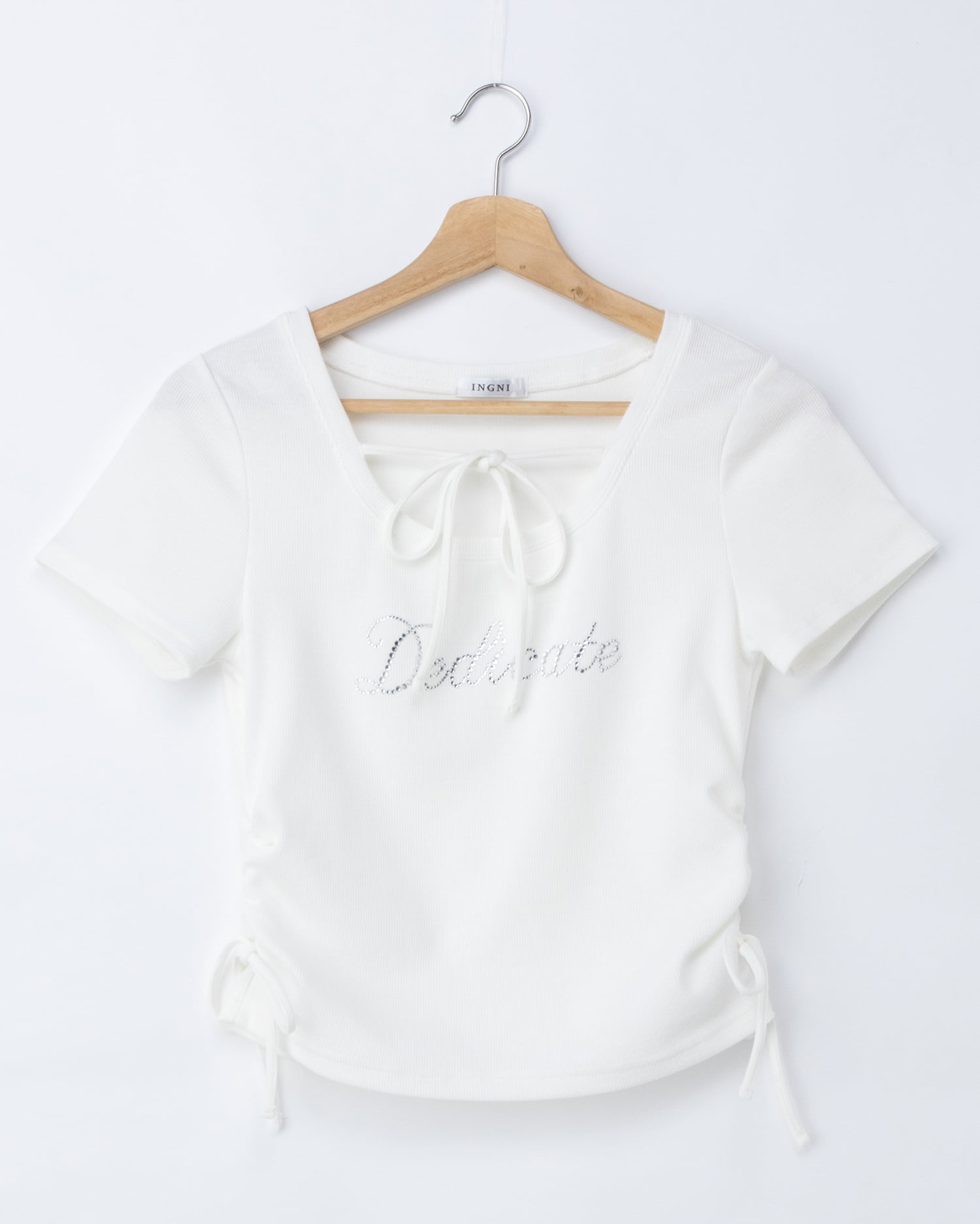 裾両サイドには華奢なリボンでキュートさをプラス。