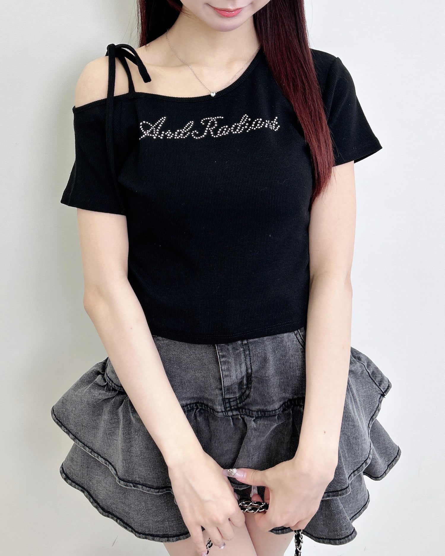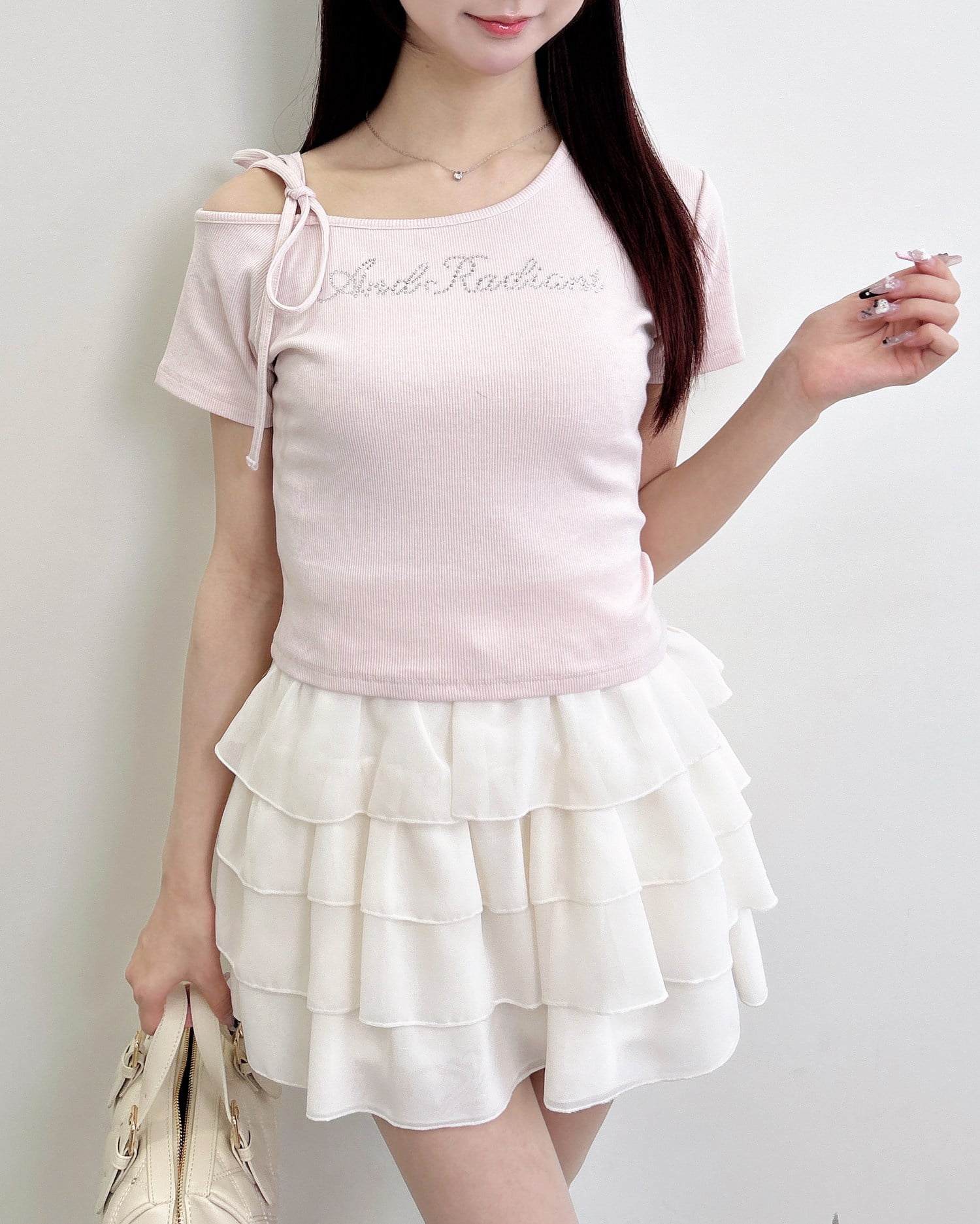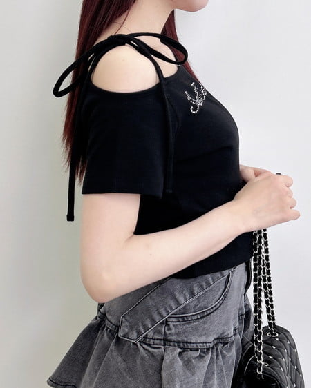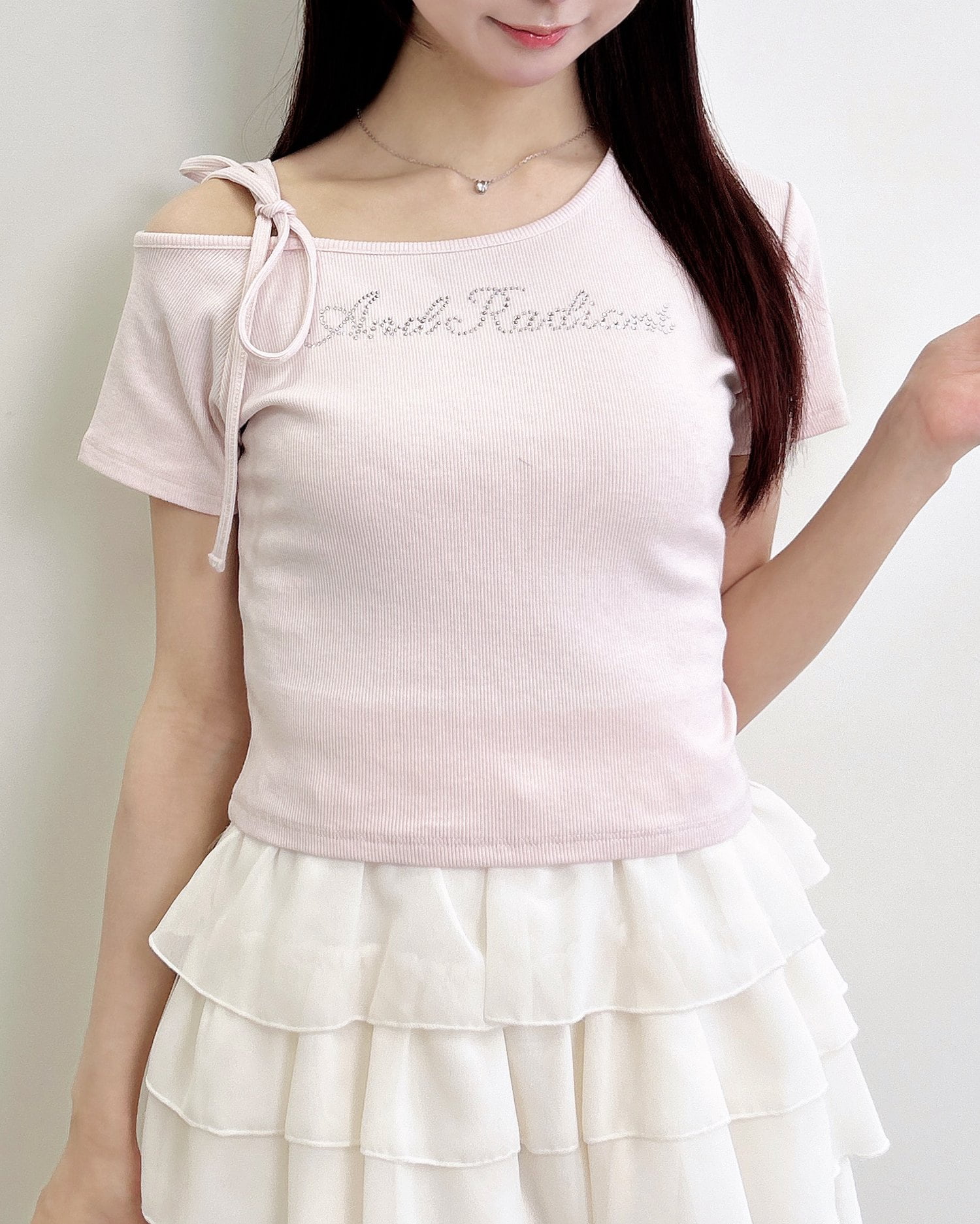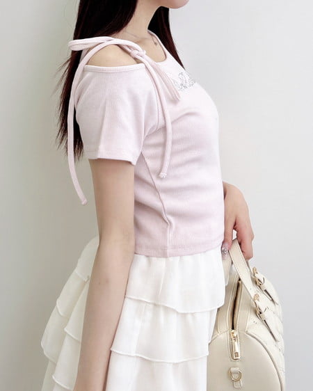 【抜け感のある肩リボンワンショルトップス】