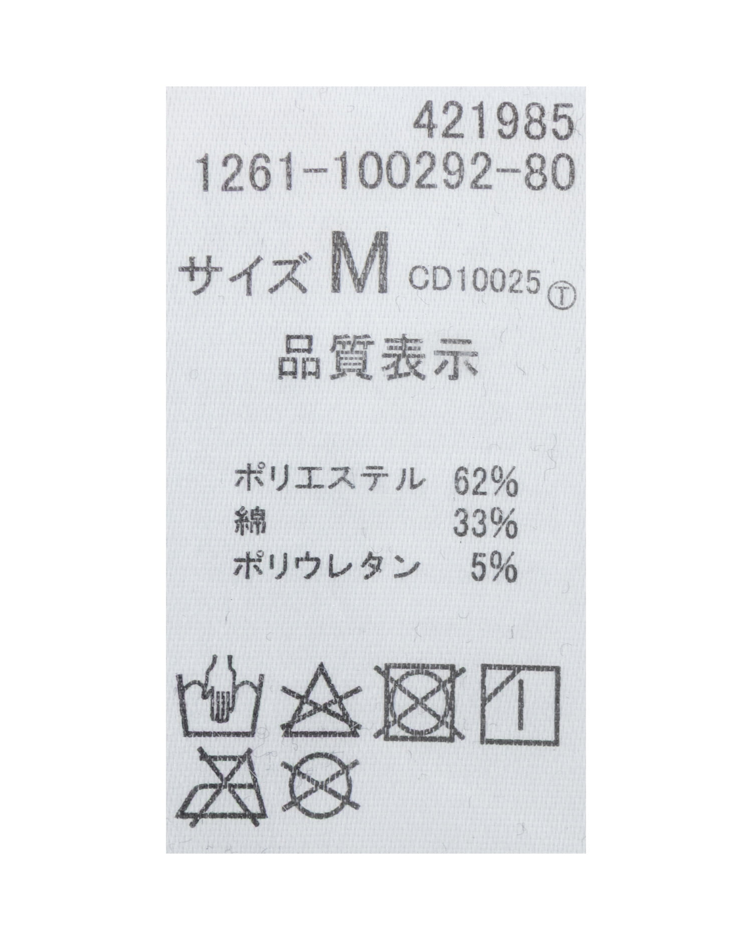 原産国 中国 ポリエステル62% 綿33% ポリウレタン5%