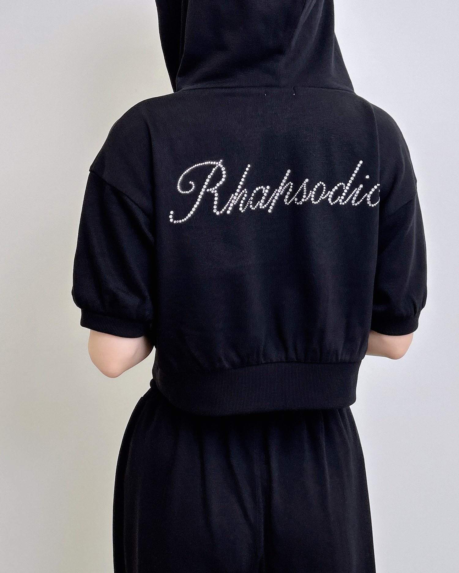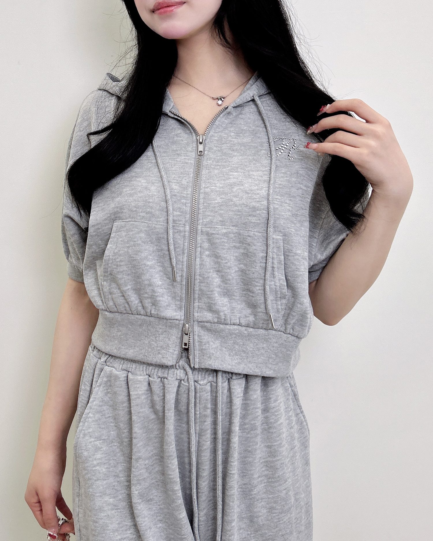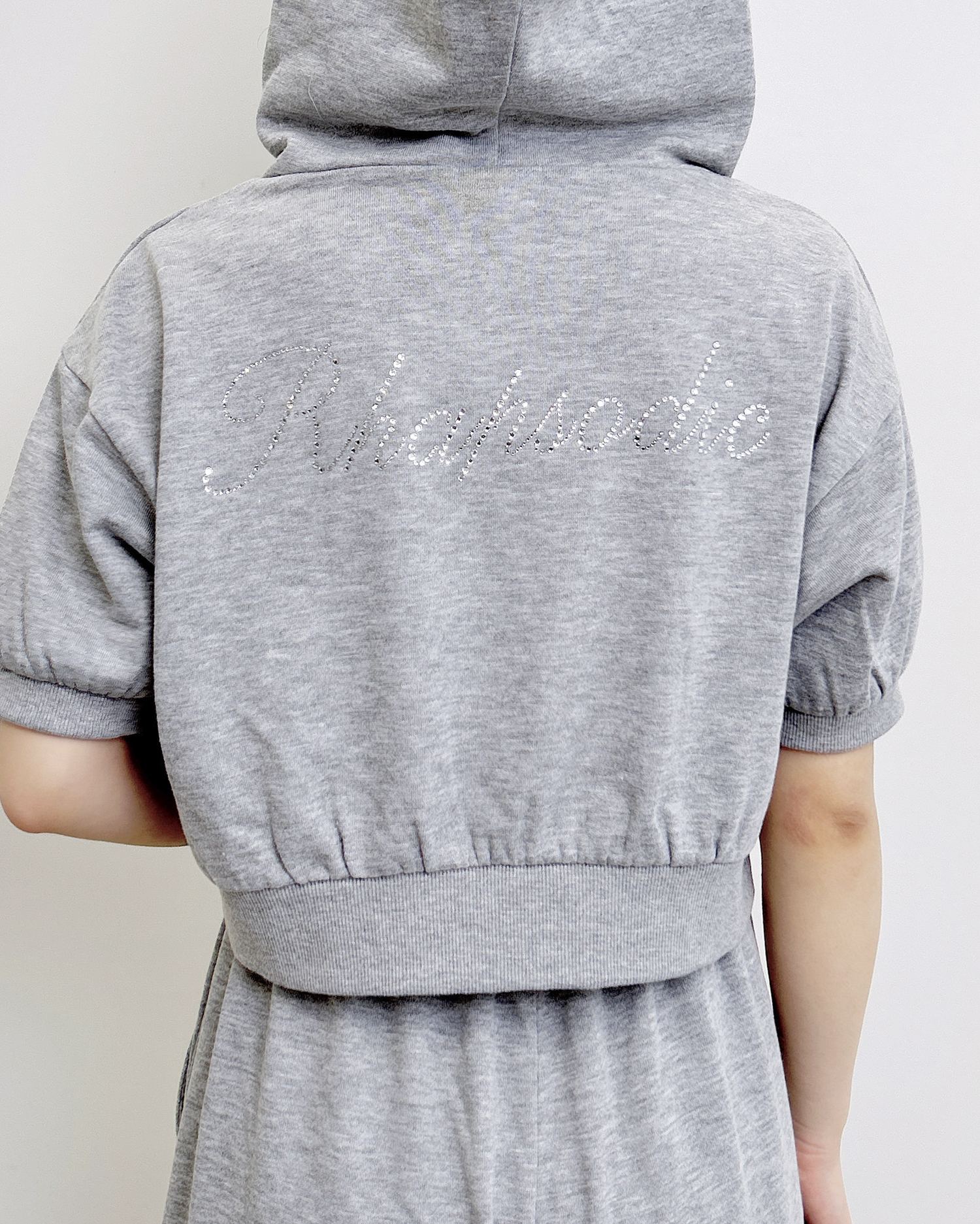 1261-100301 ラインストーンロゴミニスウェットジップパーカー