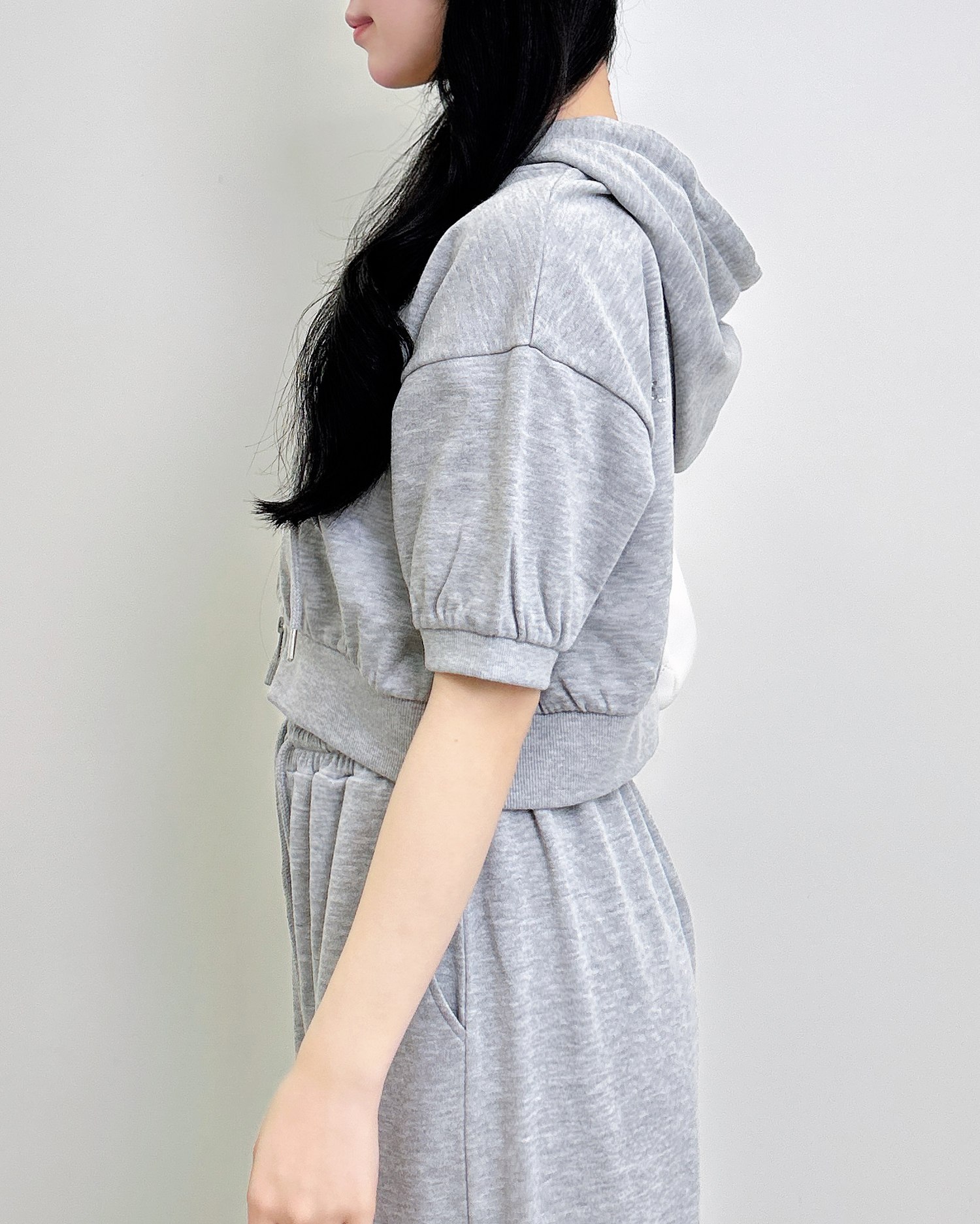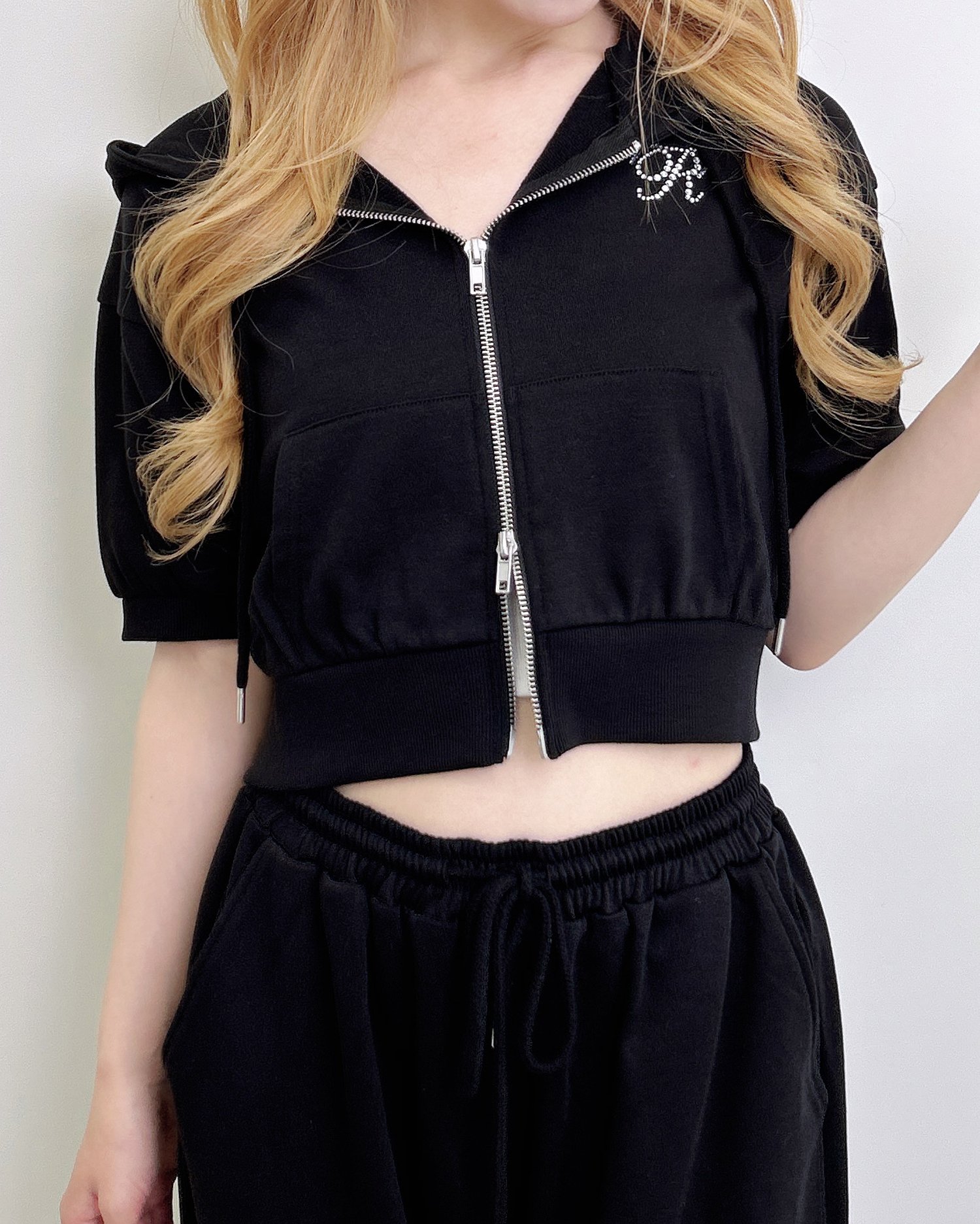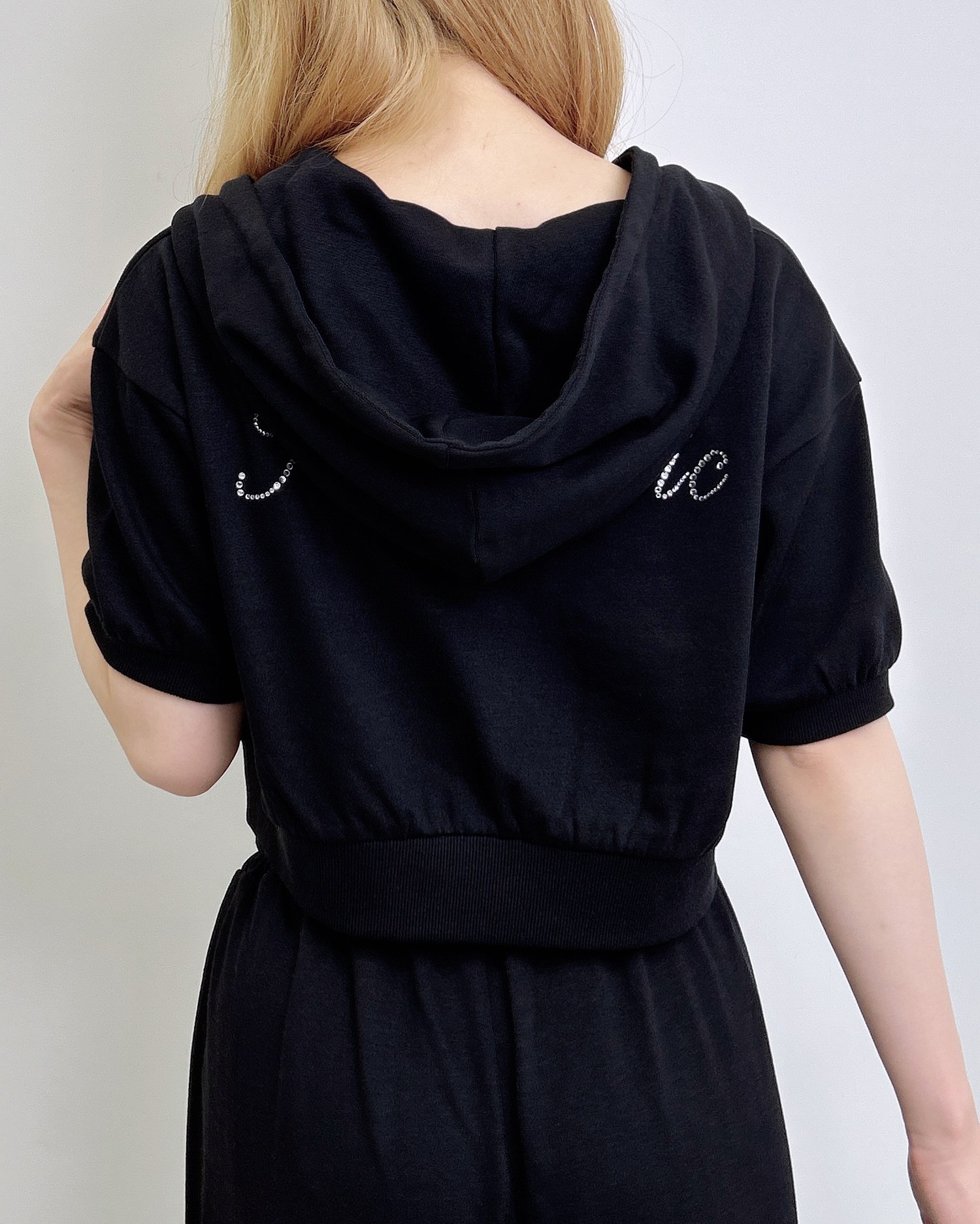 1261-100301 ラインストーンロゴミニスウェットジップパーカー