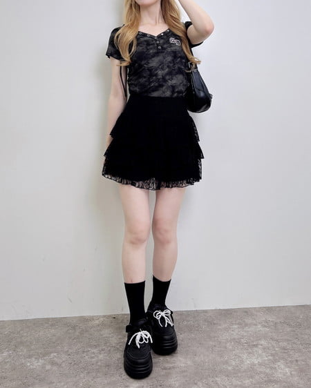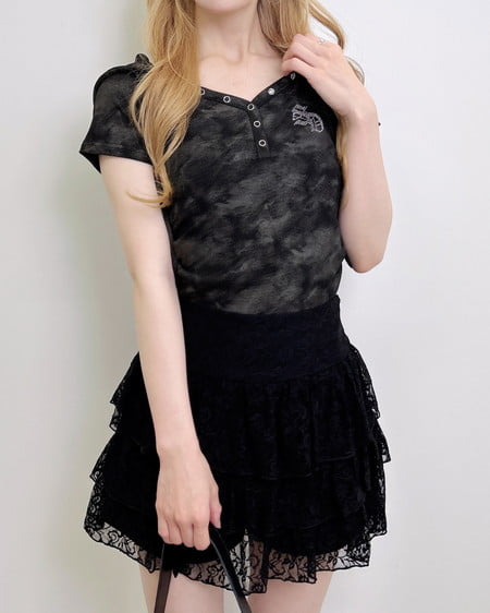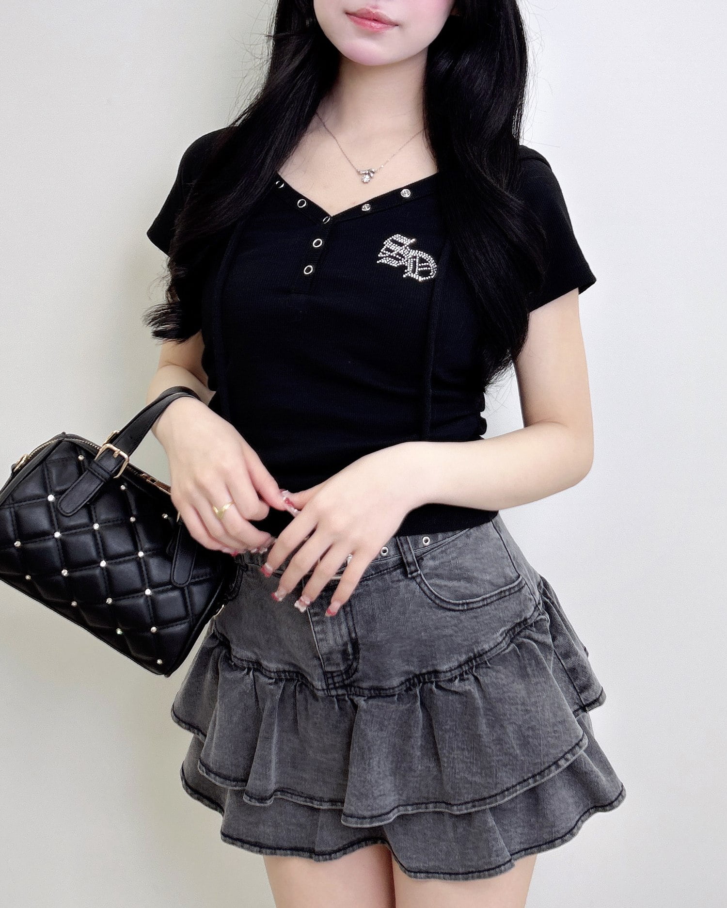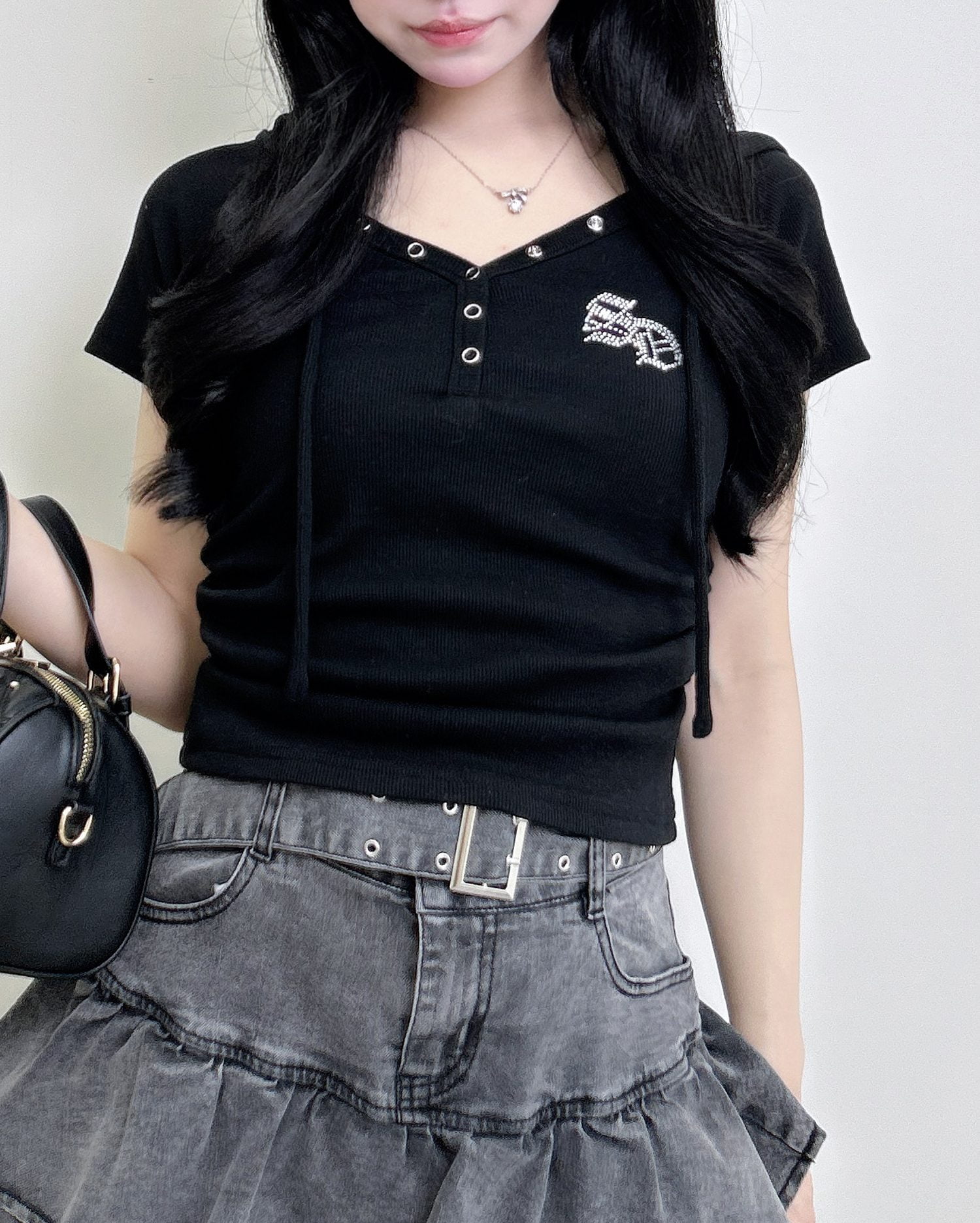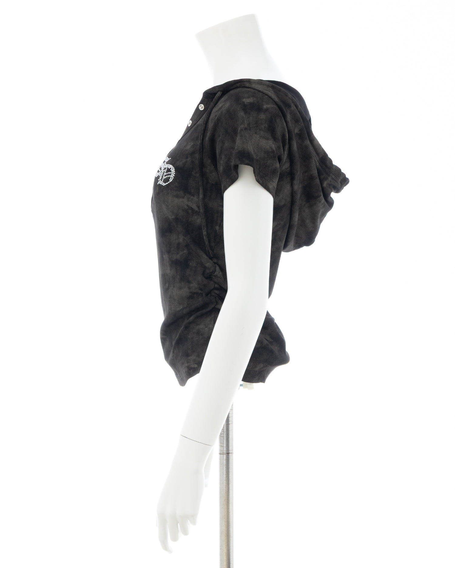 胸元にはラインストーンを敷き詰めたロゴがキラキラと輝きます。