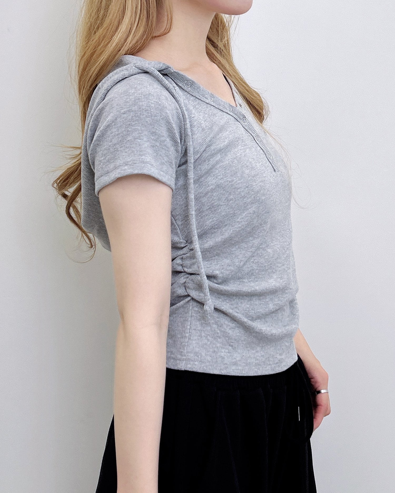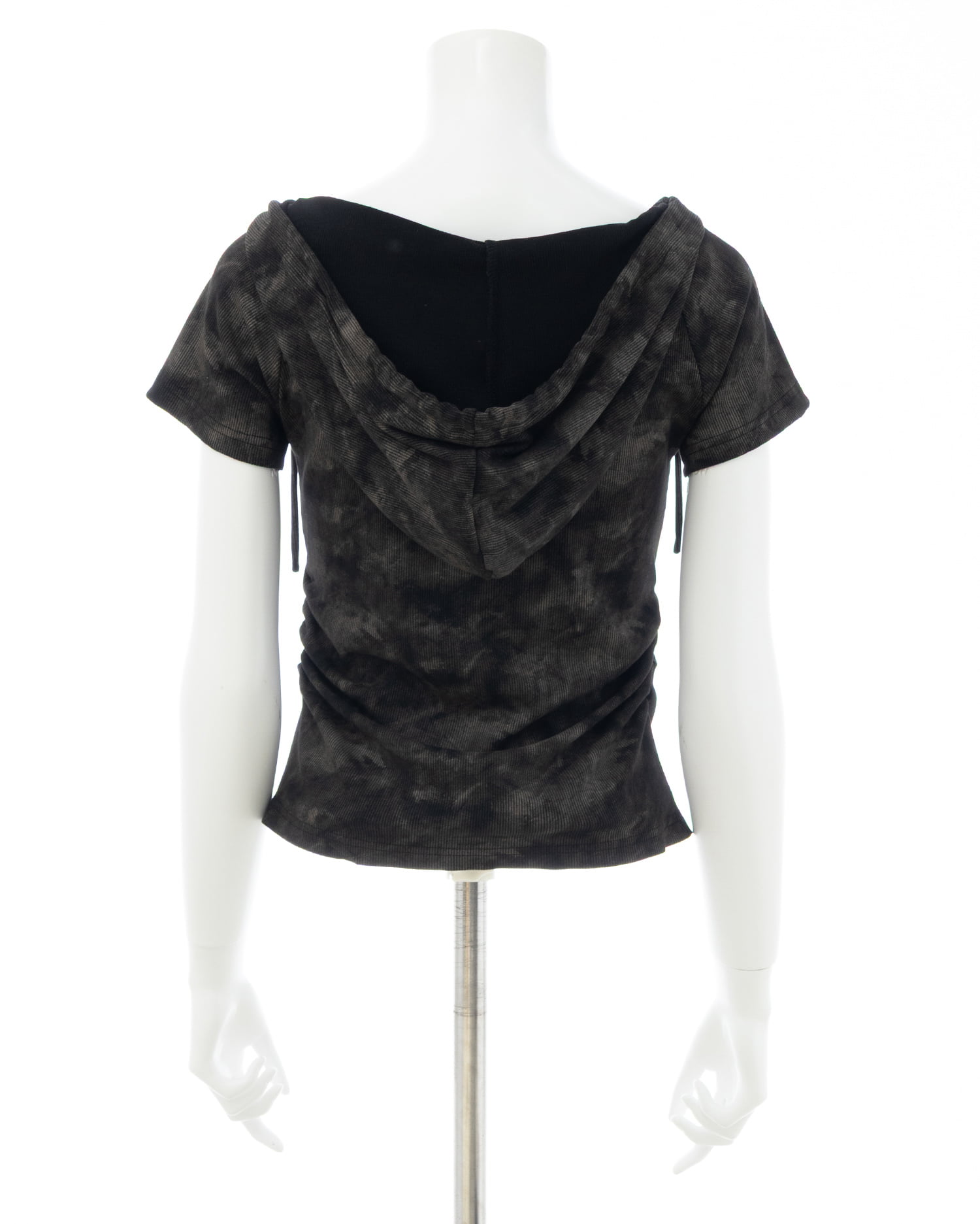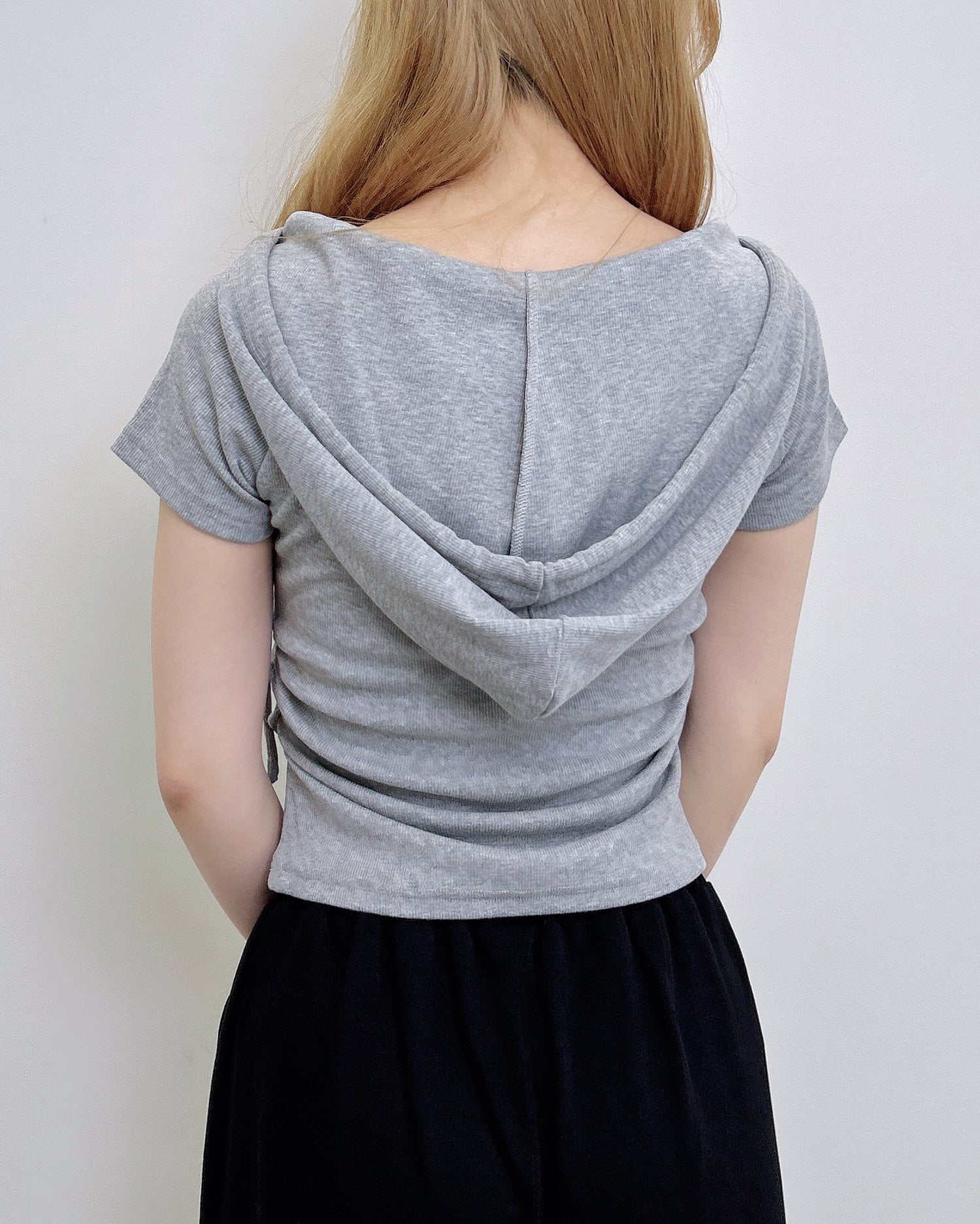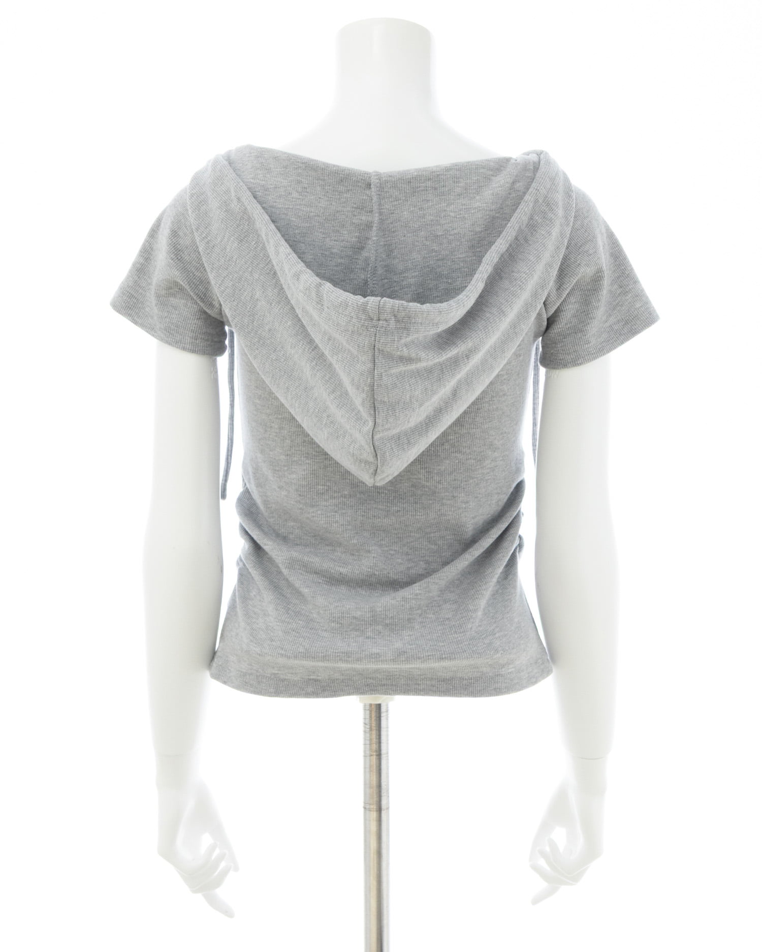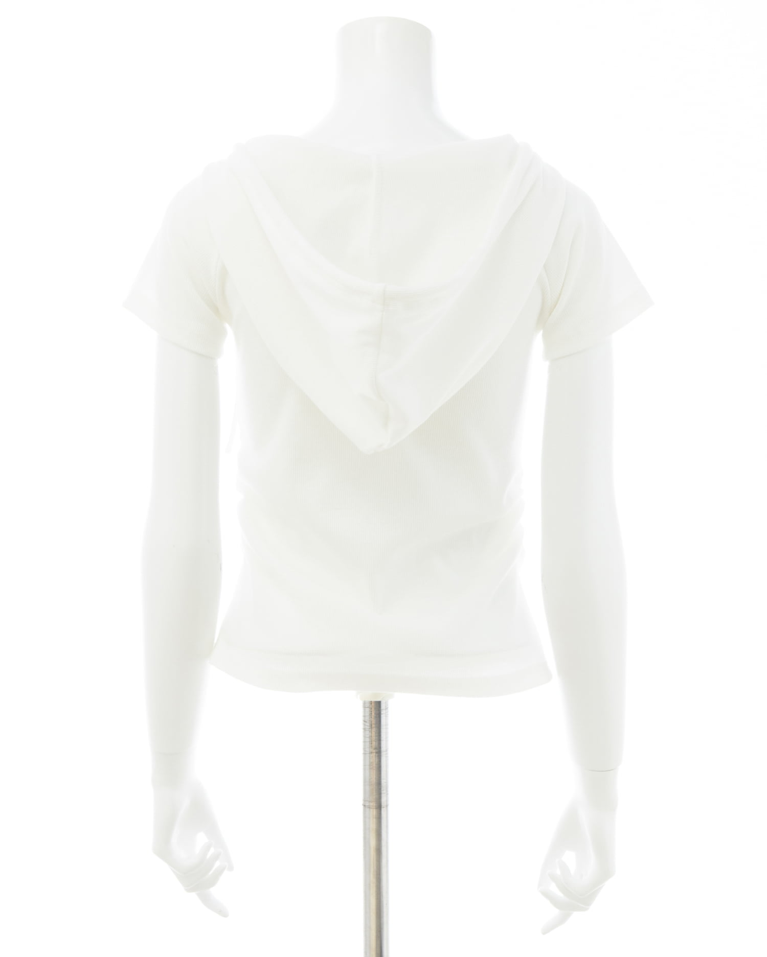 クール&カジュアルな着こなしへと導くフード付きのリブトップス。