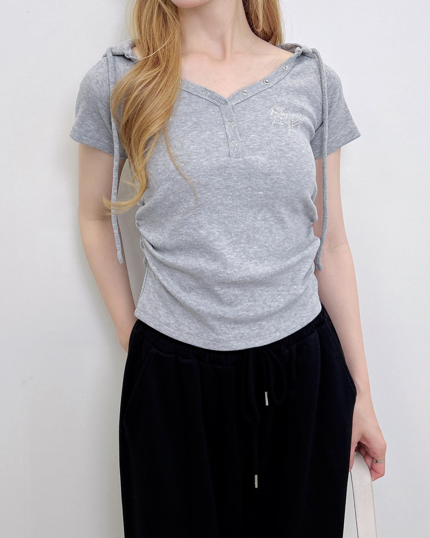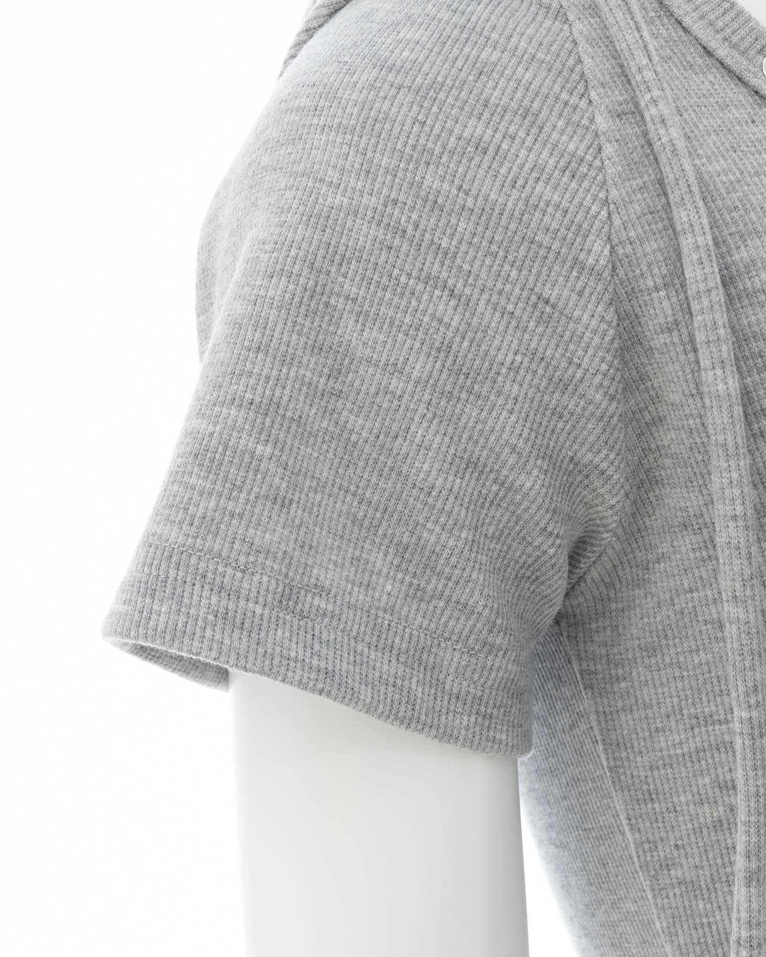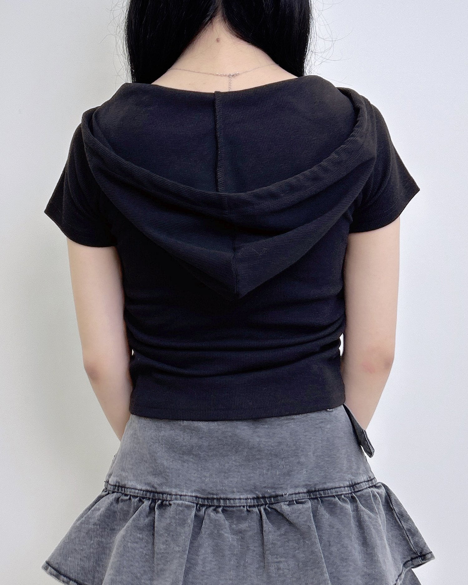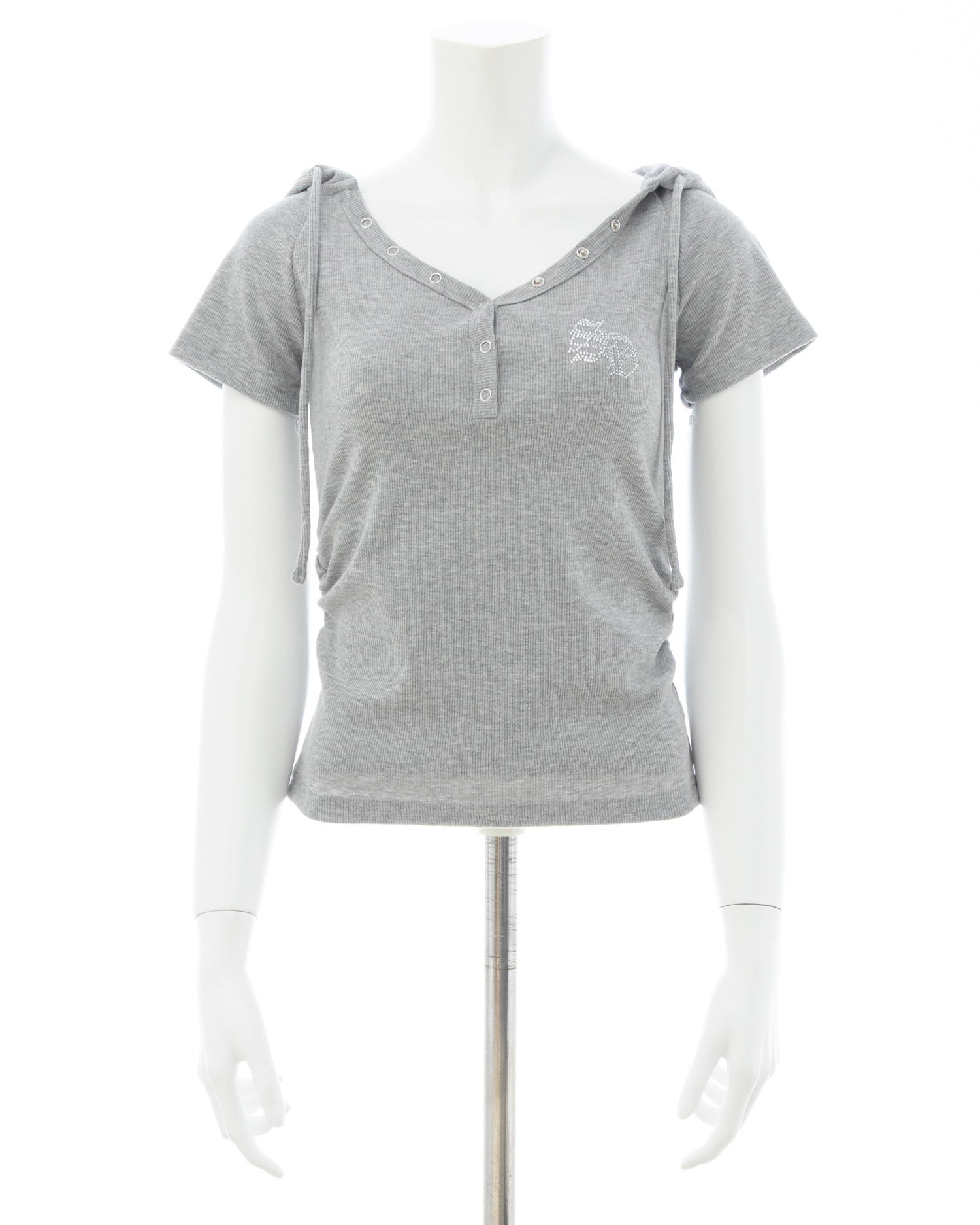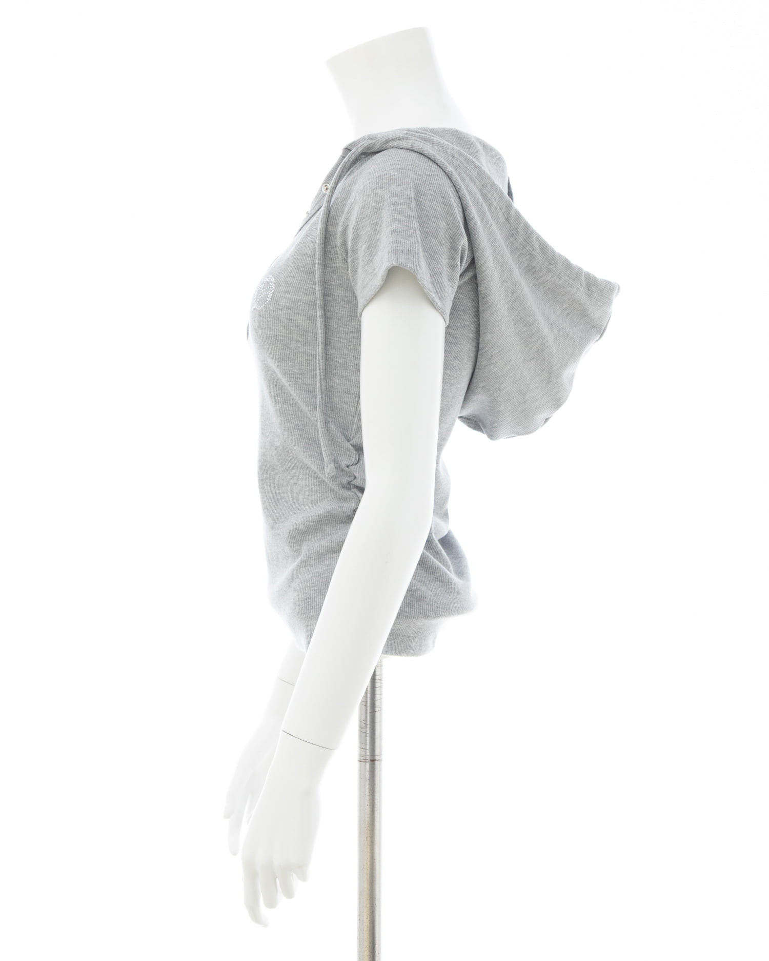 クール&カジュアルな着こなしへと導くフード付きのリブトップス。