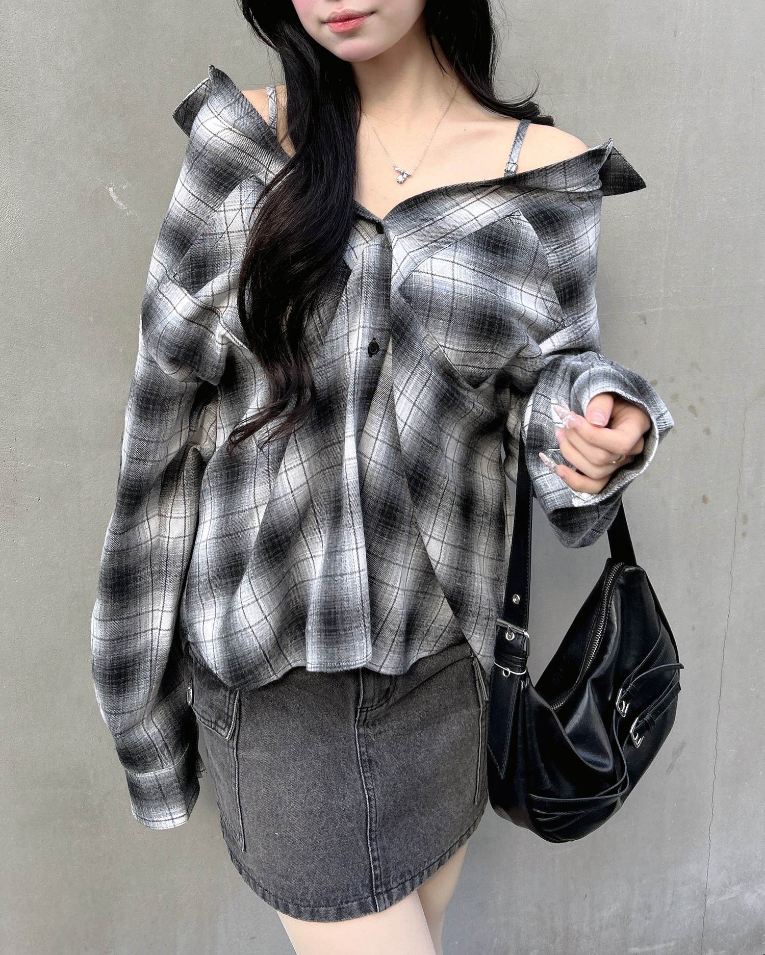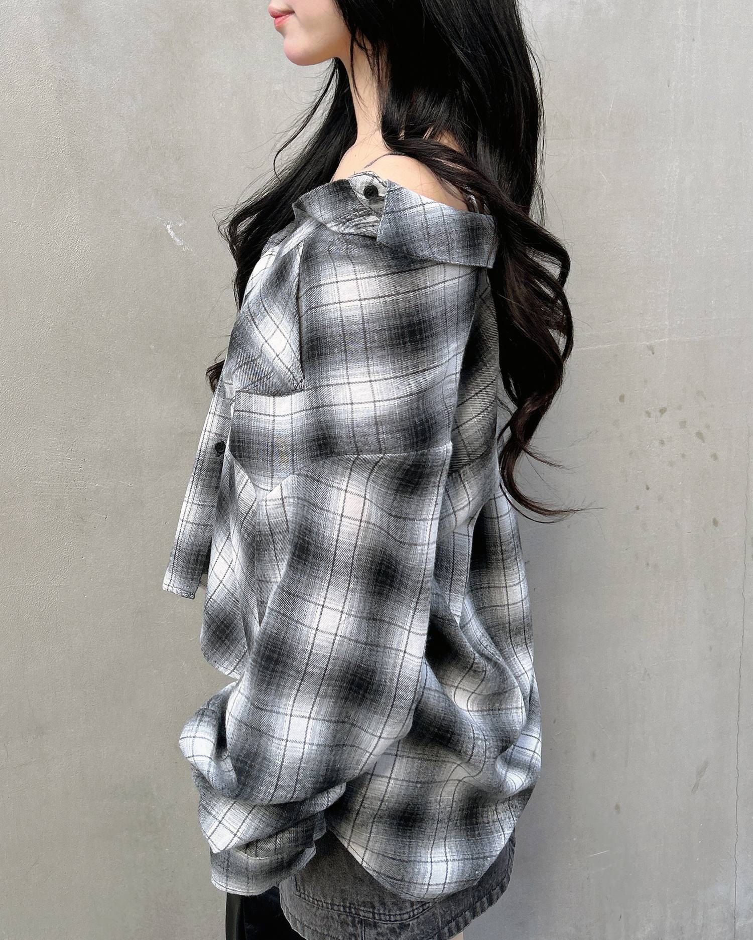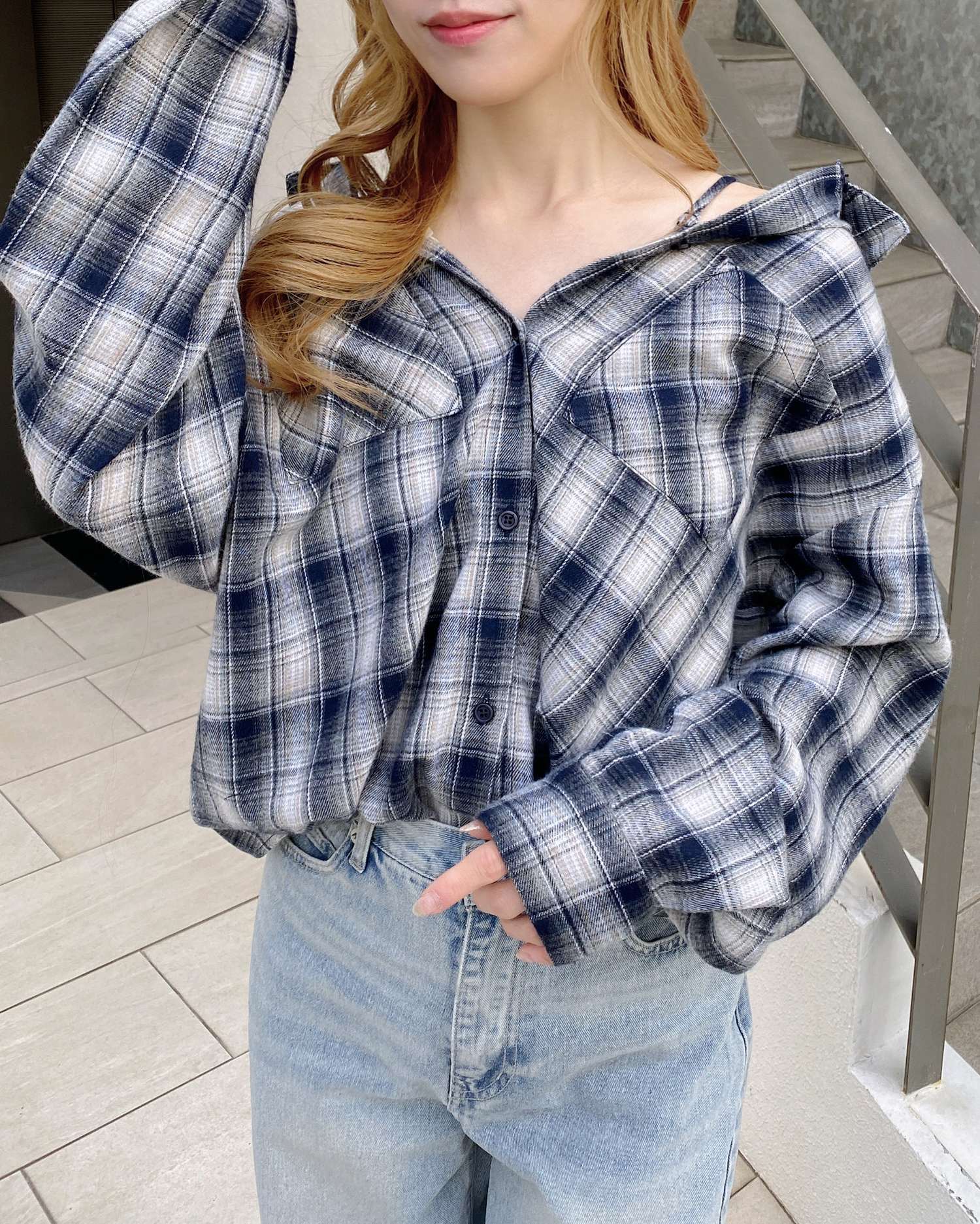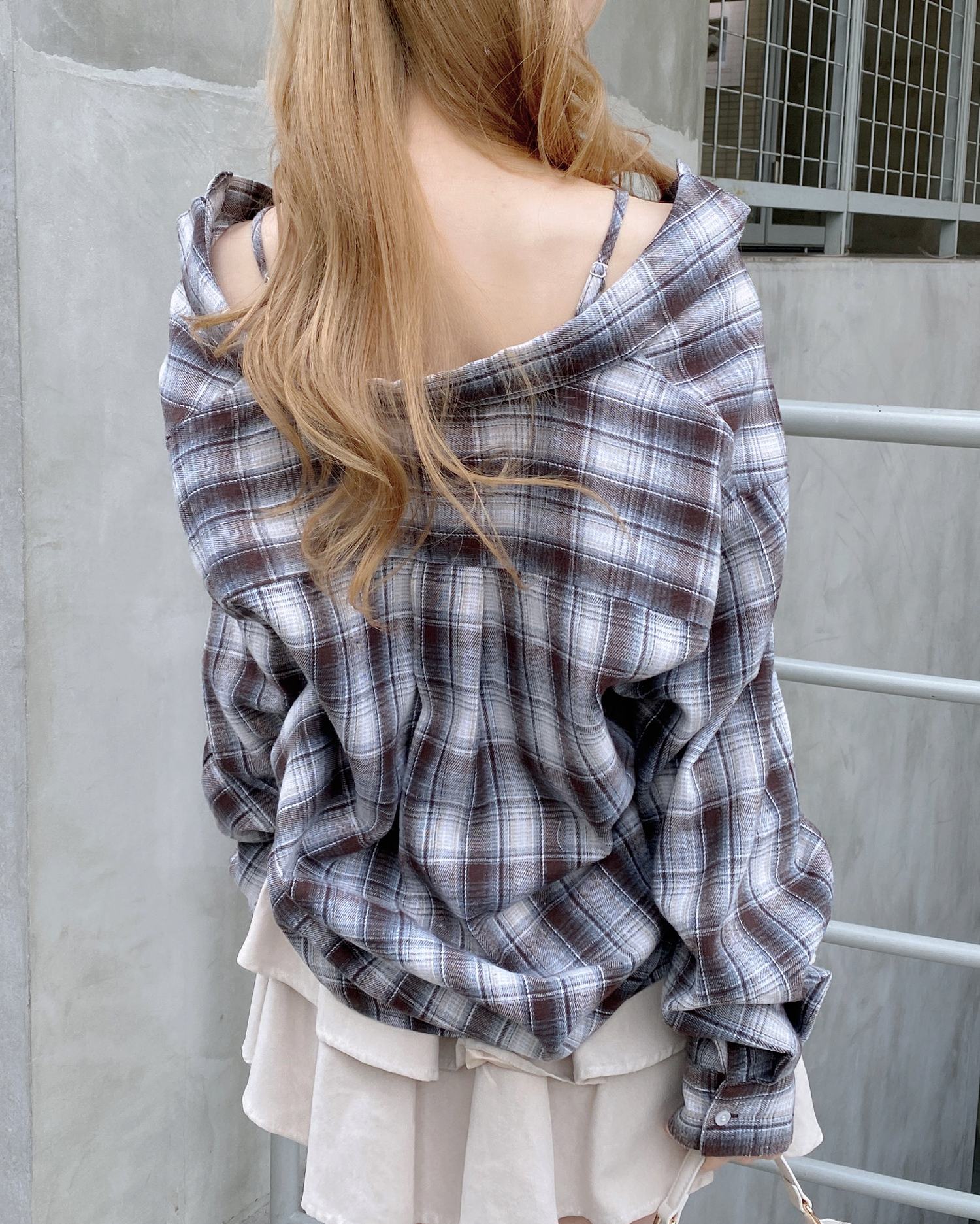 ボタンを開けてオフショルダーにしても楽しめる2Wayデザインのシャツです。
