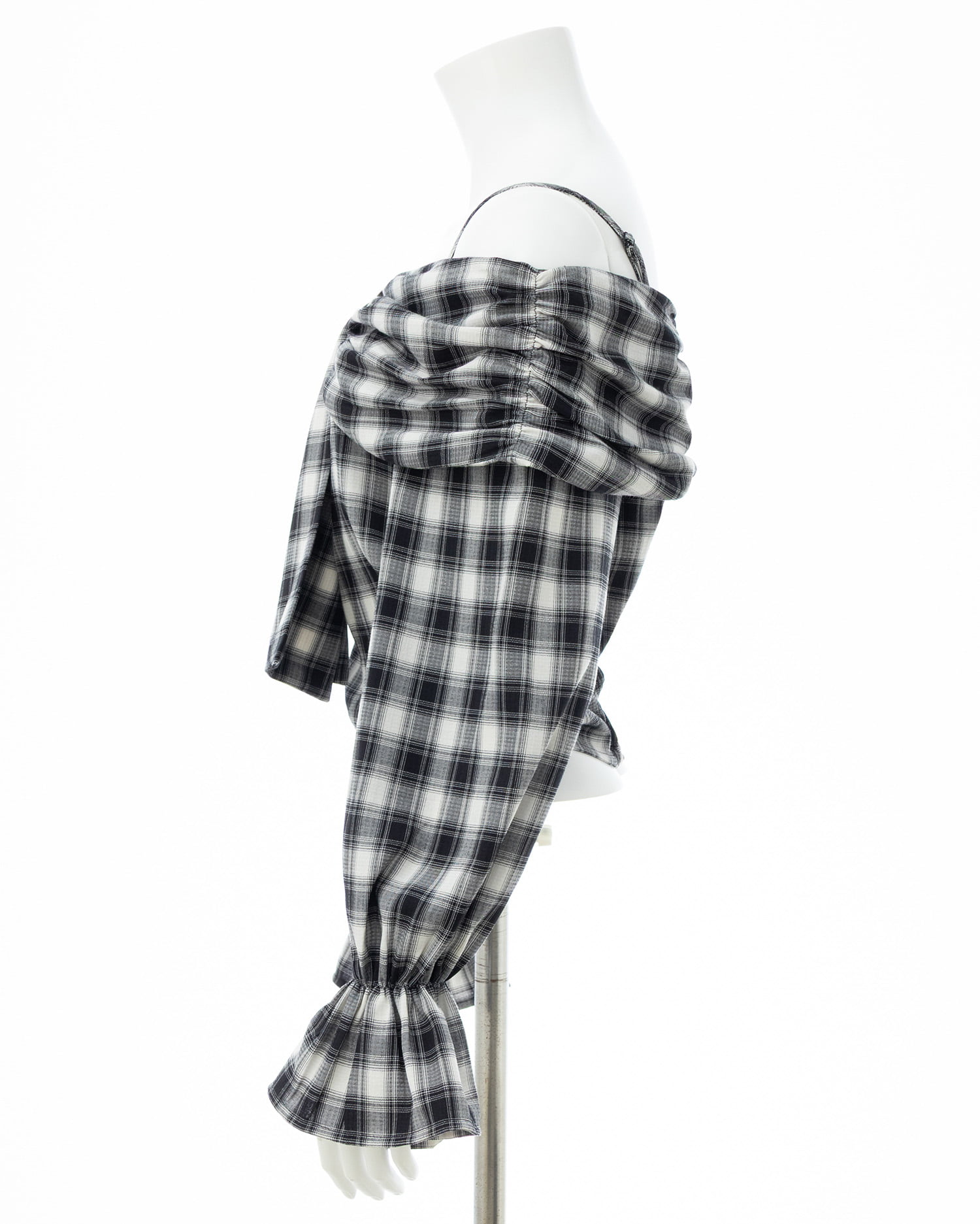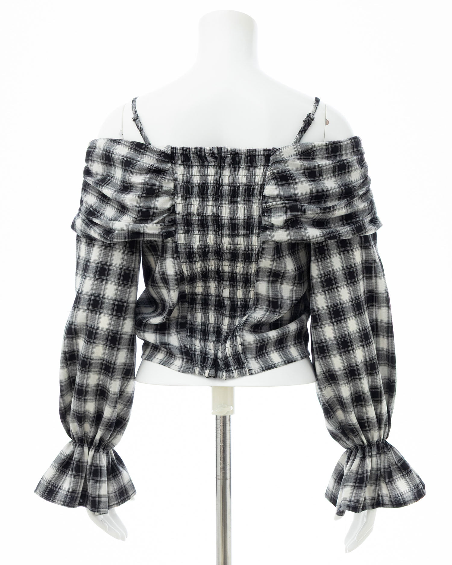 オフショルデザインでトレンドのレディコーデが完成するブラウスです。