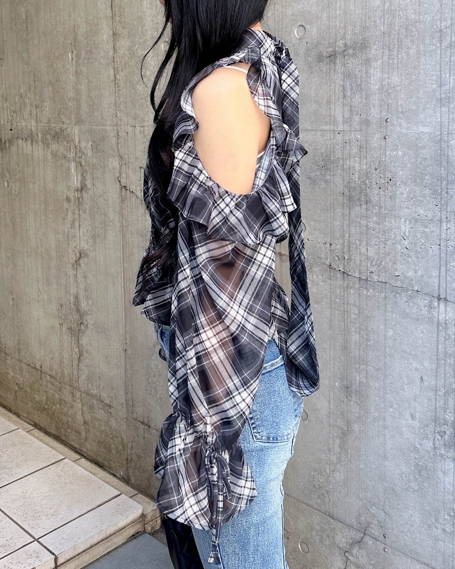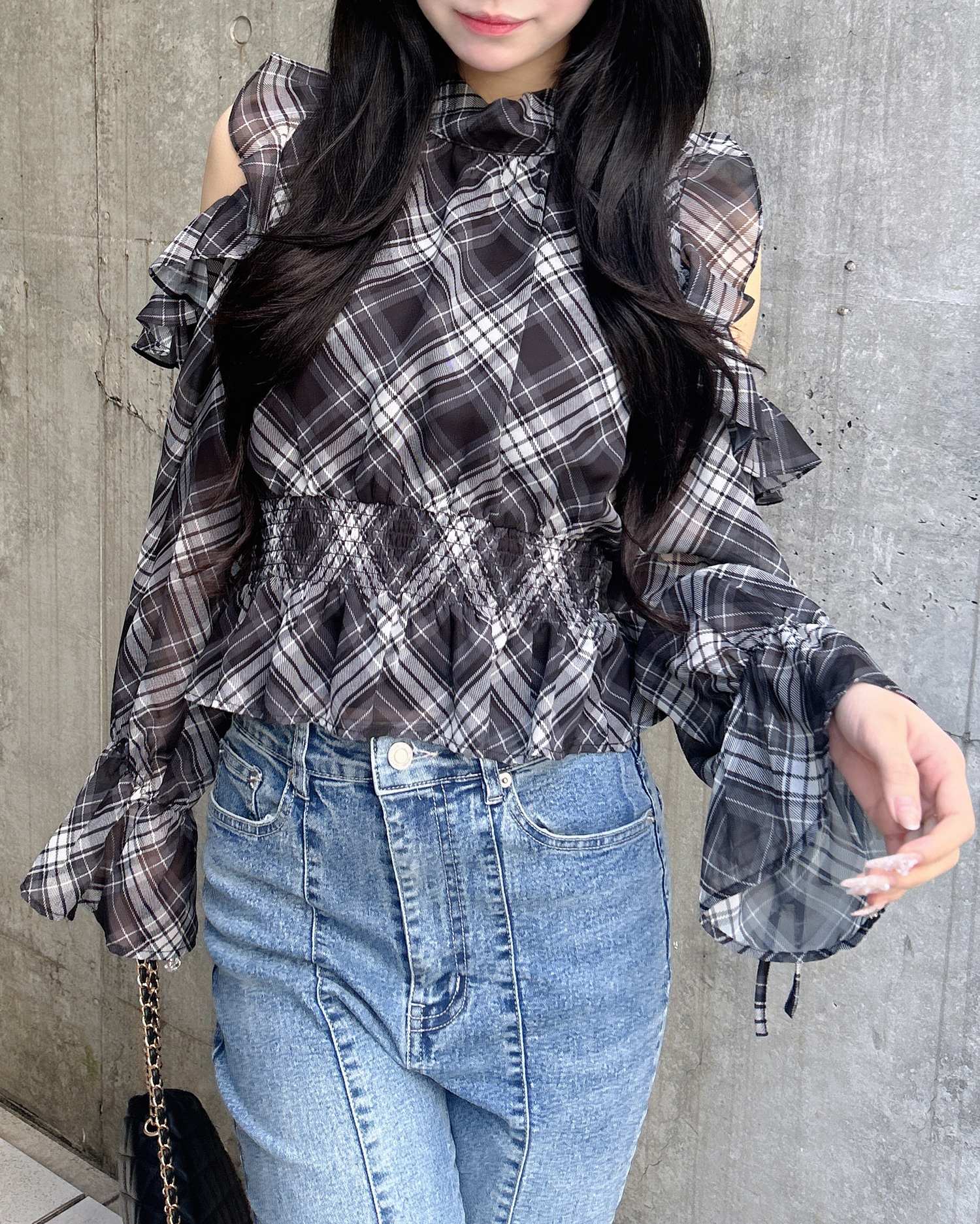 オープンショルダーでヘルシーな肌見せが叶うブラウスです。