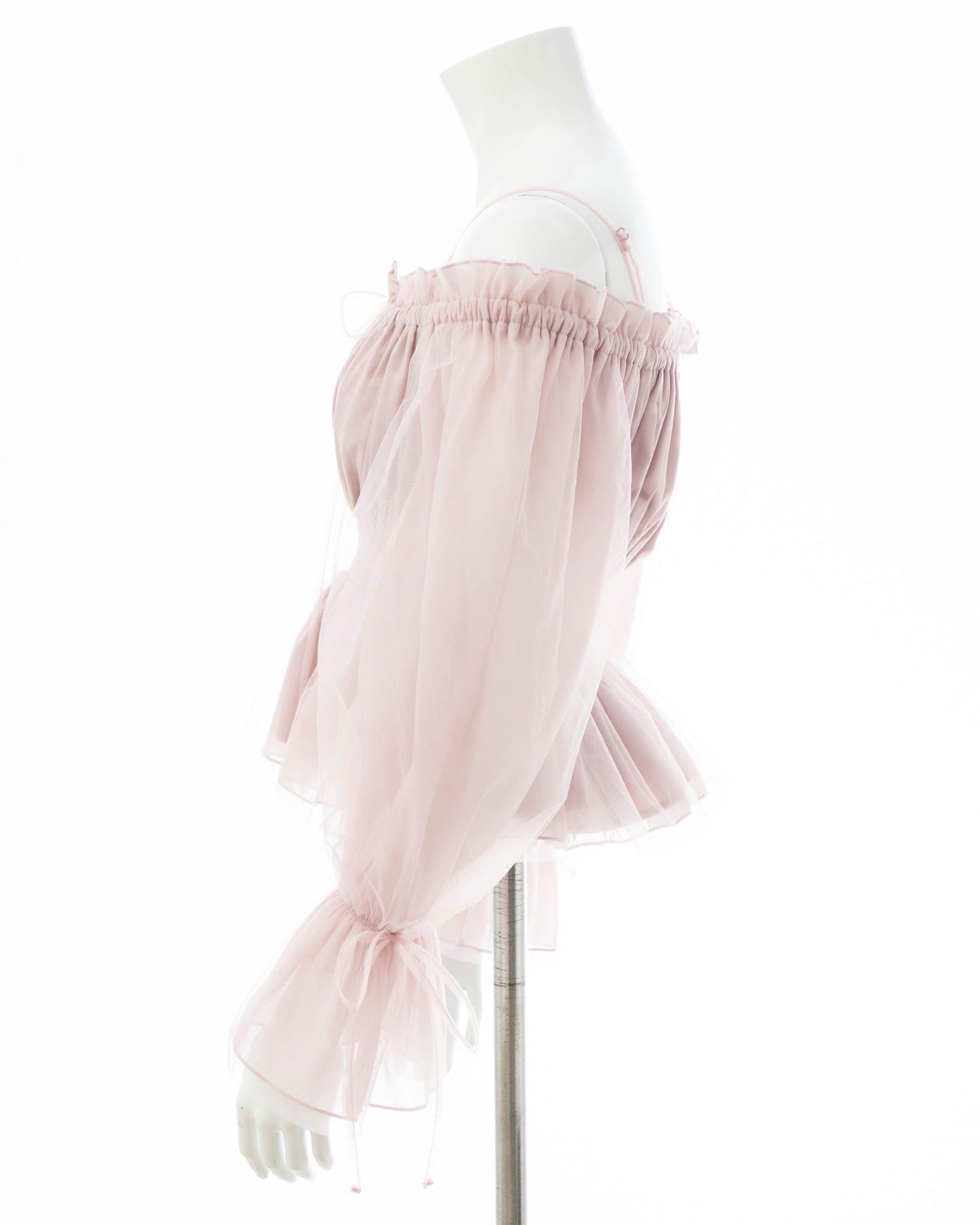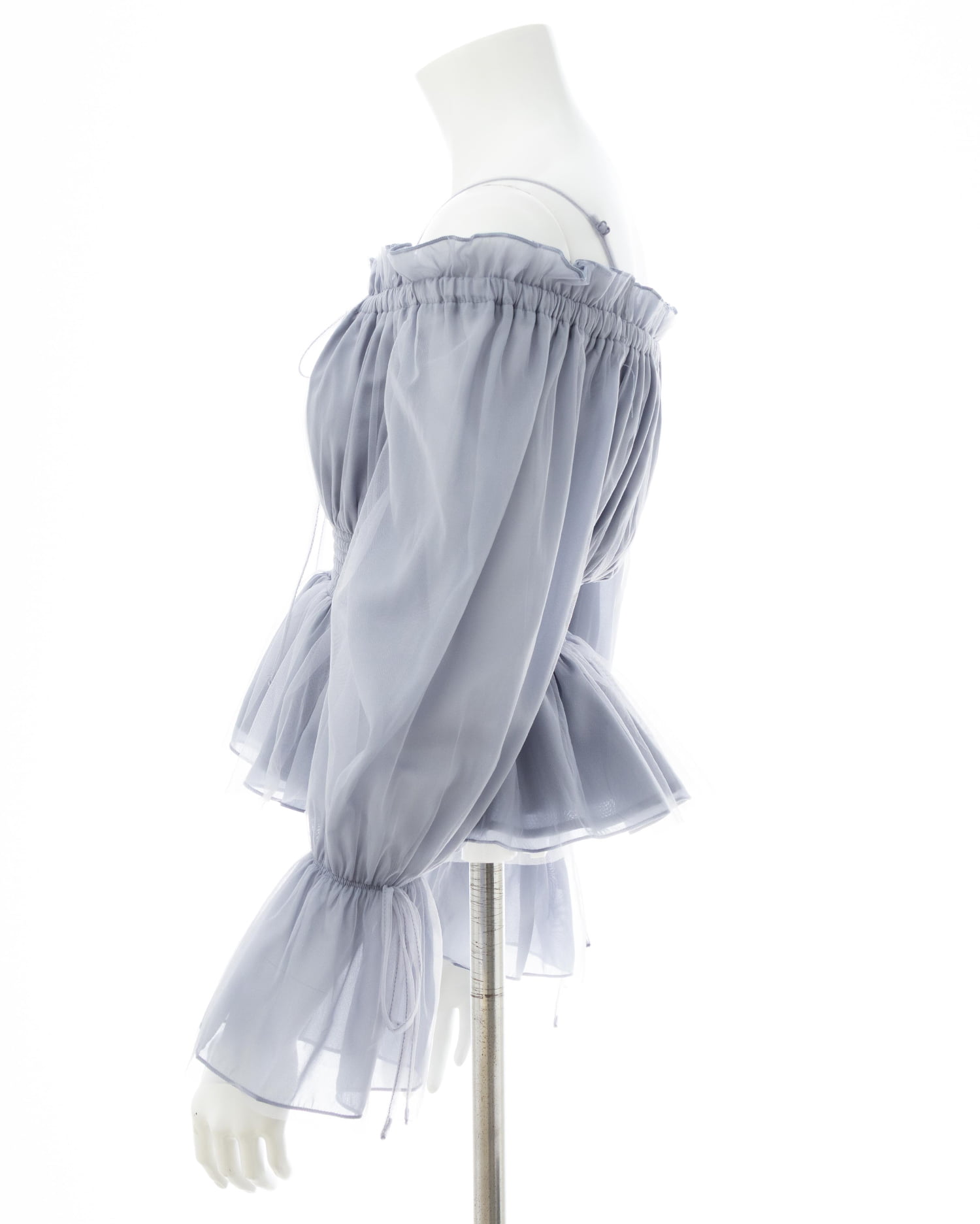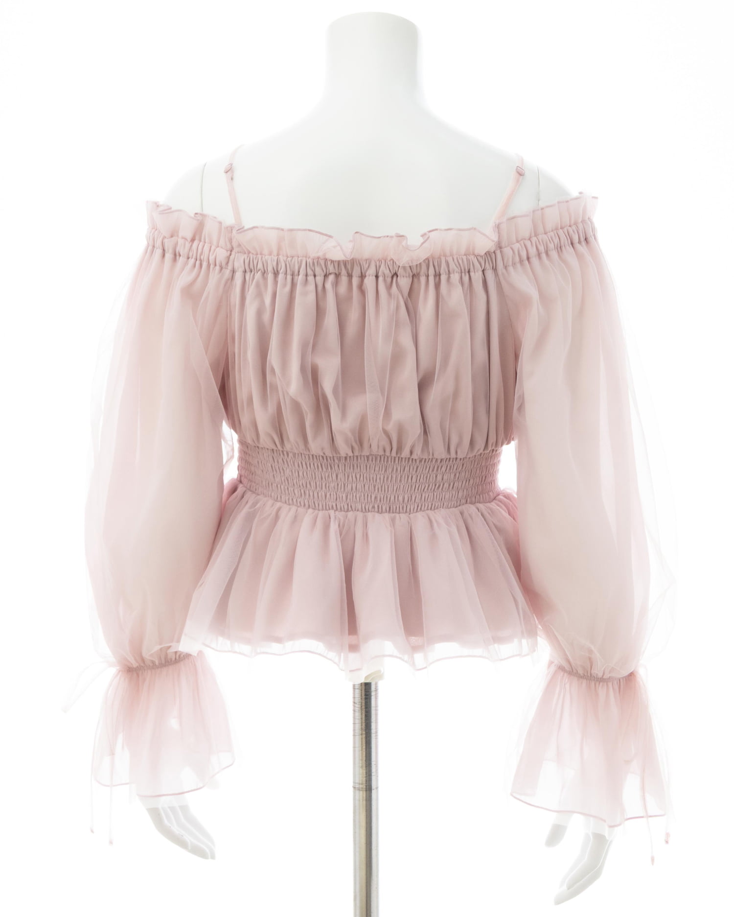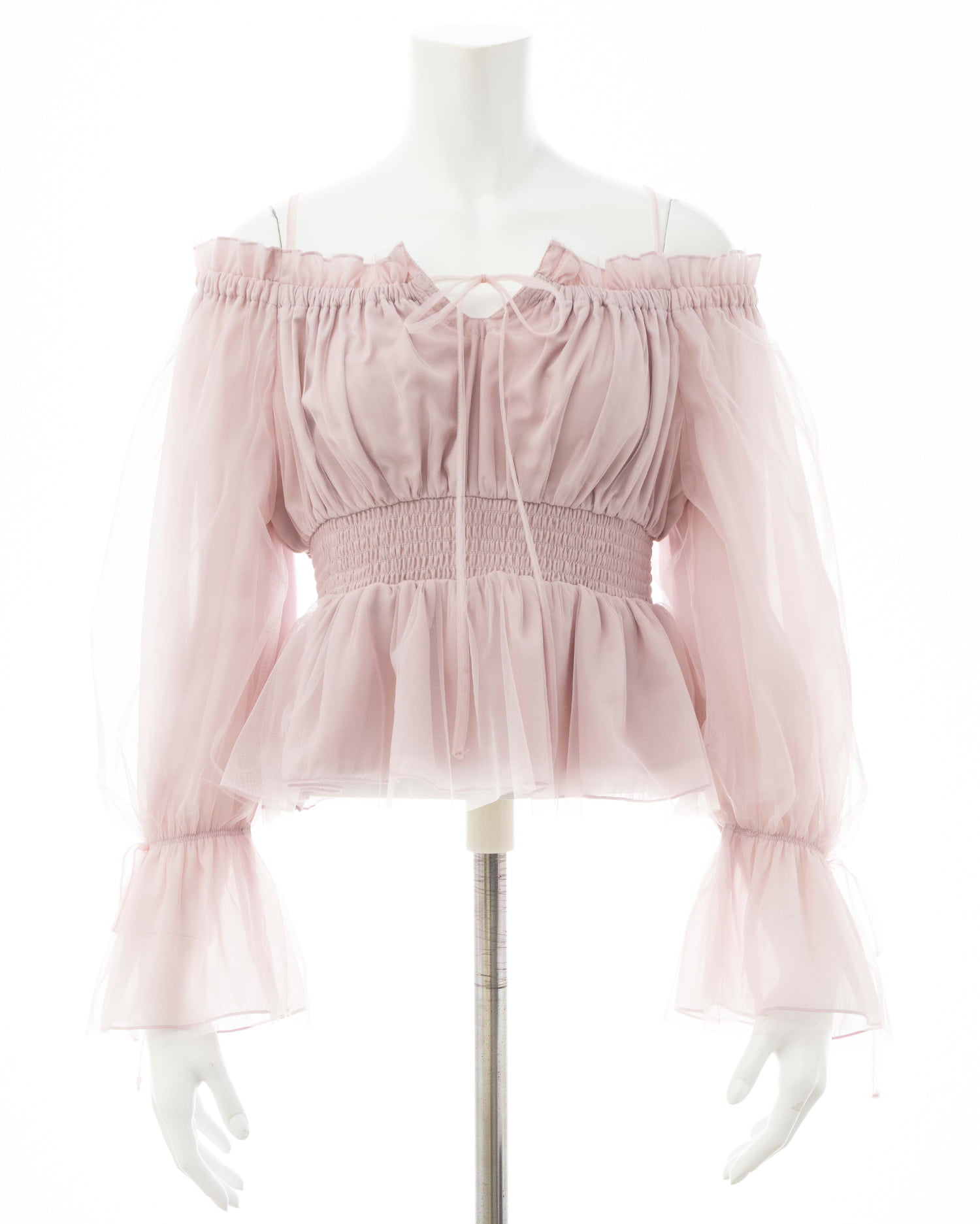 オフショルダー&チュールで軽やかに着こなせるブラウス。