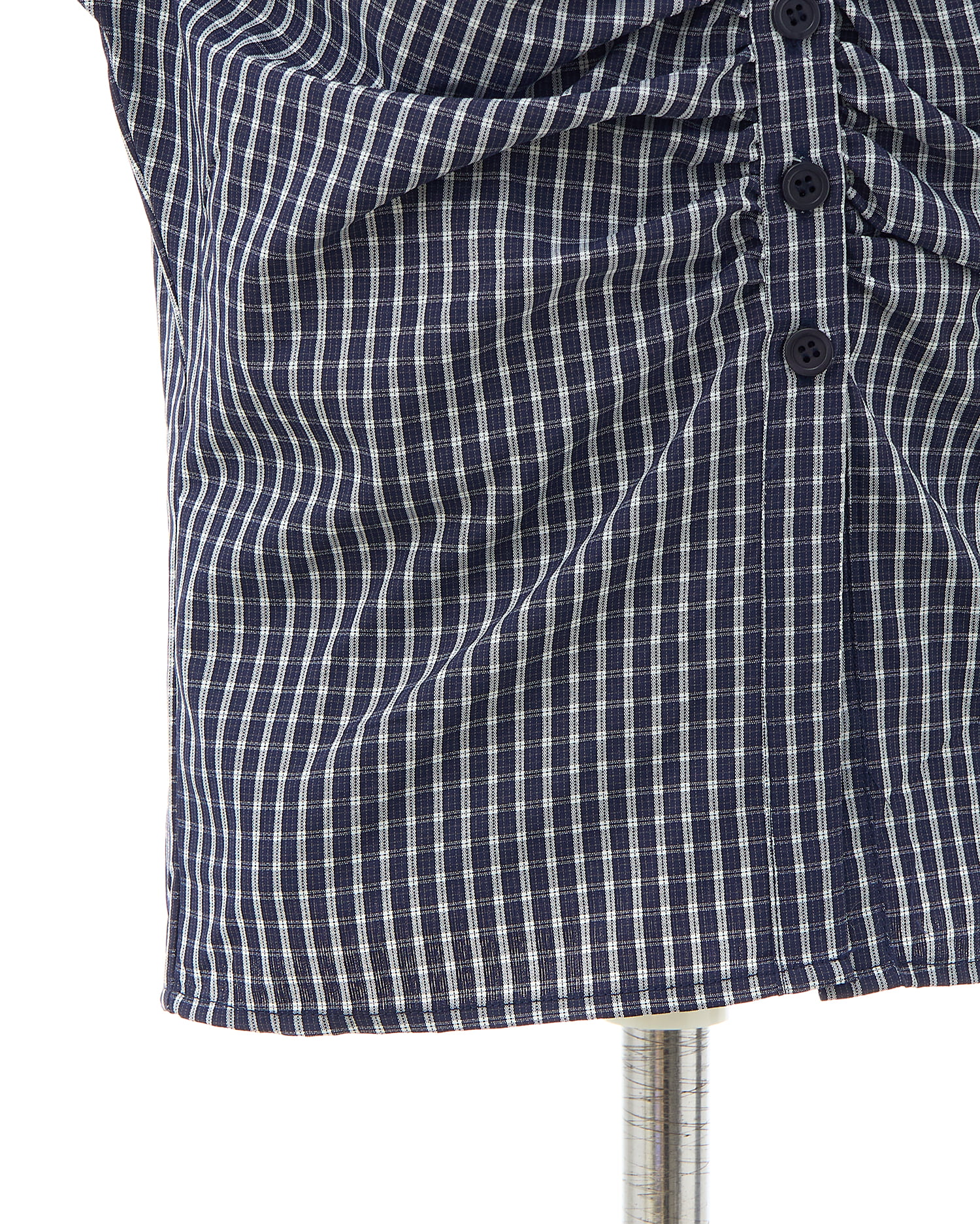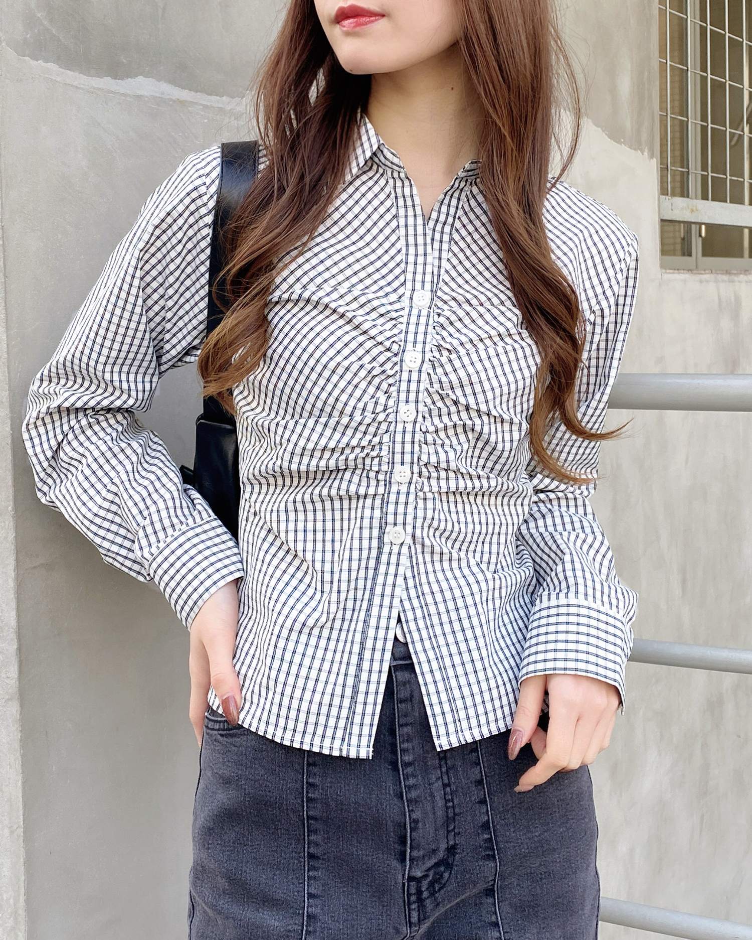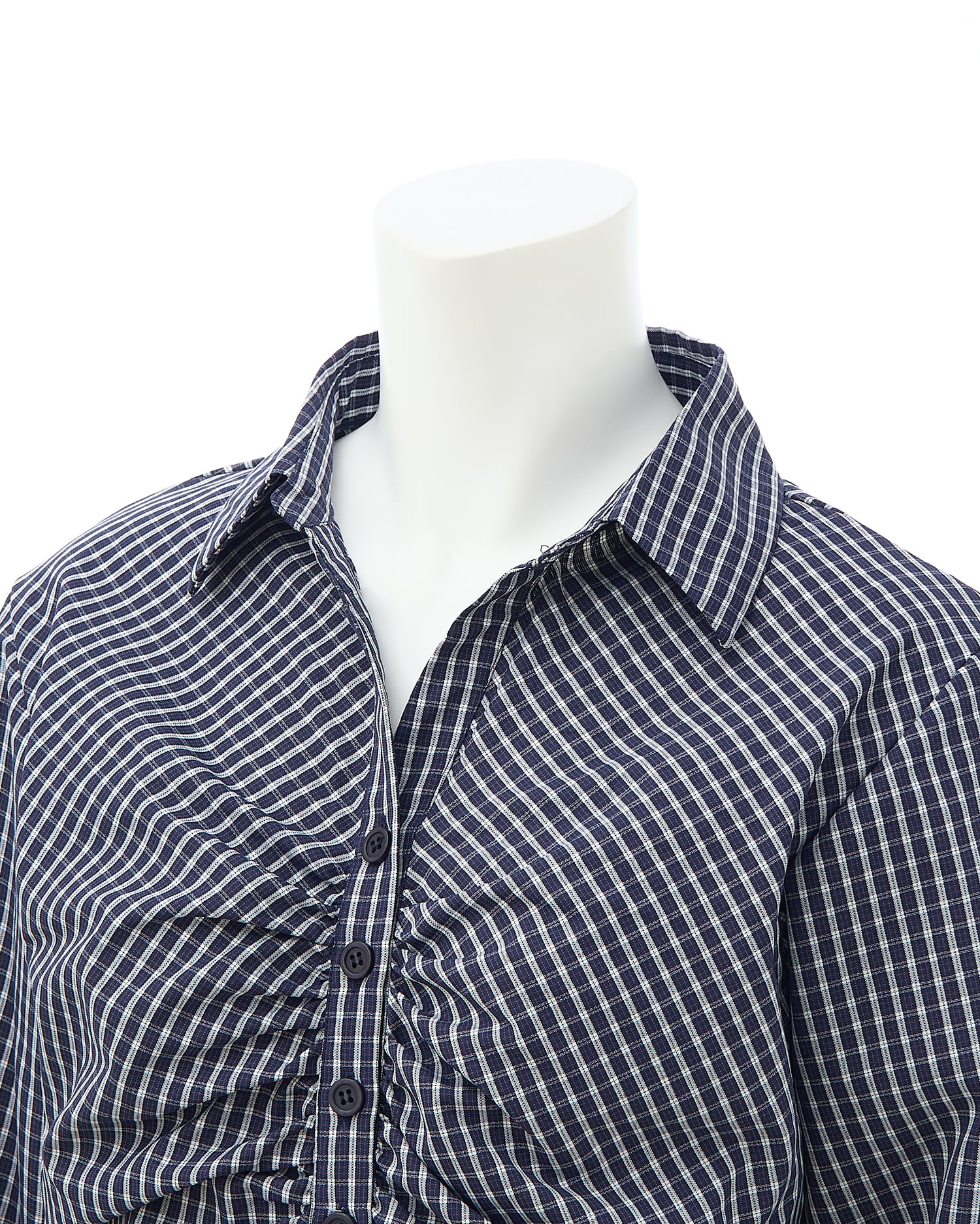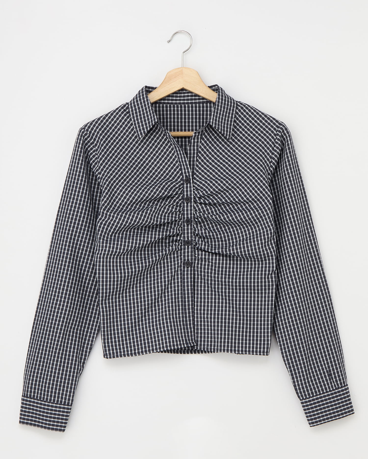 胸元のギャザーでメリハリシルエットに仕上げたシャツ。