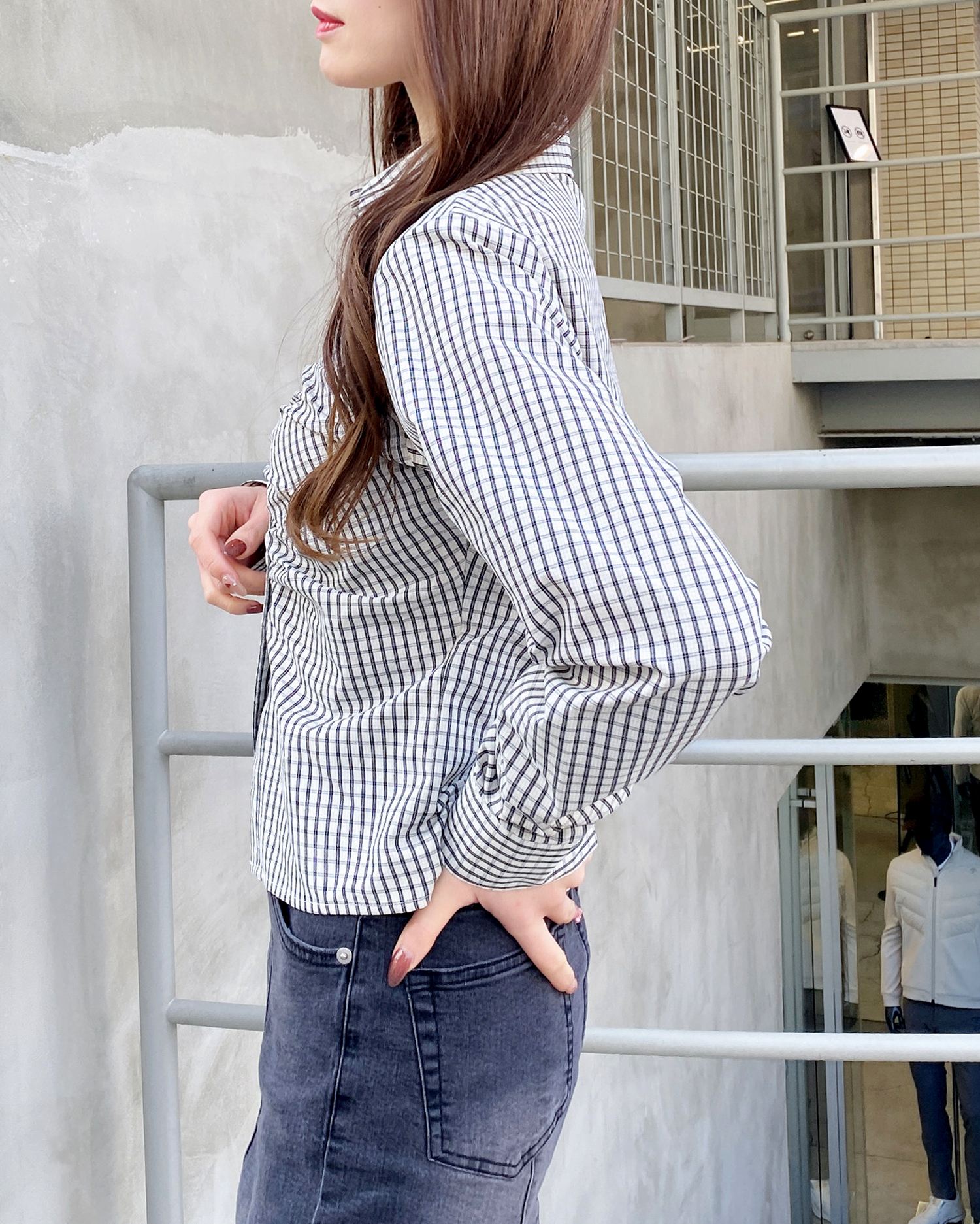 トレンドのクロップド丈でバランス良く合わせられます。