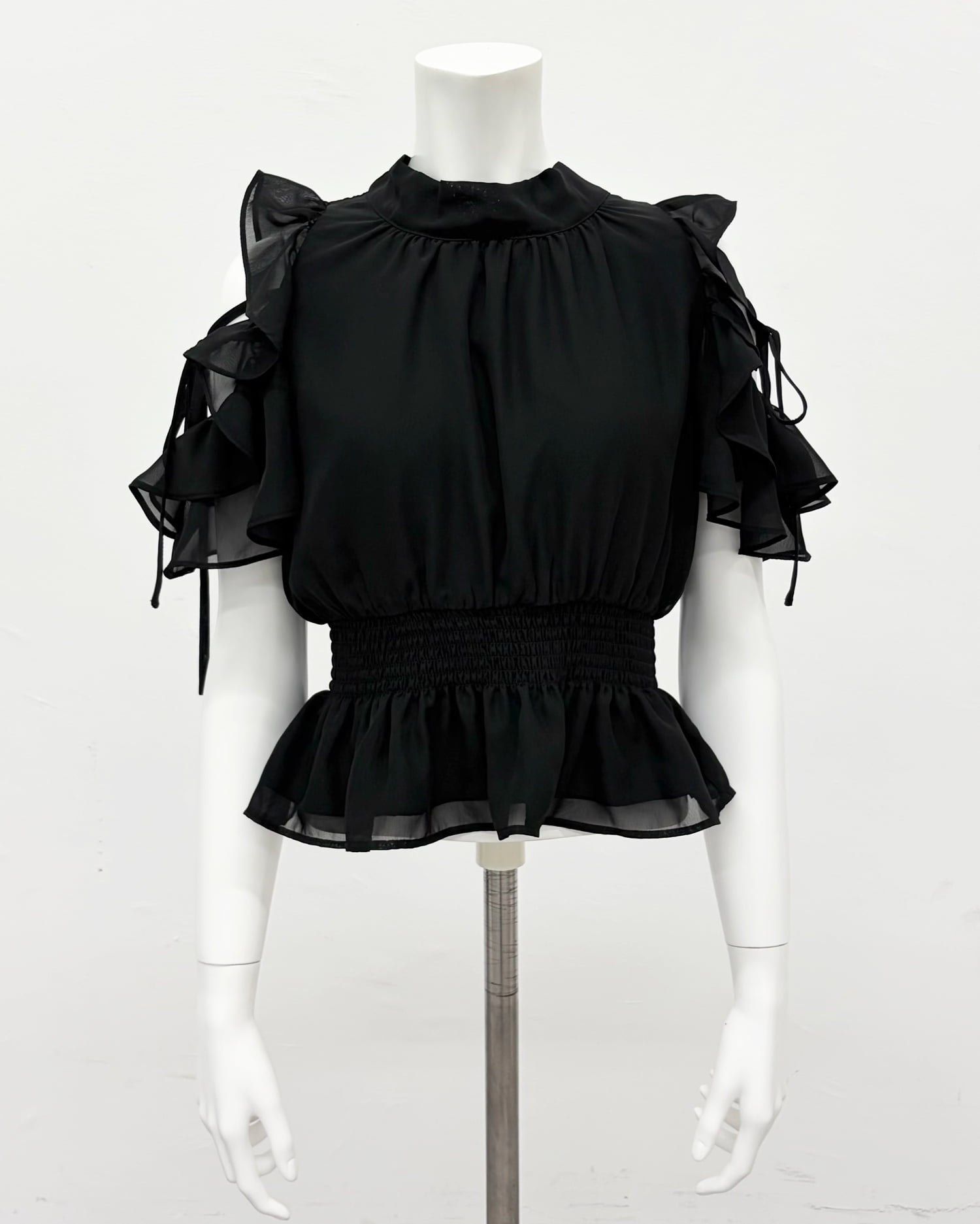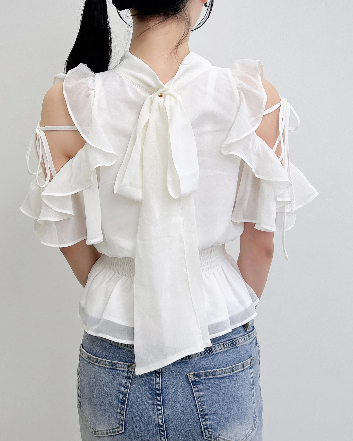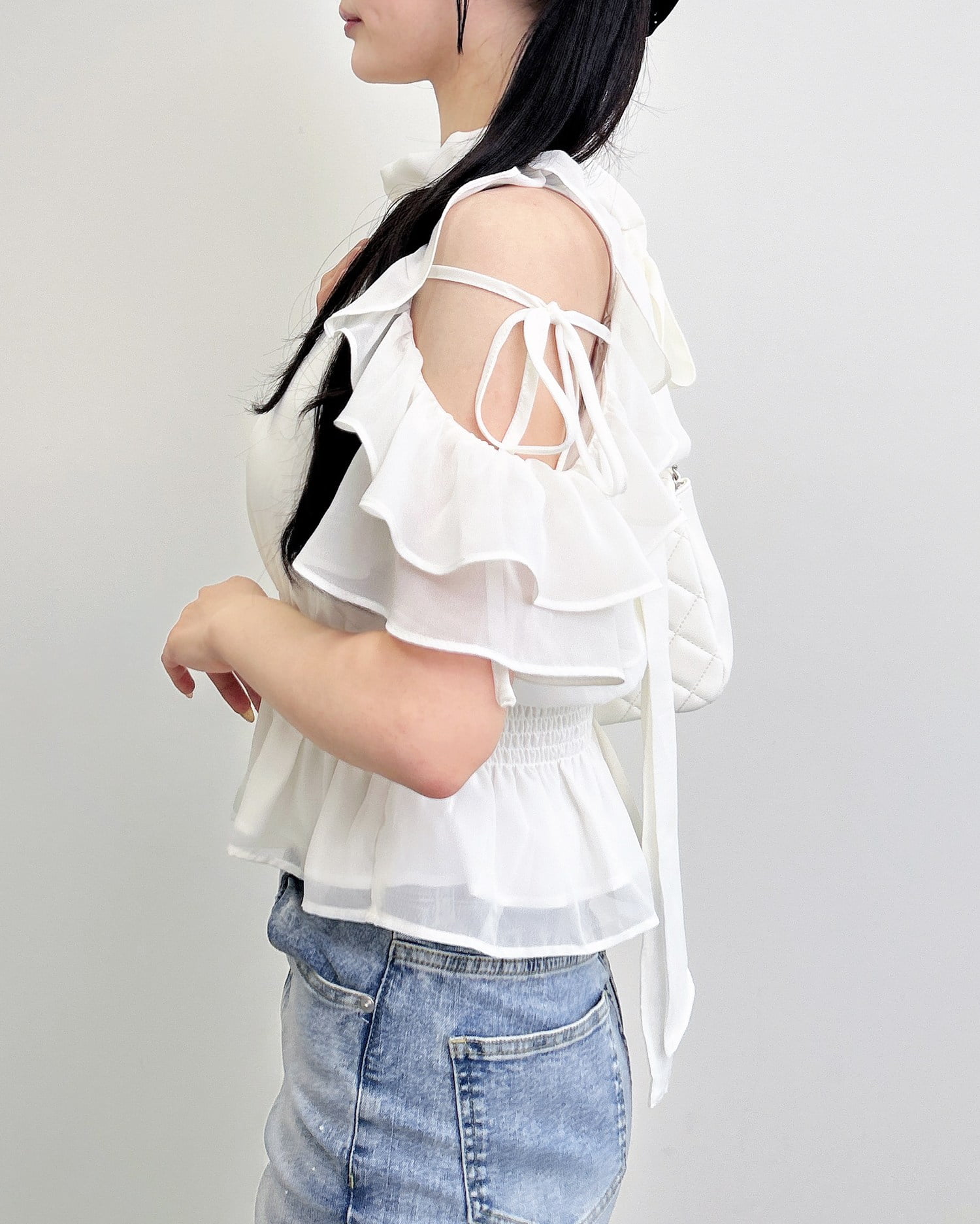 【1261-200263 アソート2Wayリボン肩あきフリル半袖ブラウス】