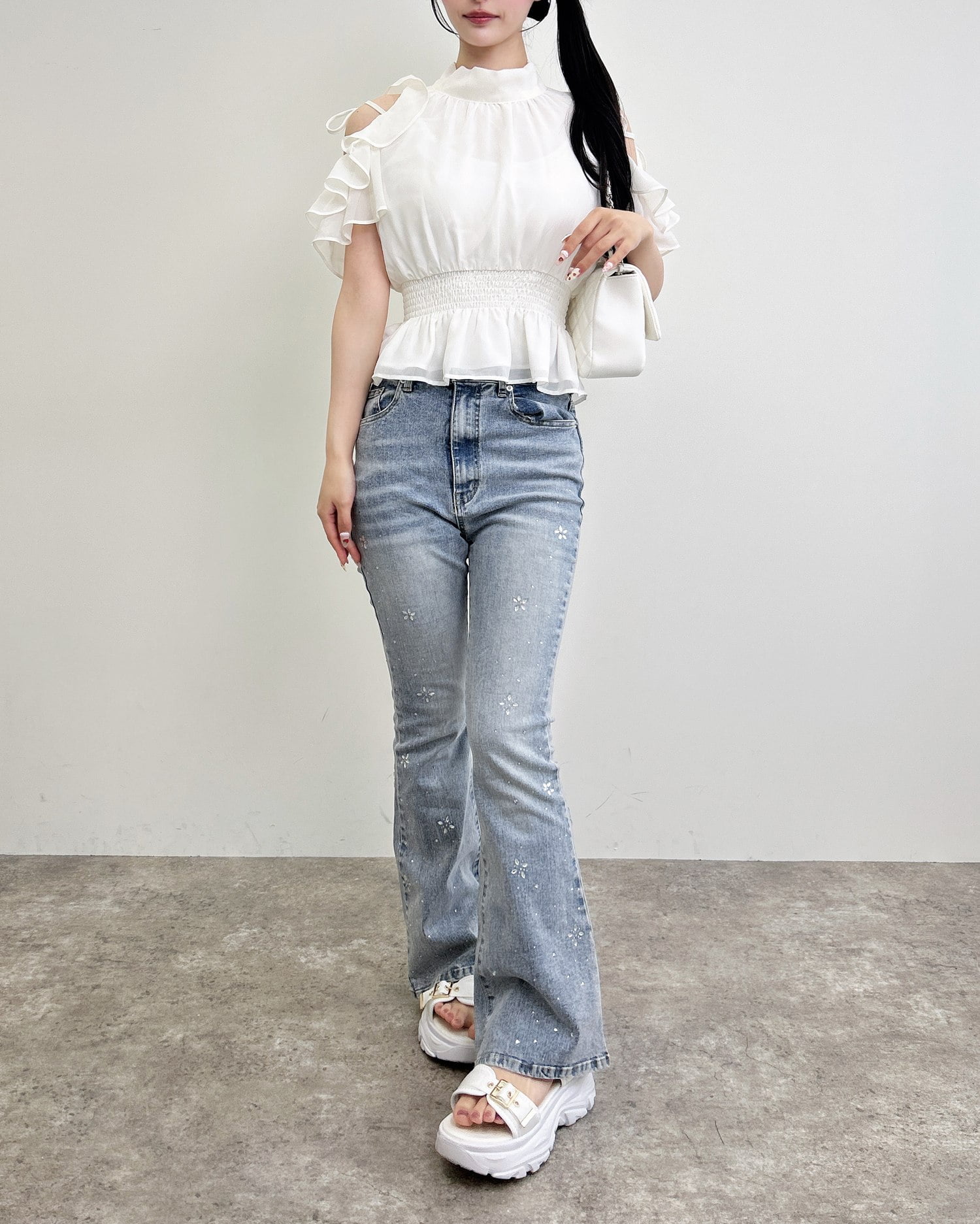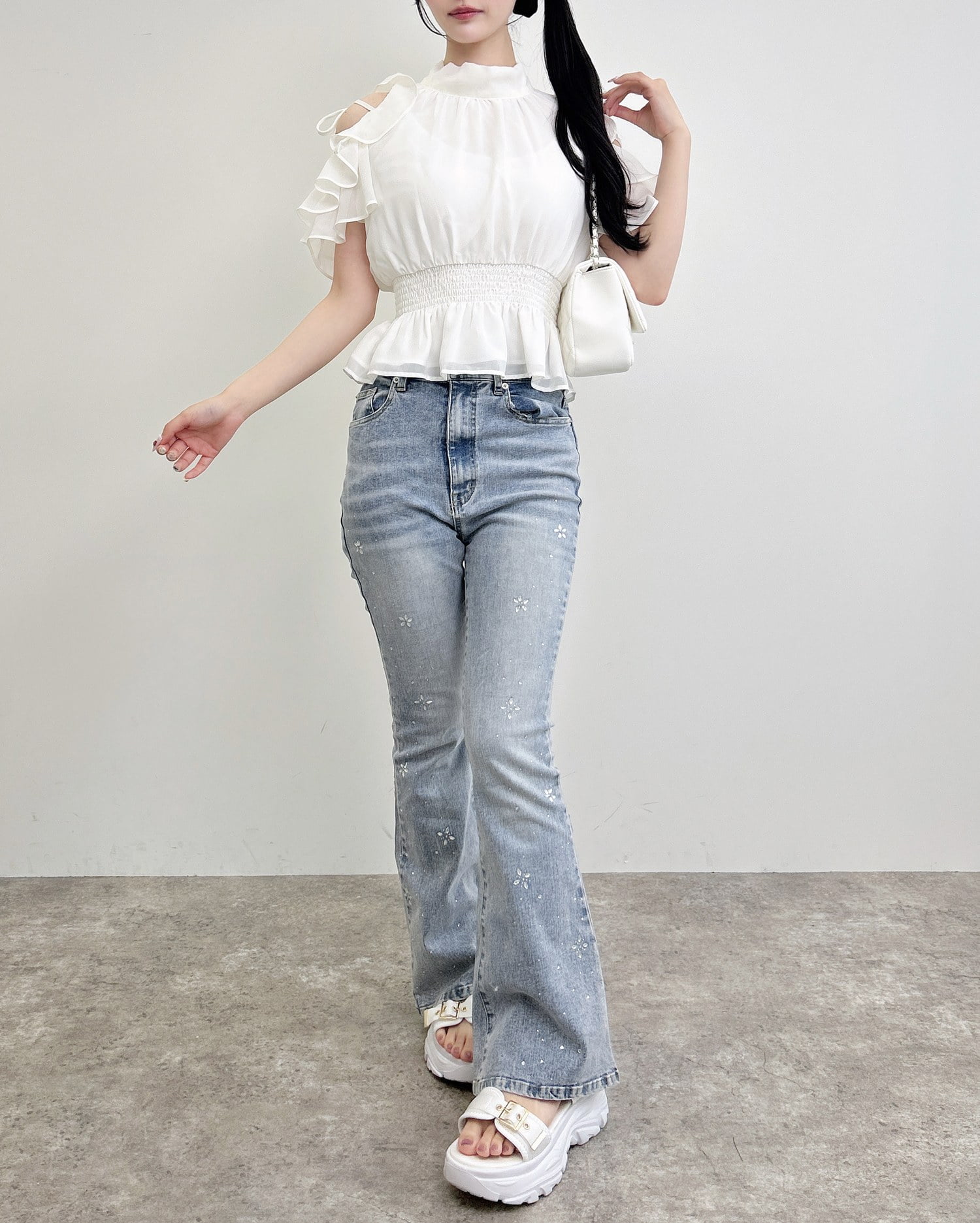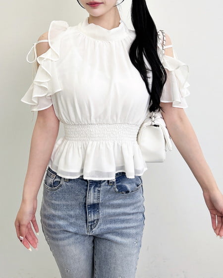 【1261-200263 アソート2Wayリボン肩あきフリル半袖ブラウス】
