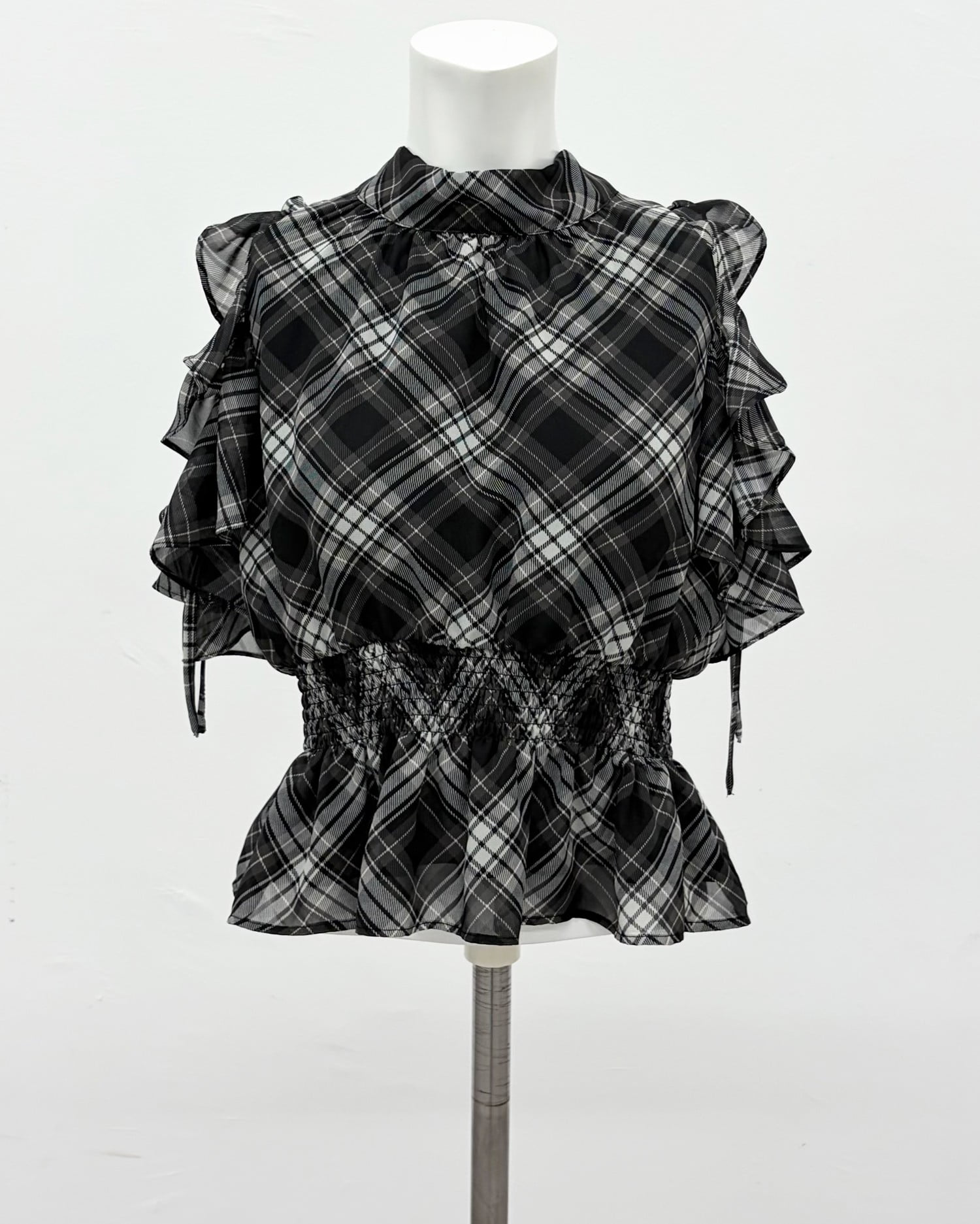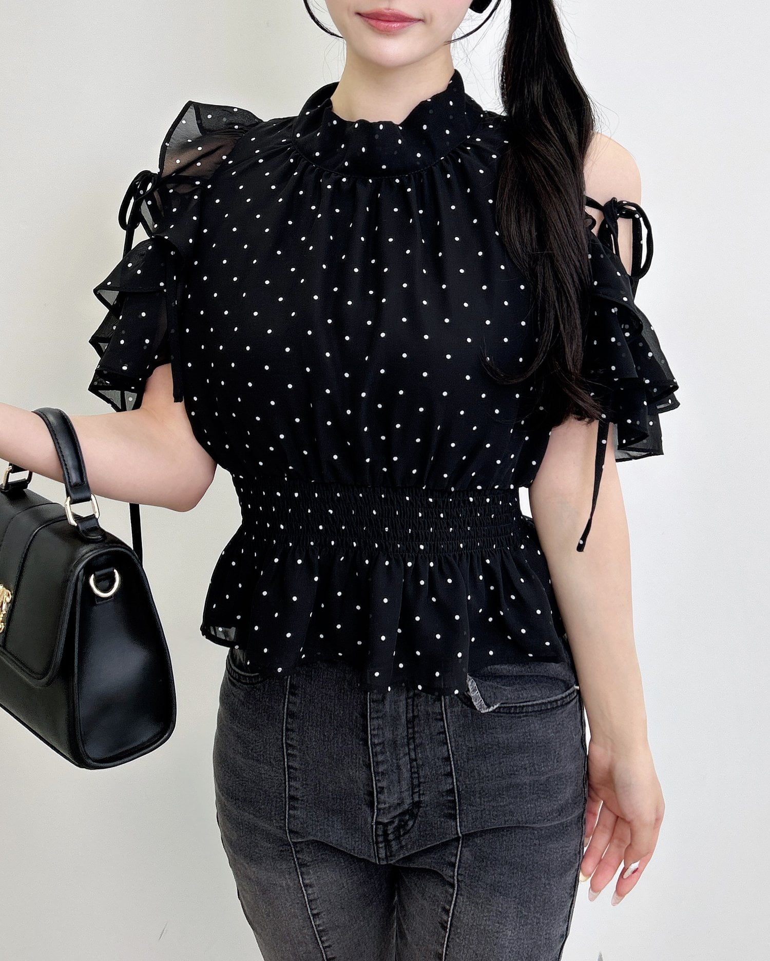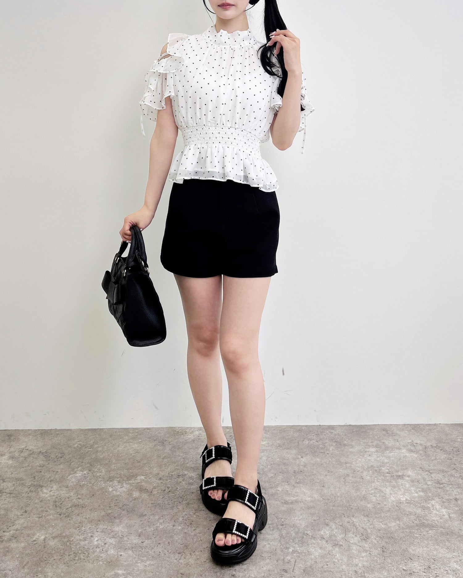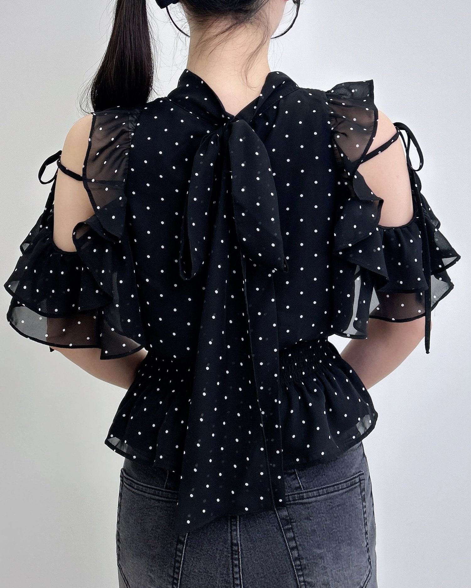 【1261-200261 2Wayリボン肩あきフリル半袖ブラウス】