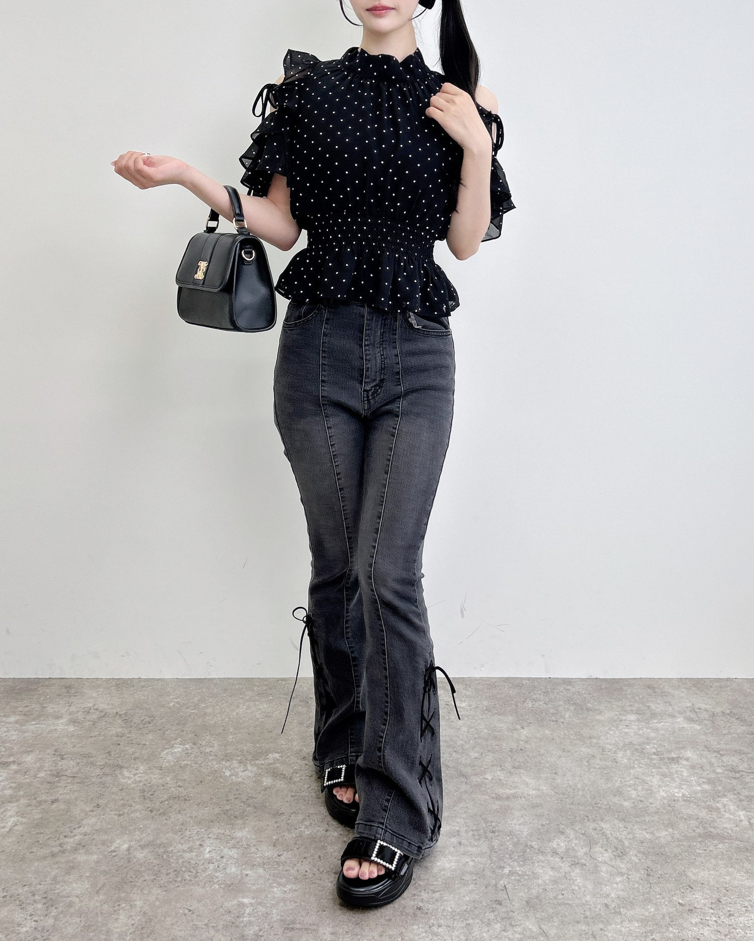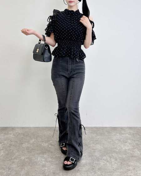オープンショルダーでヘルシーな肌見せが叶うブラウスです。