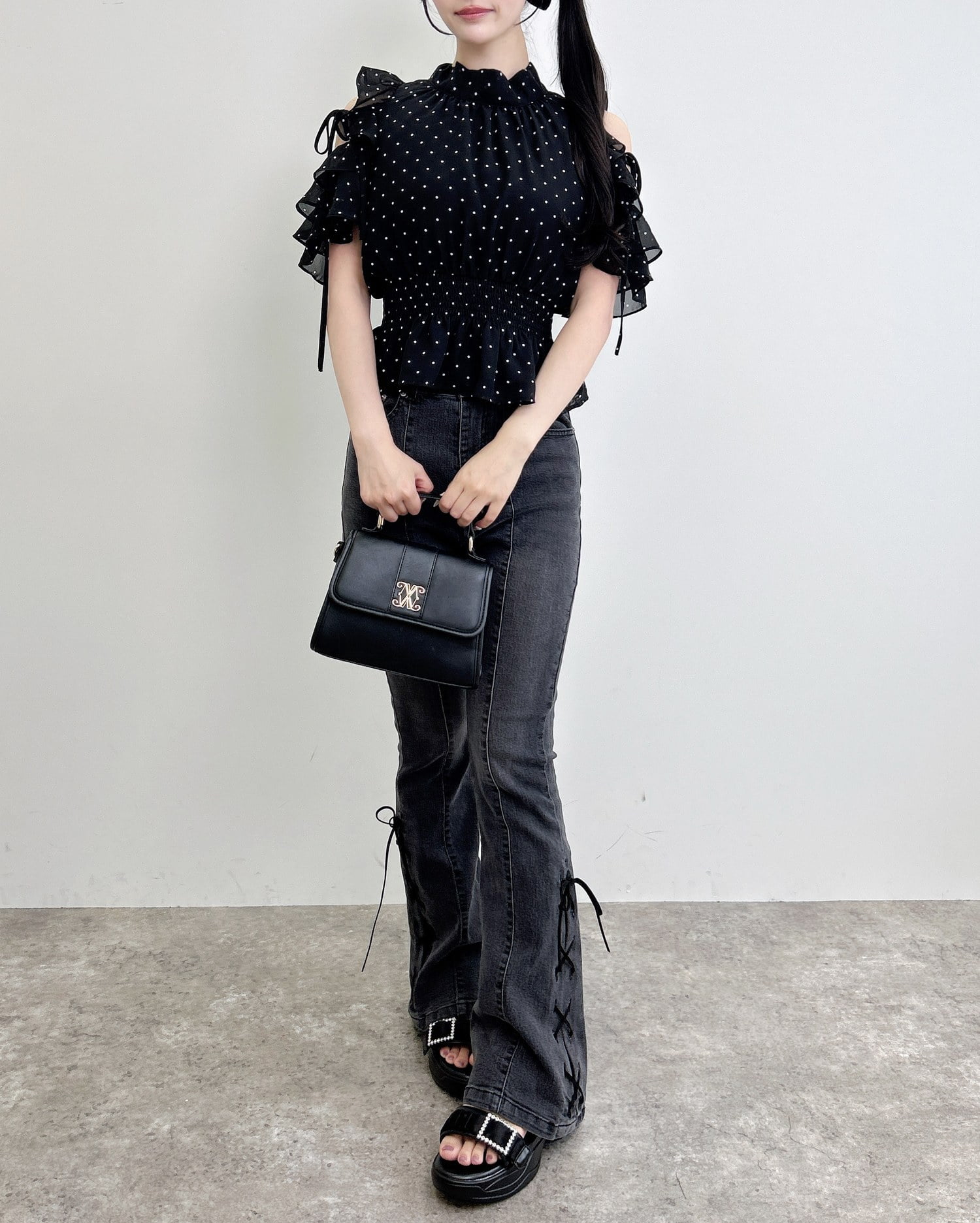 【フリル&リボンでフェミニンコーデが完成】