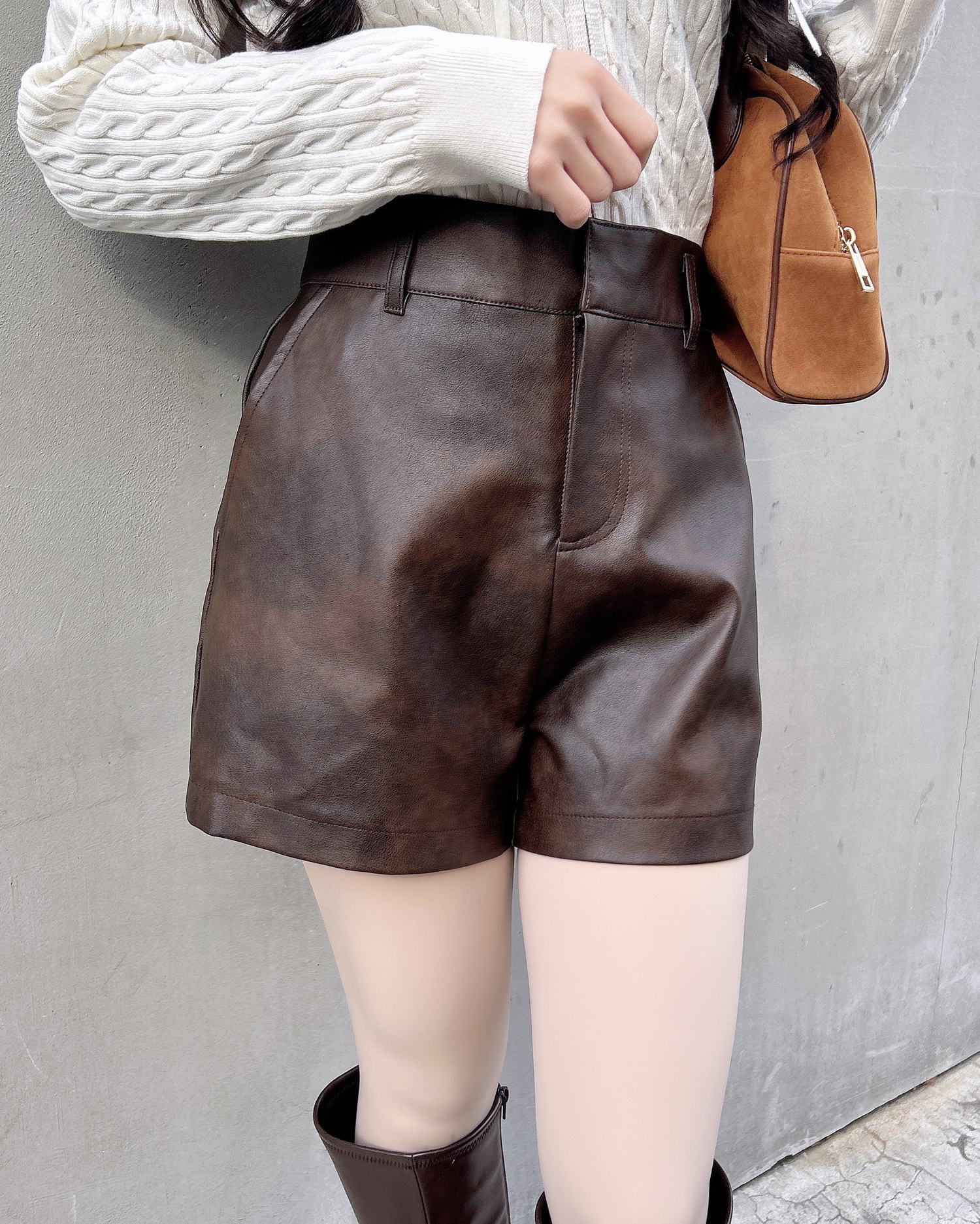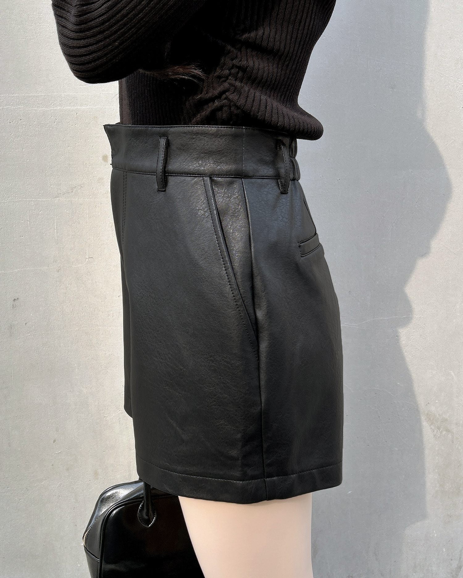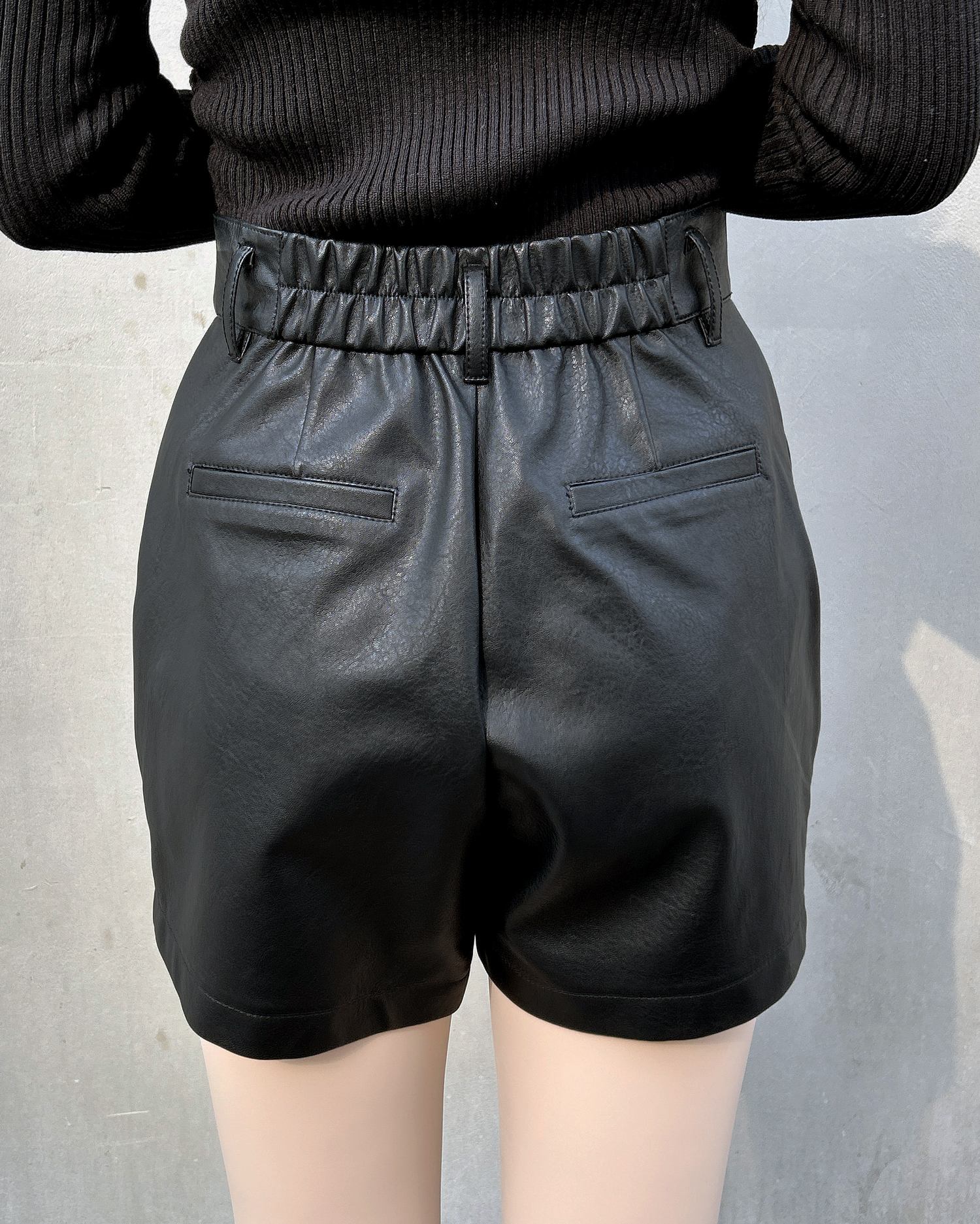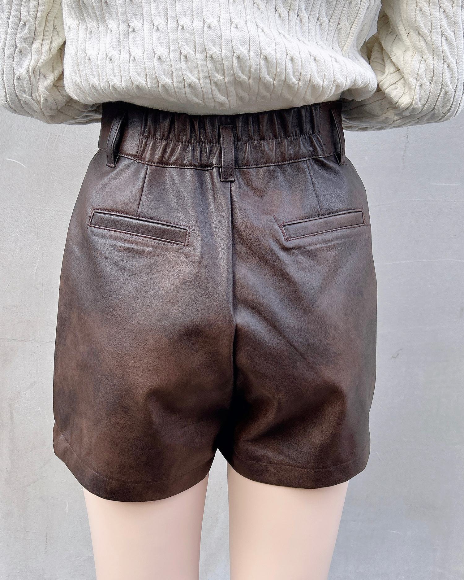 シンプルで着回し力抜群のフェイクレザーショートパンツ。
