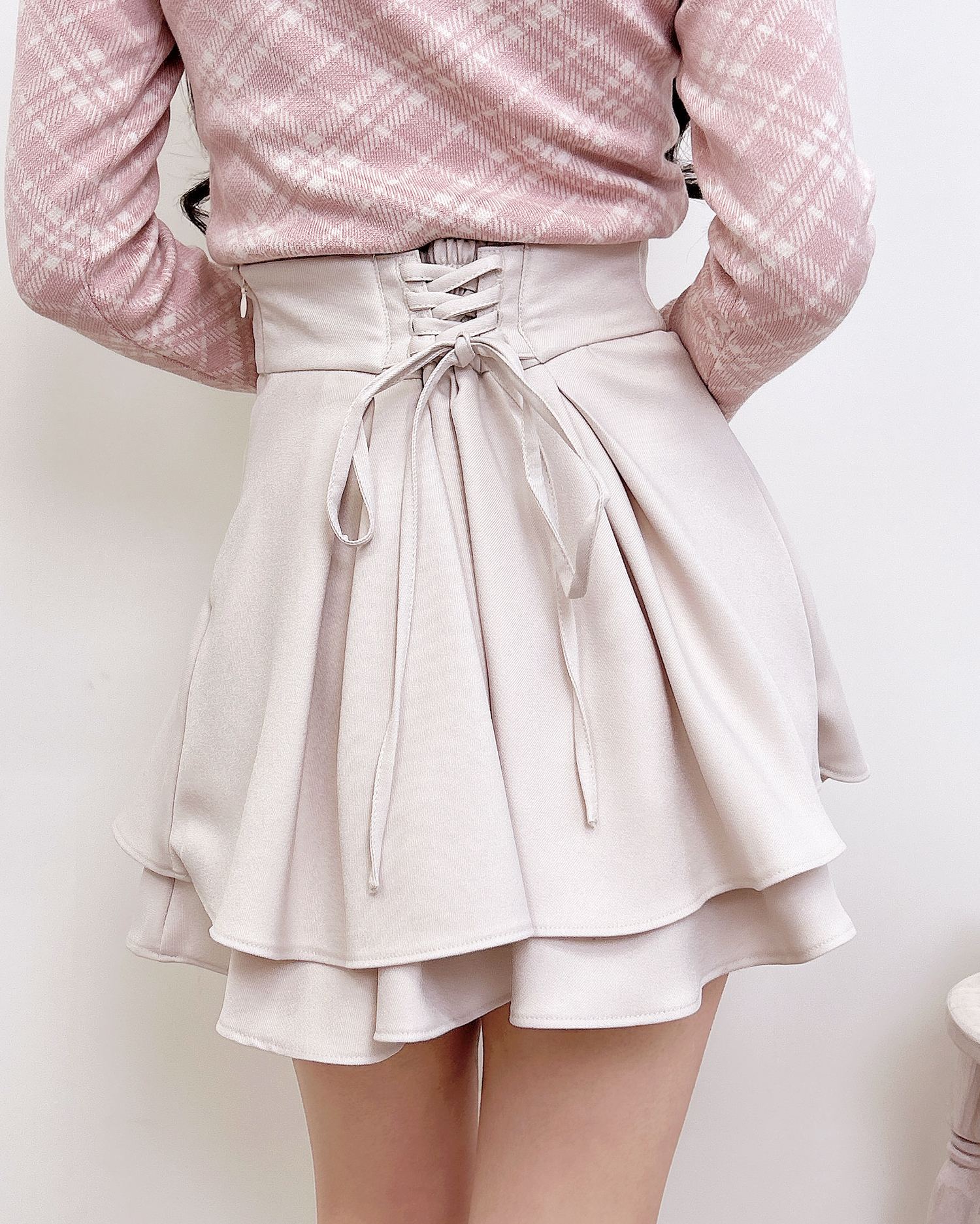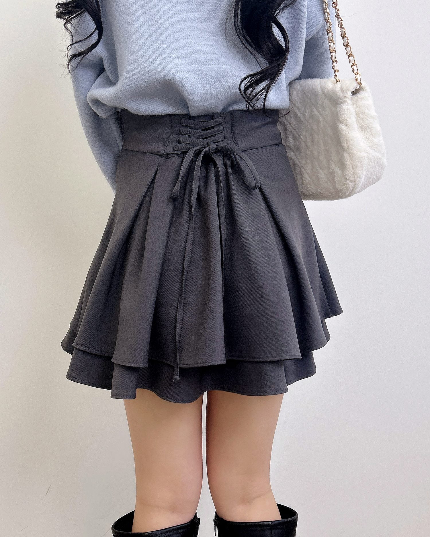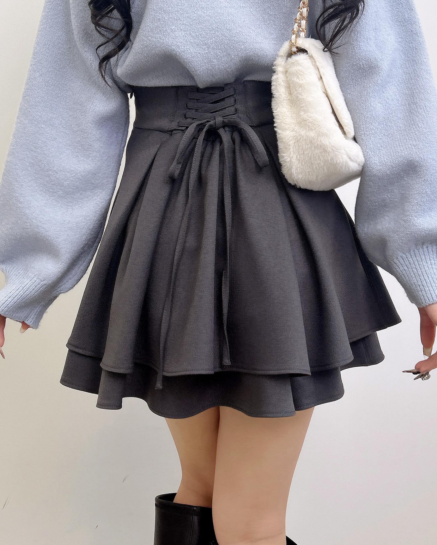 バックのレースアップデザインで後ろ姿も抜かりナシのスカート。