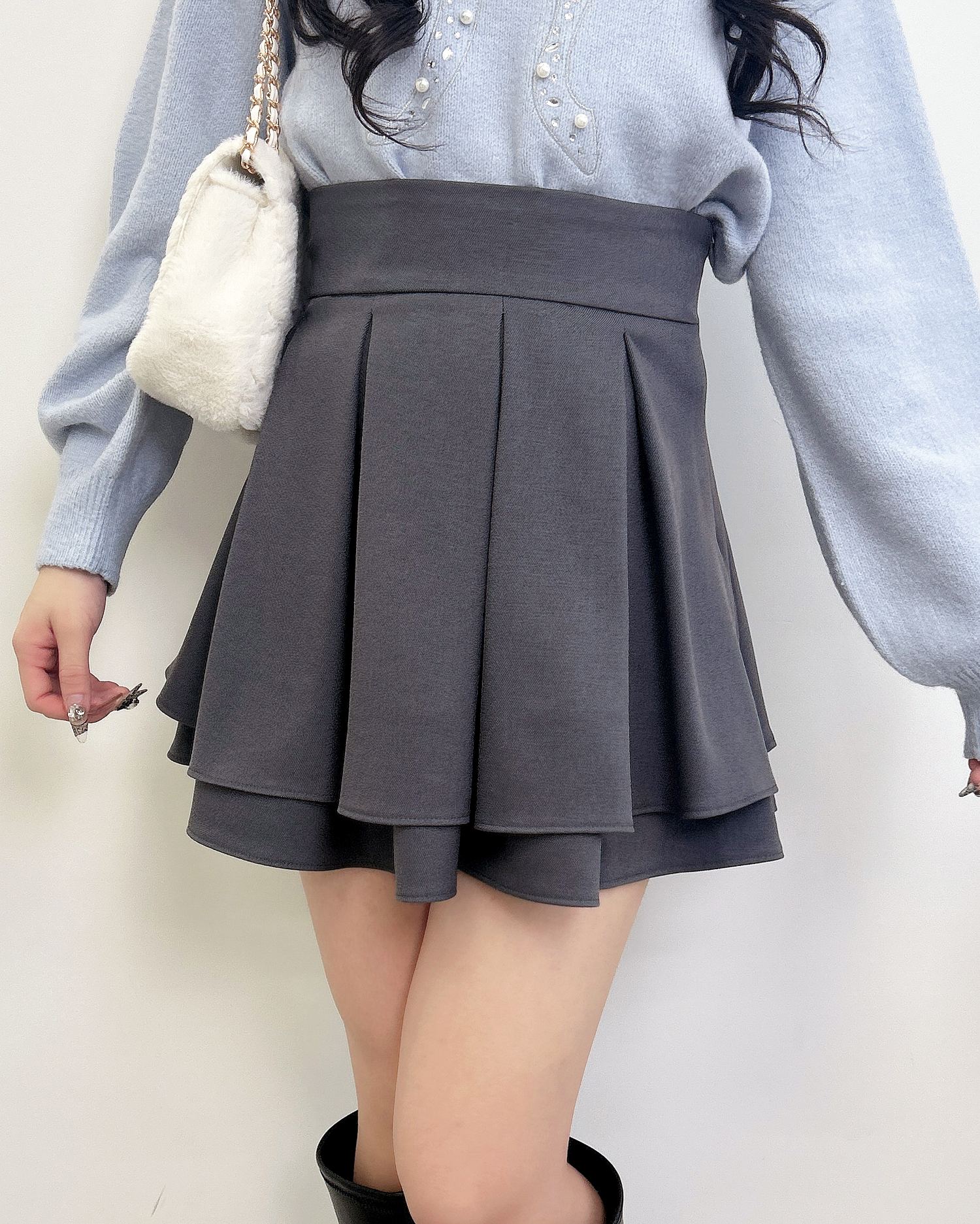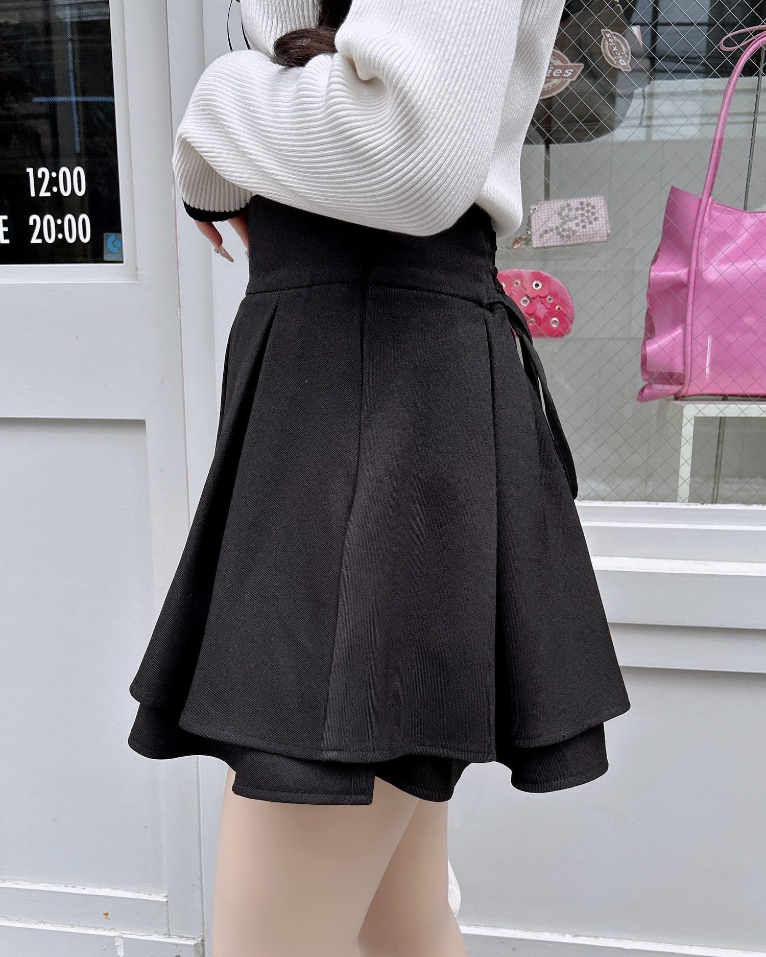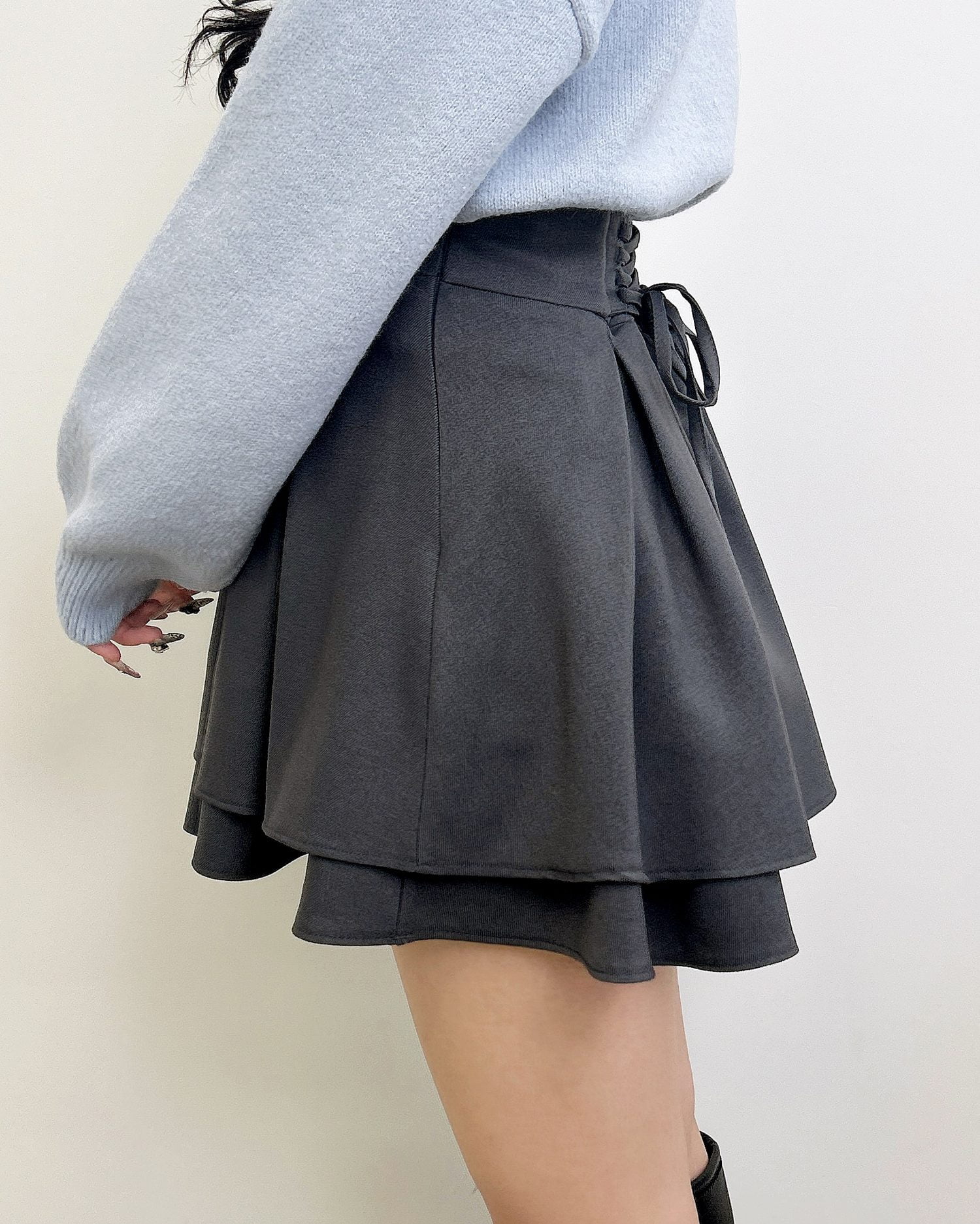バックのレースアップデザインで後ろ姿も抜かりナシのスカート。